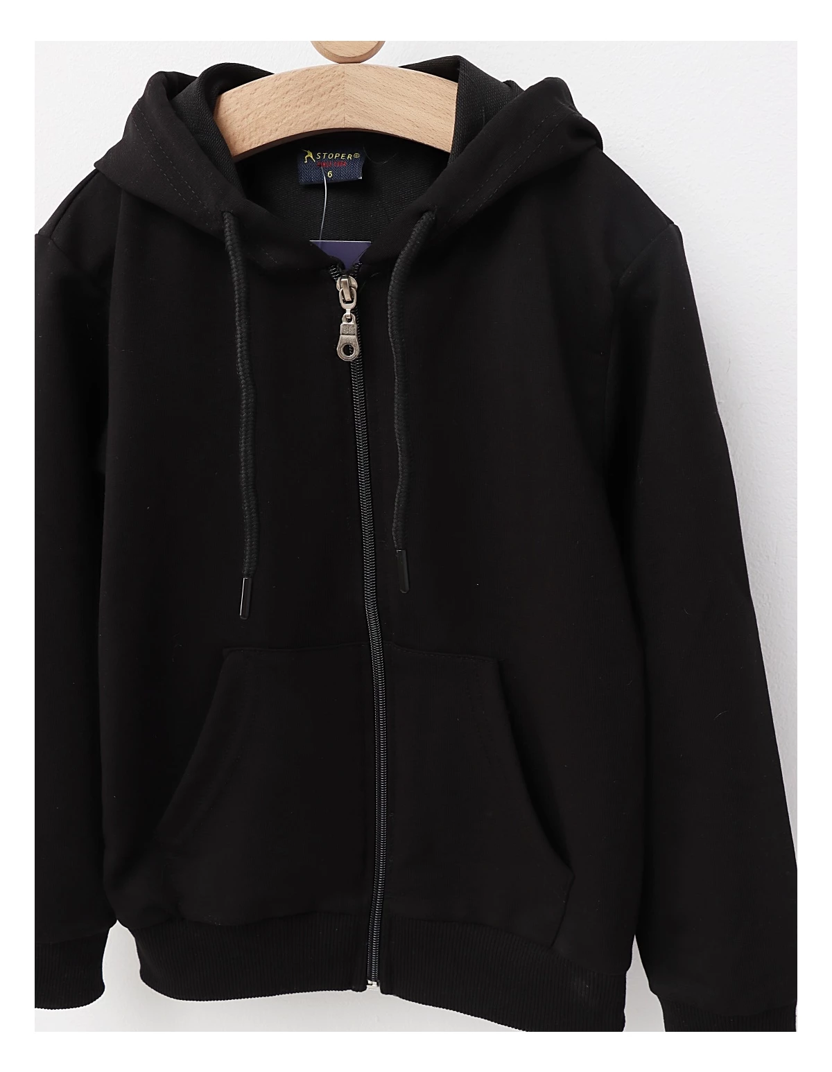 Bluză de trening pentru băieței, perfectă pentru un nou început de școală, cu fermoar, glugă, și buzunare. Material: 95% bumbac, 5% elastan.