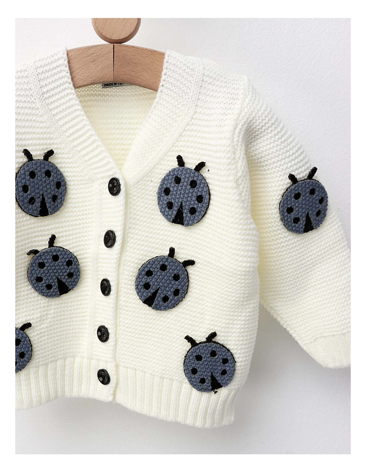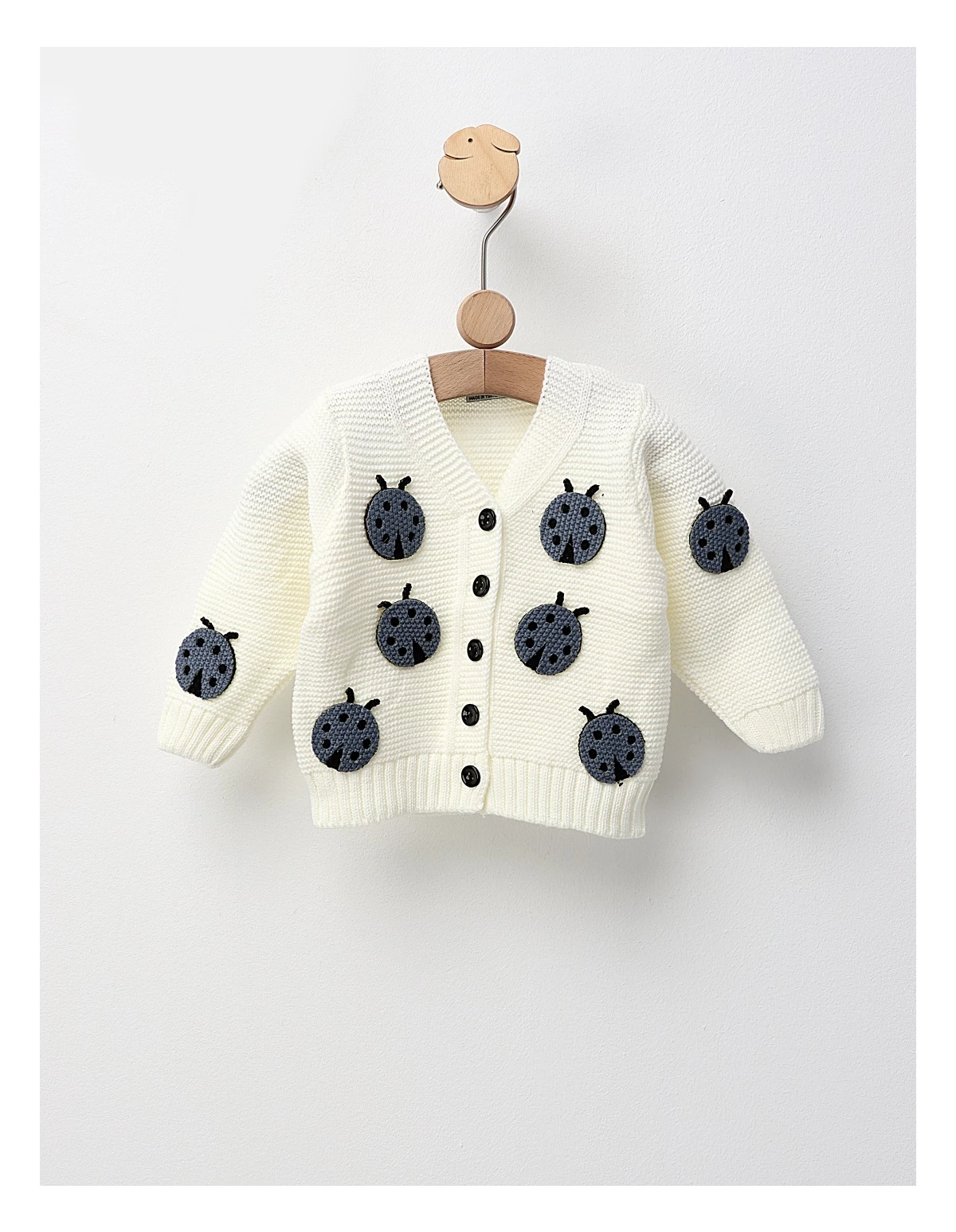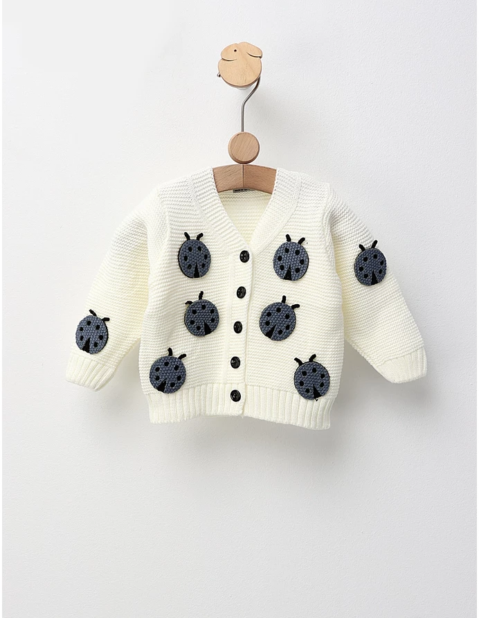 Puloveraș baieti 100% acrilic - Stil hand-made cu deschidere în nasturi. Model împletit distinctiv, gargarite atasate. Perfect pentru ținute elegante și călduroase.