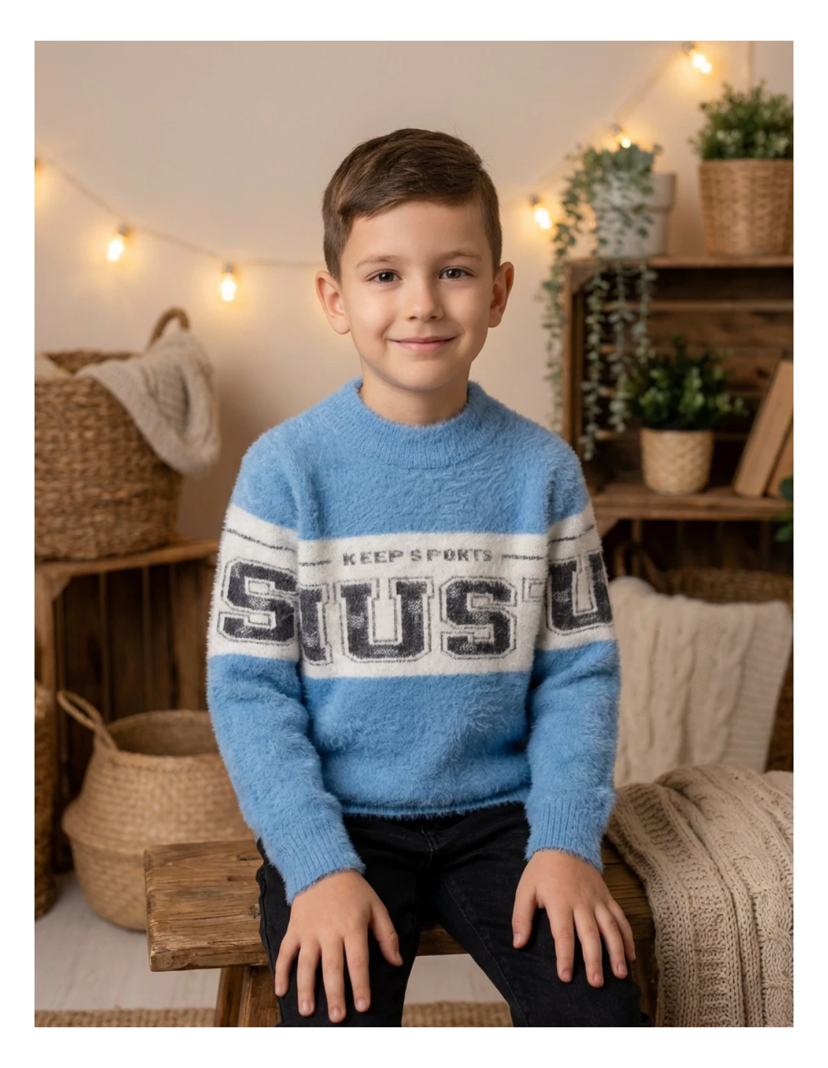 Pulover pufos și călduros pentru copii, perfect pentru zilele răcoroase, fiind atât confortabil, cât și atractiv pentru cei mici. Confecționat din 73% bumbac și 27% poliester, oferă o combinație ideală între confort și durabilitate pentru întreaga zi.