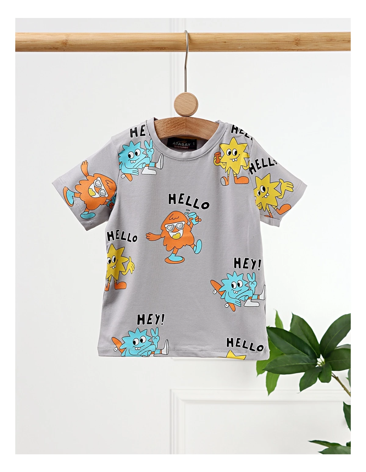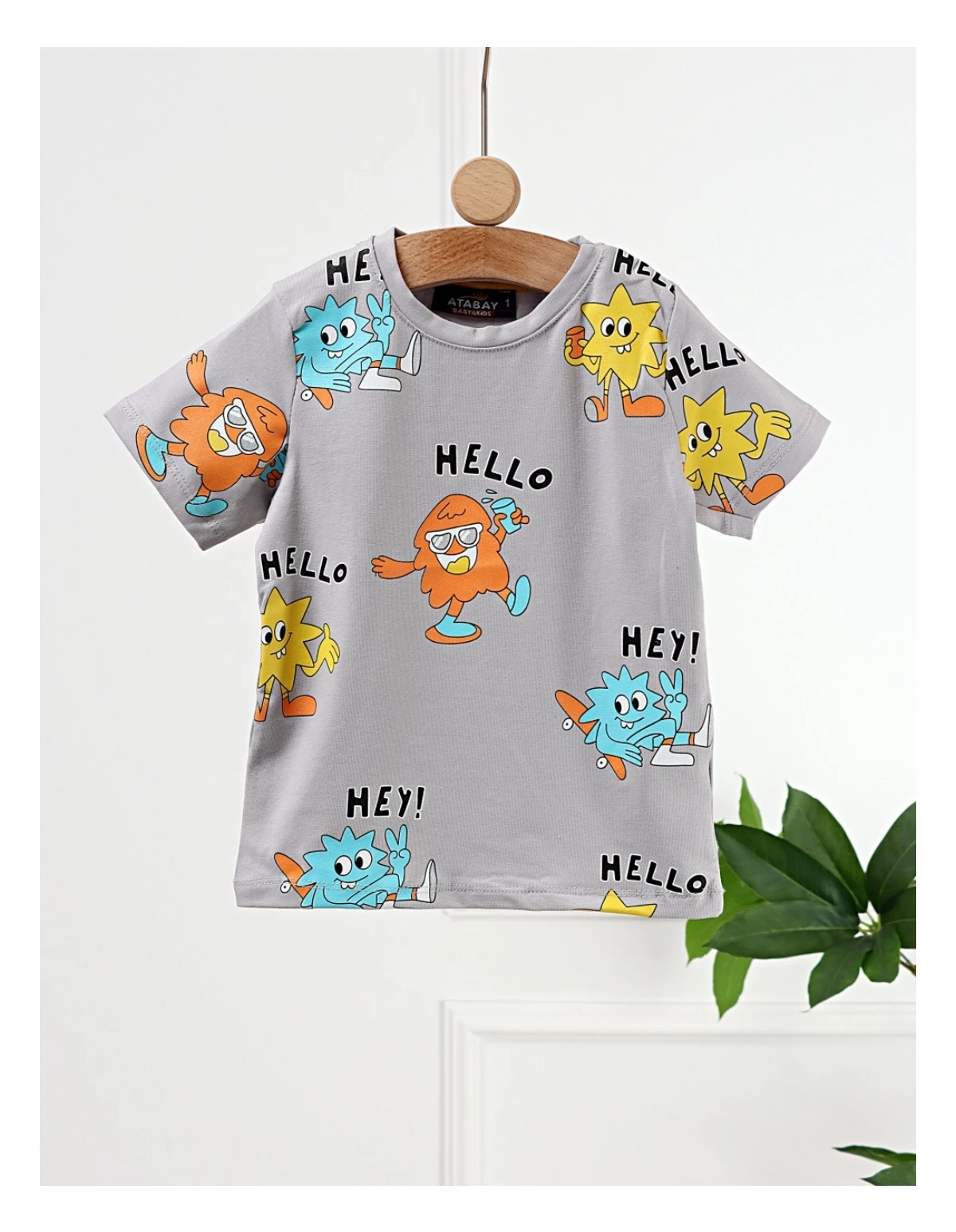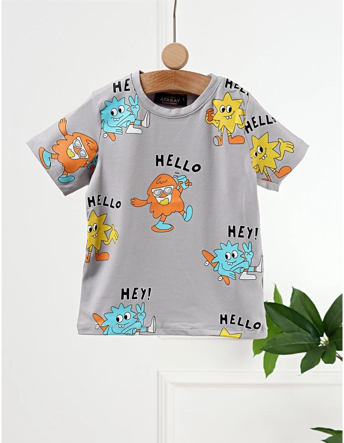 Tricou pentru băieți, decorat cu imprimeu cu steluțe vesele, perfect pentru zilele de joacă și activități în aer liber. Confecționat din 100% bumbac, oferă confort, lejeritate și un stil relaxat, fiind alegerea ideală pentru micii aventurieri!