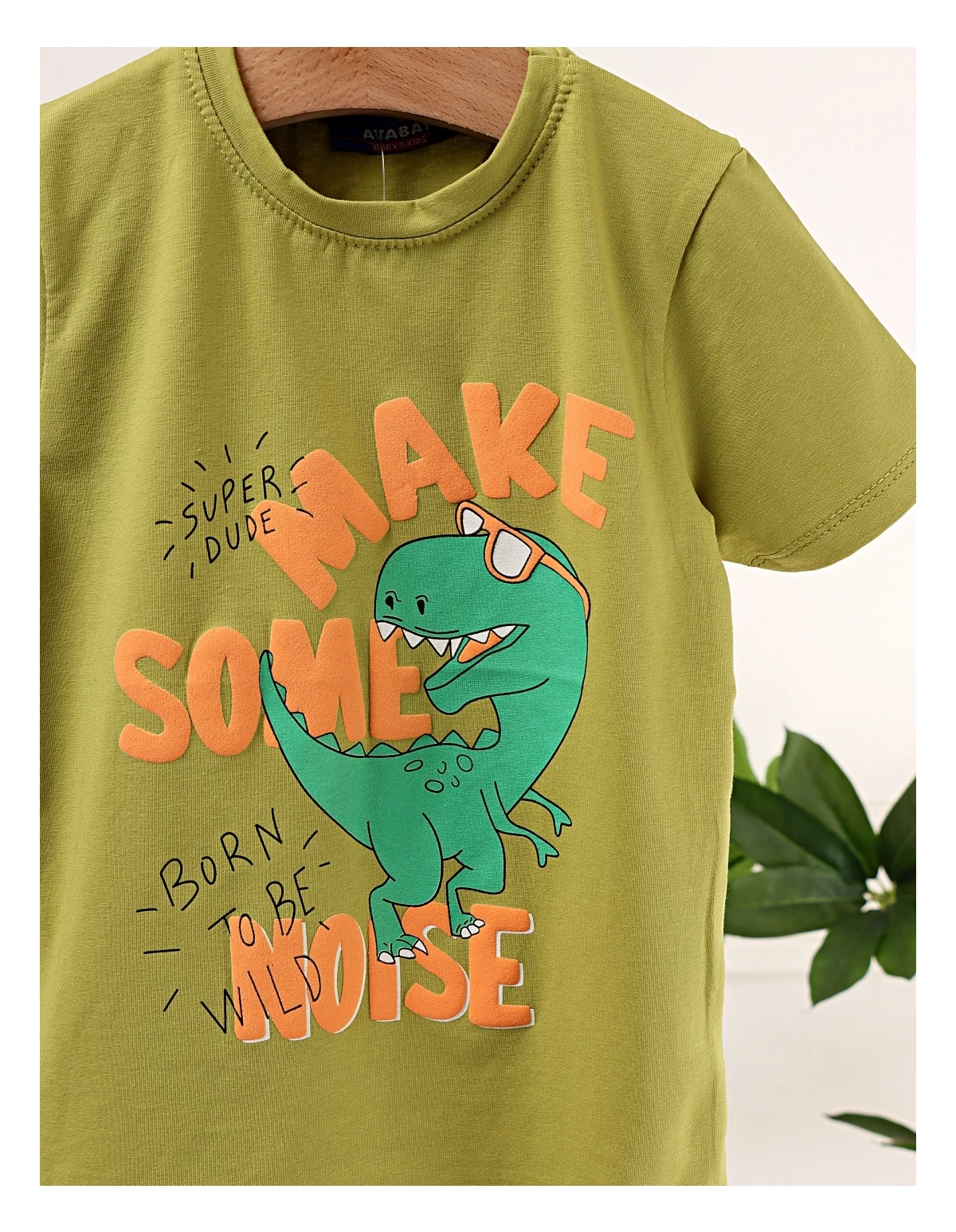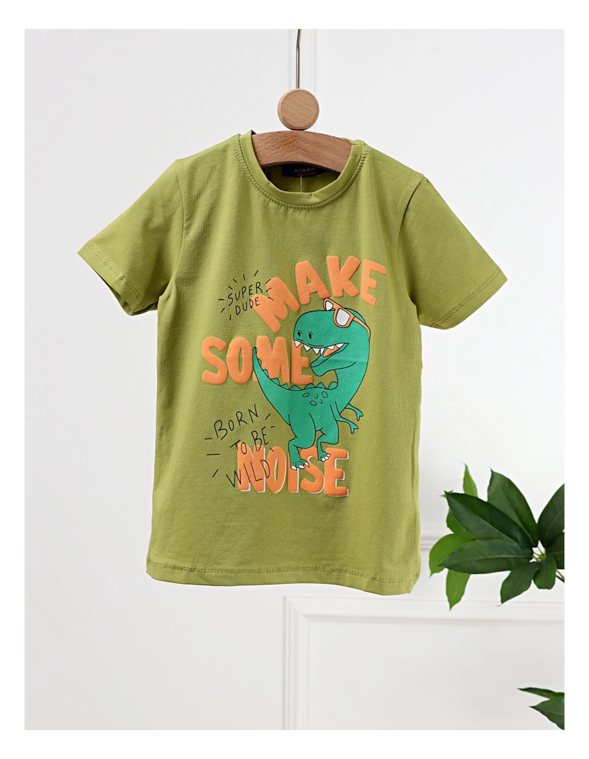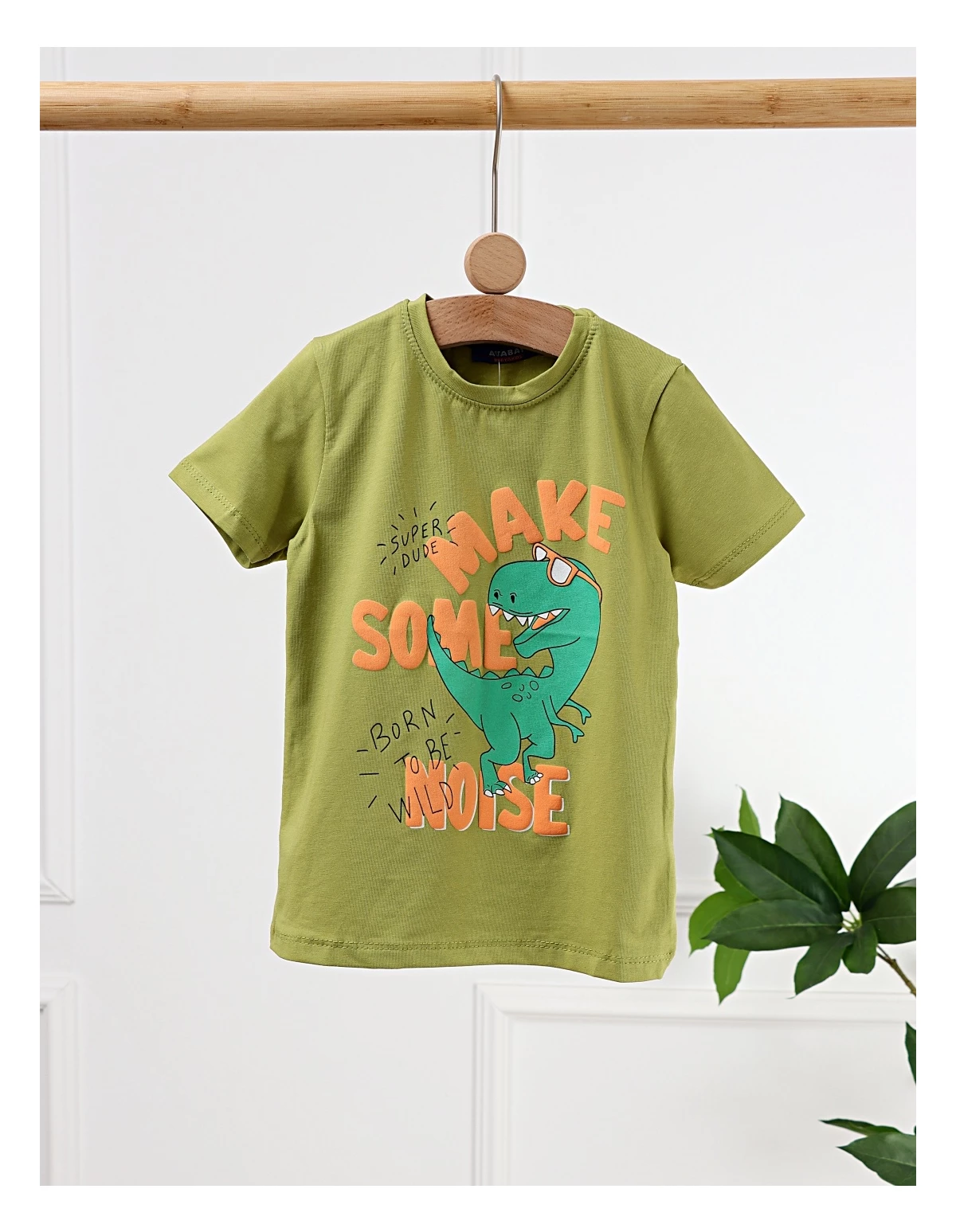 Tricou pentru băieți, decorat cu un imprimeu amuzant cu T-Rex purtând ochelari de soare la plajă, confecționat din 100% bumbac. Perfect pentru zilele de vară, acest tricou oferă confort, lejeritate și un stil cool, ideal pentru aventurile din sezonul cald sau petrecerile la plajă!