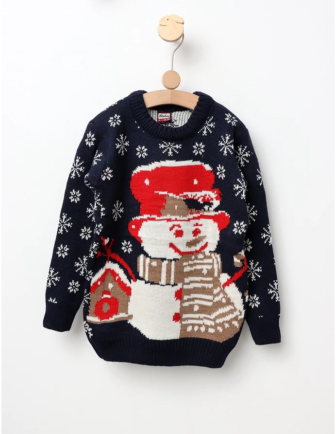 Pulover Happy SnowMan model bleumarin
