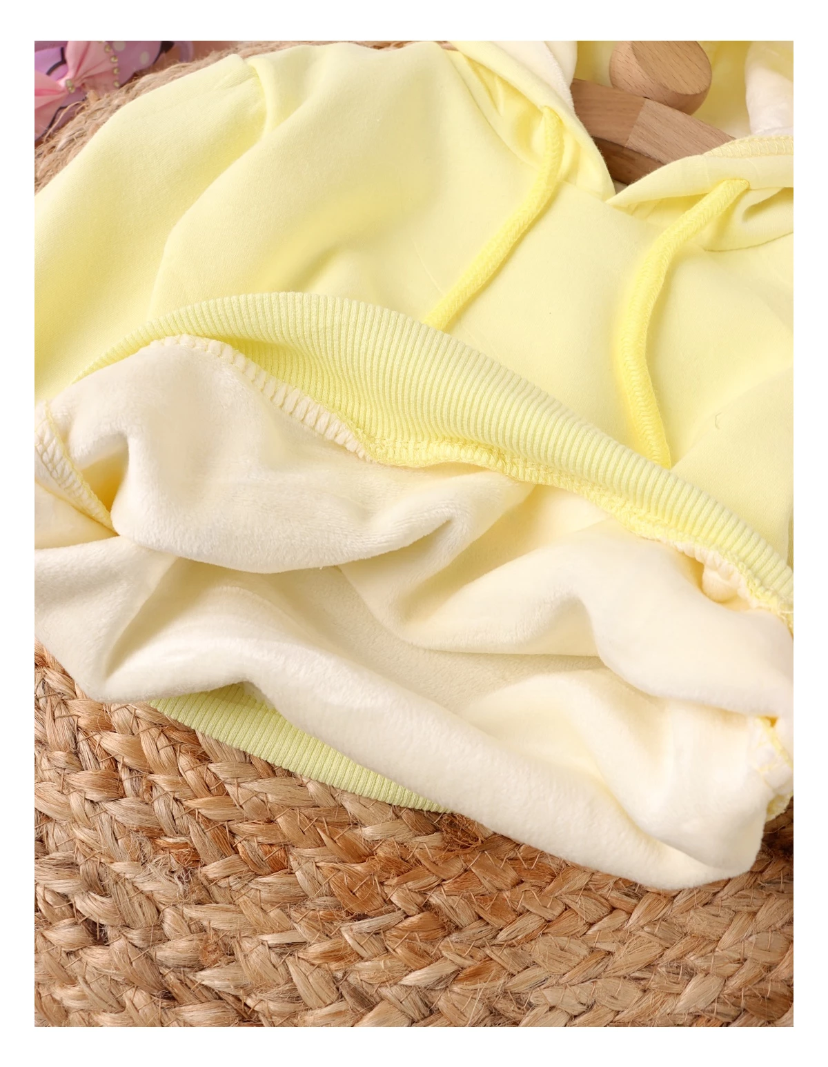 Hanoracul pentru fetițe este o alegere ideală pentru un look modern și confortabil, fiind realizat dintr-un material de calitate, compus din 73,5% bumbac și 26,5% poliester. Interiorul ușor îmblănit oferă căldură și o senzație plăcută la purtare, iar gluga cu șiret completează designul practic și stylish. Perfect pentru ținutele casual, hanoracul este potrivit pentru școală, joacă sau plimbări, oferind confort și libertate de mișcare în fiecare zi.
