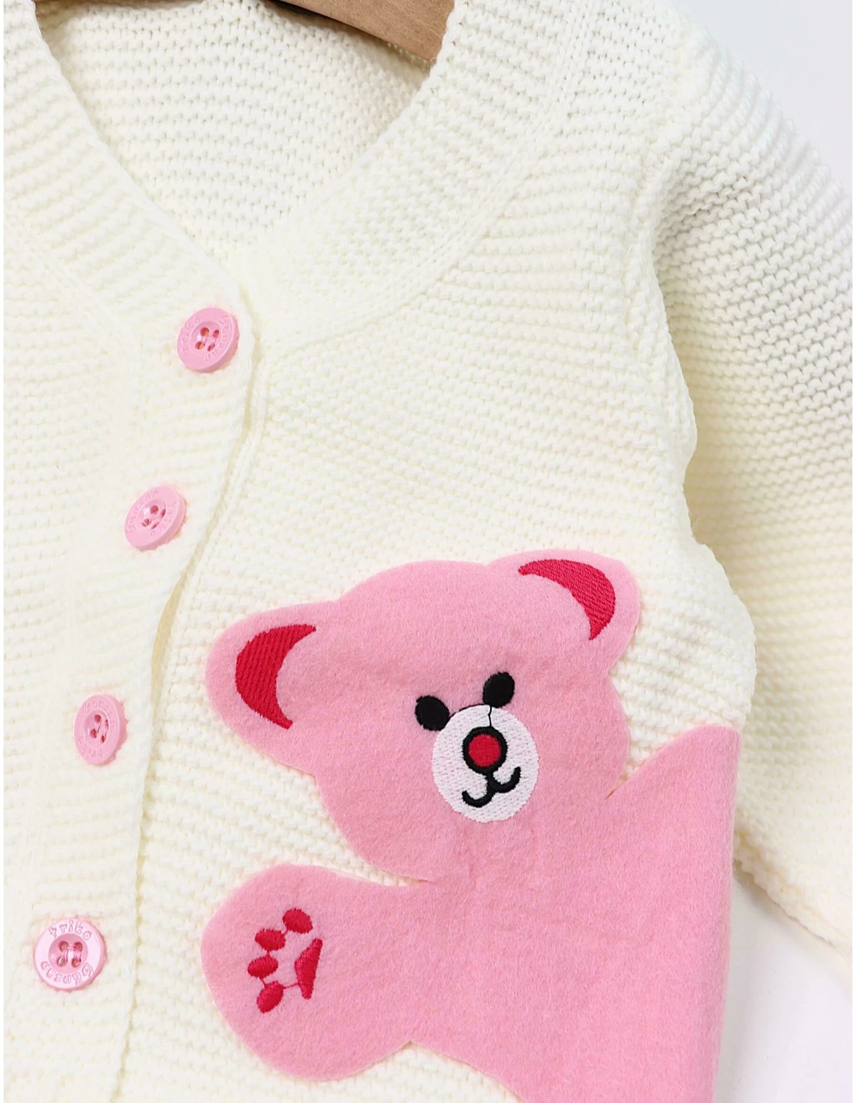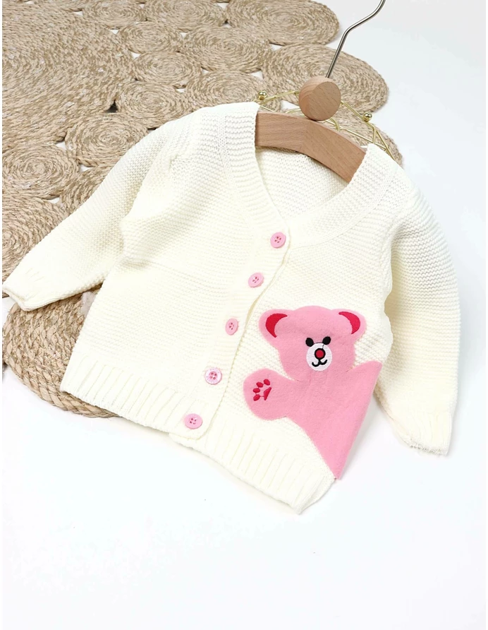 Pulover pentru fetite - Design cu deschidere în nasturi, ornamente sub formă de ursulet, material100% acrilic. Ținuta perfectă pentru micuta pasionata de animalute!