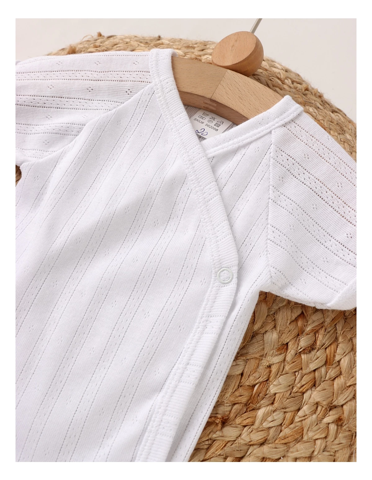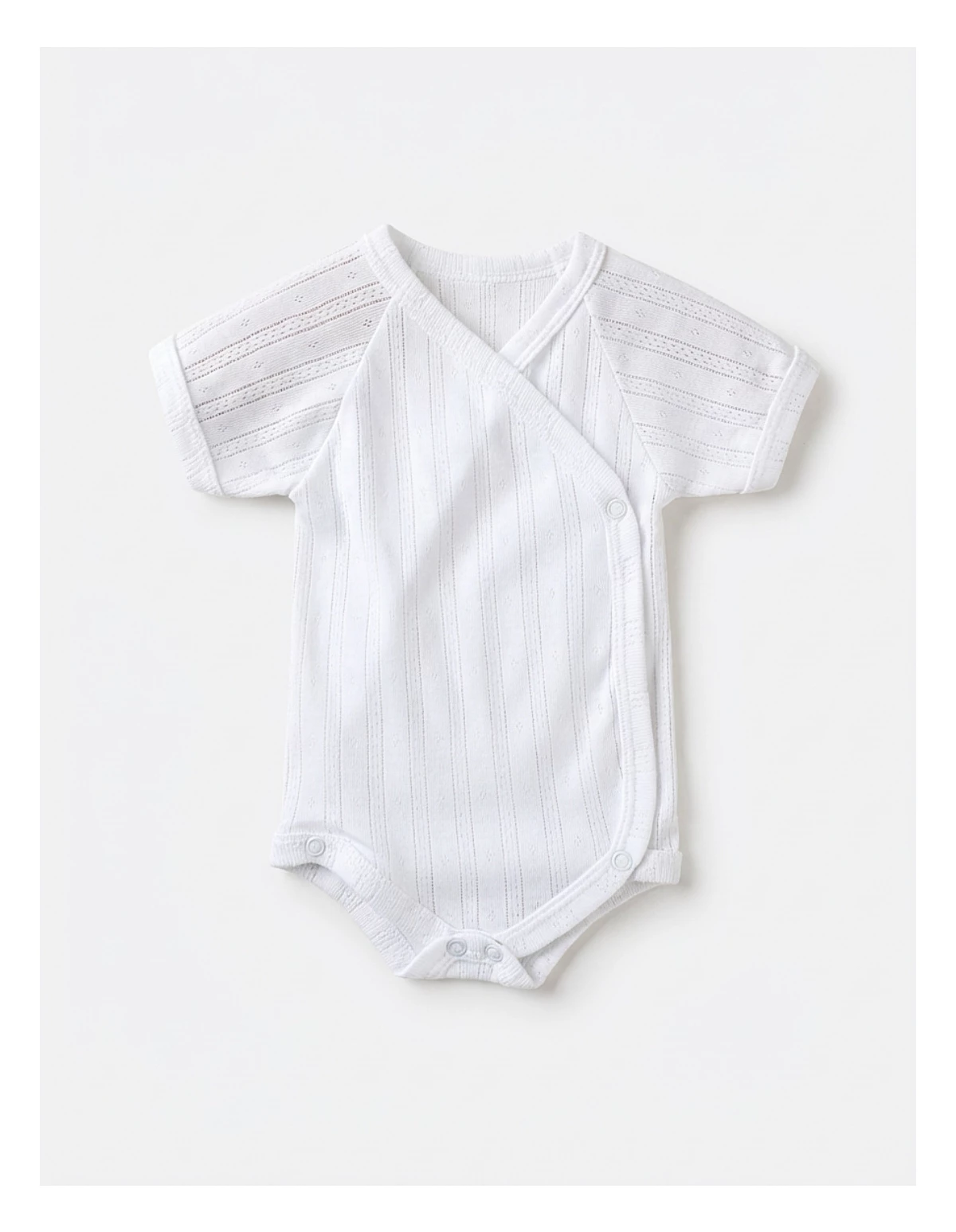 Body cu deschidere in capse parte peste parte. Material 100% bumbac ace trase. Material de vara respirabil. Fabricat in Romania.