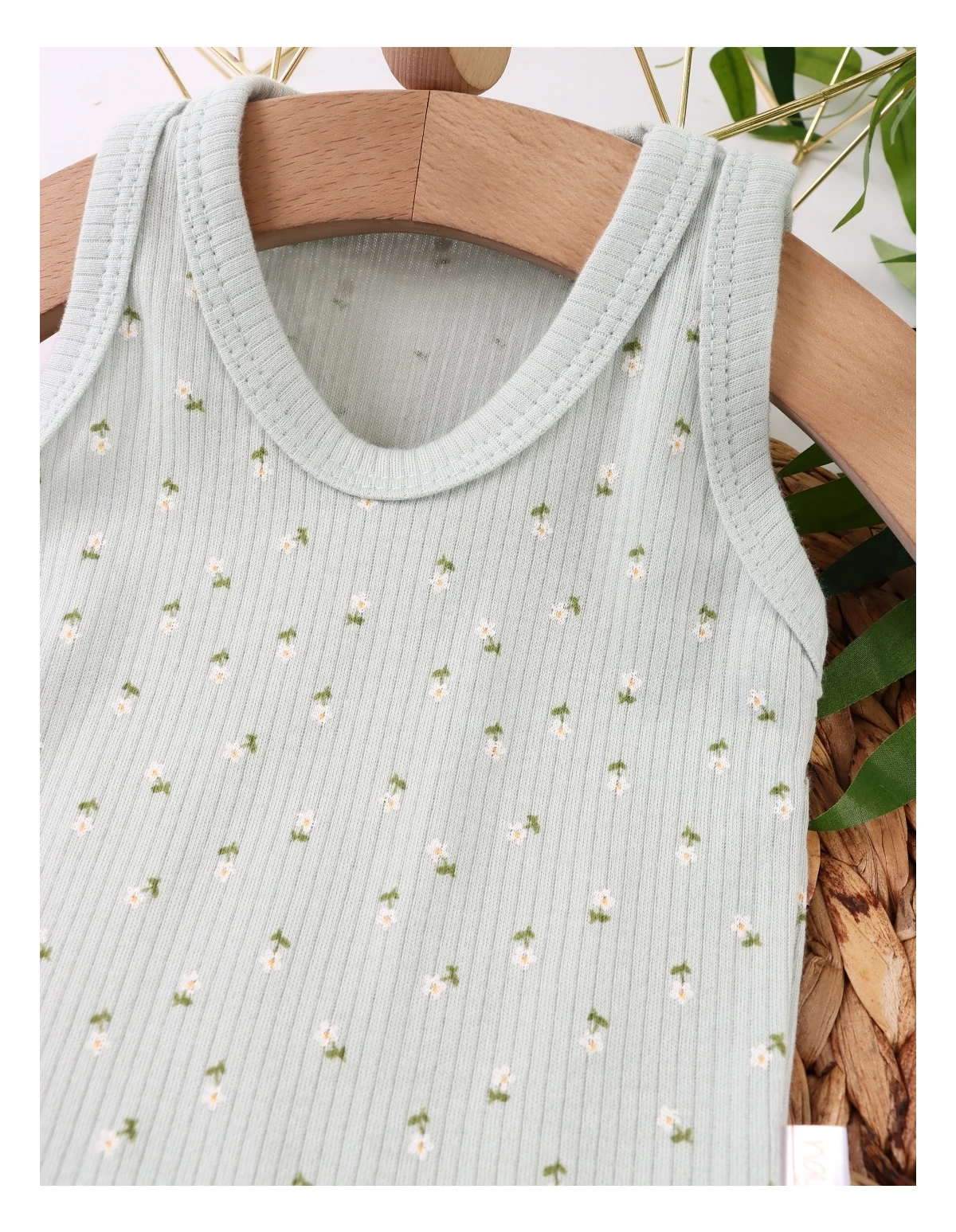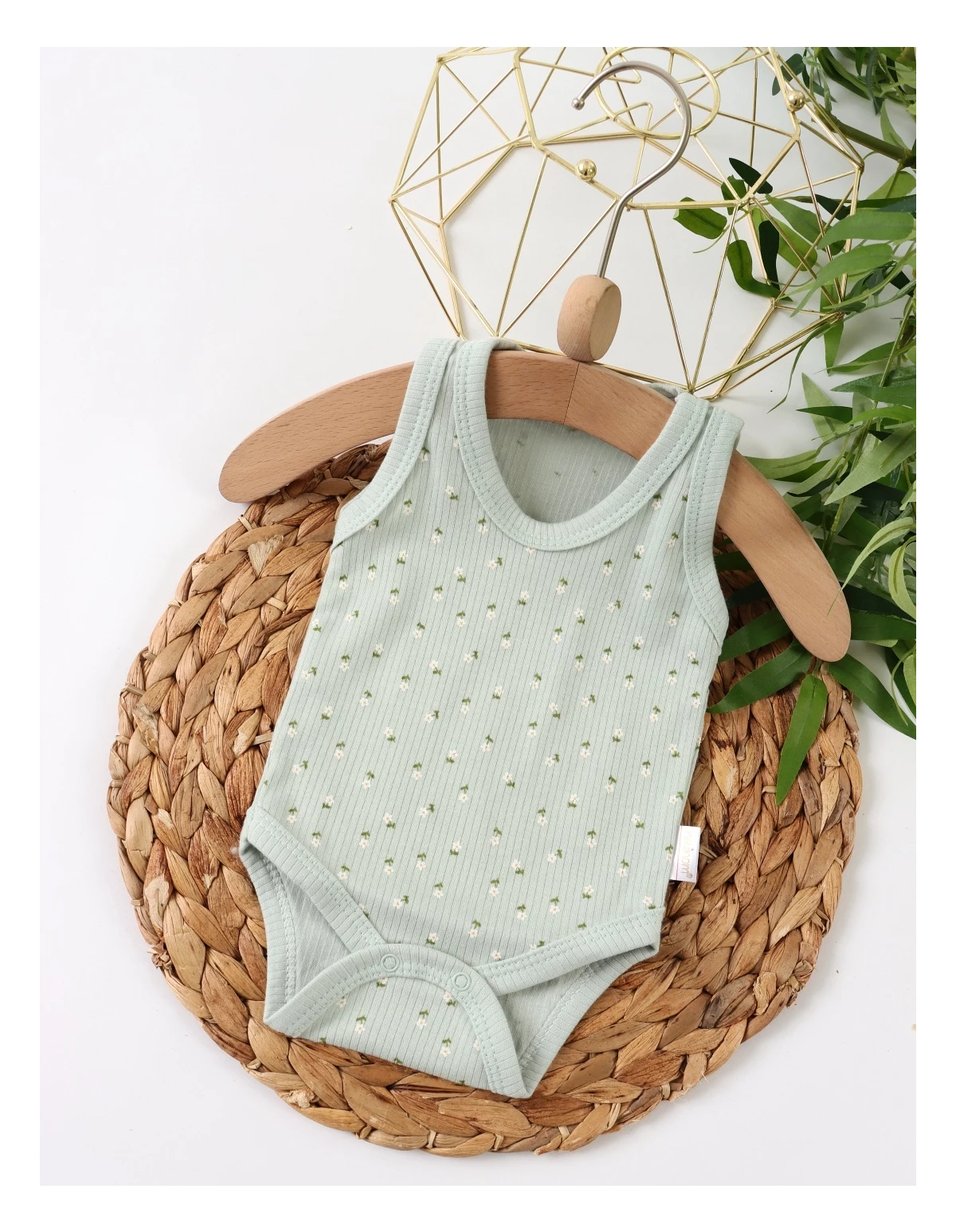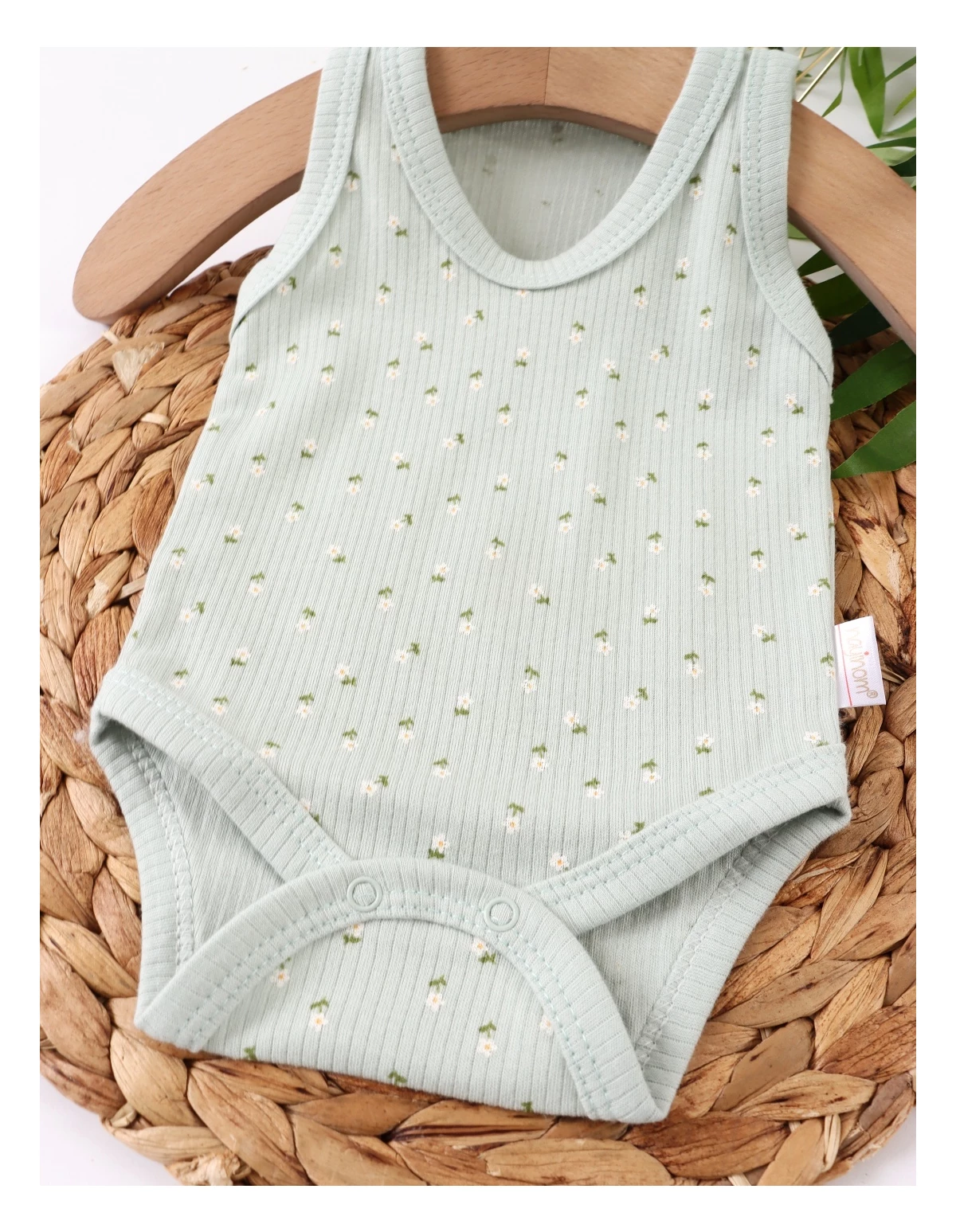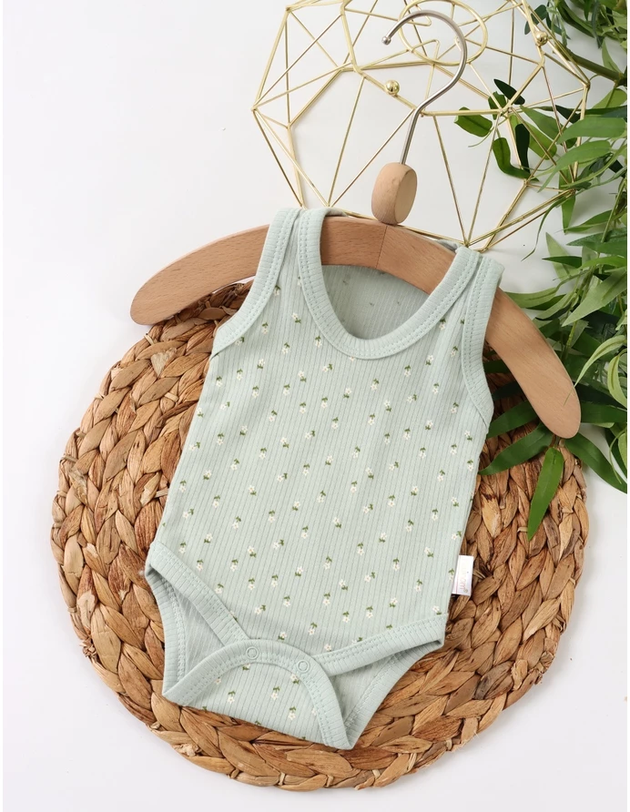 Body-ul pentru bebeluși este de tip maiou, având deschidere în capse pentru îmbrăcare ușoară. Decorat cu un imprimeu adorabil de floricele, este fabricat din 100% bumbac, asigurând confort și blândețe pentru pielea delicată a micuților. Ideal pentru zilele călduroase!