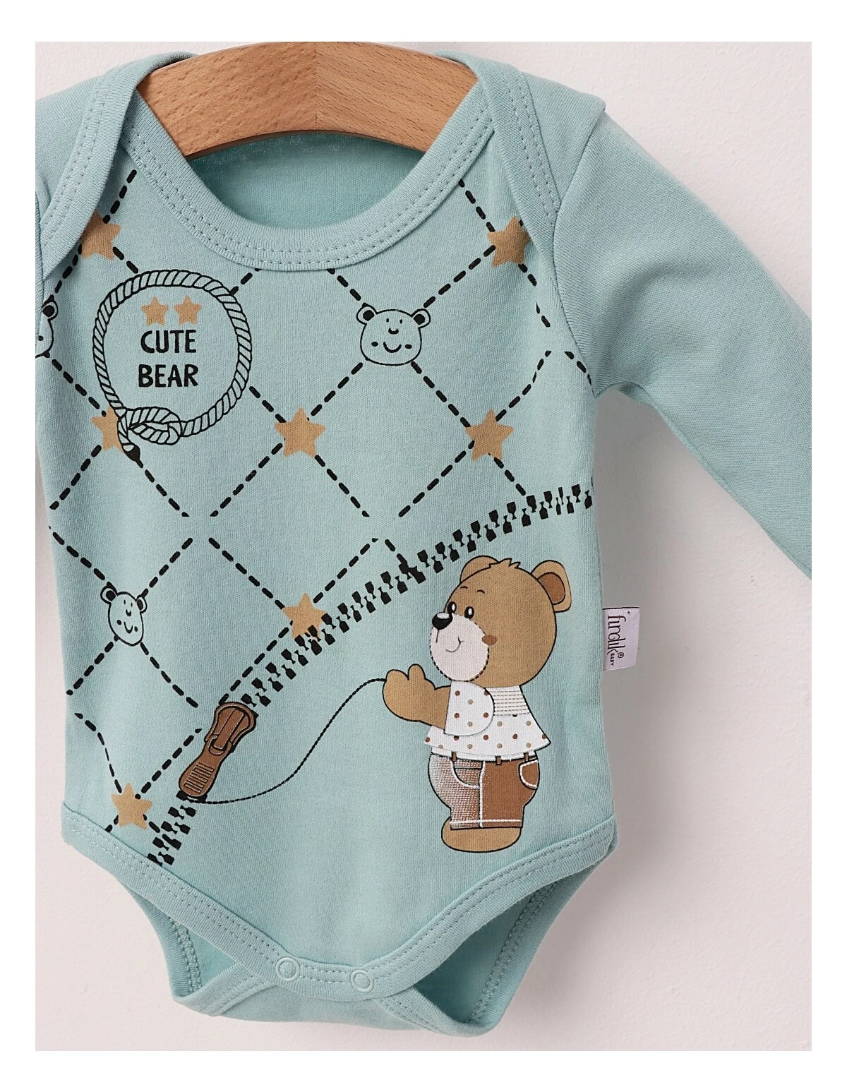 Body-ul pentru bebeluși cu mânecă lungă este alegerea perfectă pentru confortul și stilul micuțului tău. Fabricat din 100% bumbac de înaltă calitate, acest body asigură o senzație plăcută pe pielea delicată a bebelușului. Designul său cu deschidere în capse facilitează îmbrăcarea și dezbrăcarea rapidă, fiind ideal pentru părinți. Imprimeul adorabil cu ursulețul Gugci adaugă o notă jucăușă și veselă, făcând din acest body o piesă esențială în garderoba oricărui bebeluș. Perfect pentru orice ocazie, de la joacă la somn, acest body combină funcționalitatea cu un aspect drăgălaș.