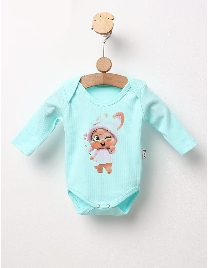Body pentru bebeluși cu deschidere în capse, perfect pentru îmbrăcarea rapidă și comodă. Acest body cu mânecă lungă, decorat cu un imprimeu adorabil cu 'Fetița Iepuraș', este realizat din 100% bumbac, oferind confort și delicatețe pentru pielea sensibilă a celor mici. Ideal pentru orice ocazie, body-ul îmbină stilul cu funcționalitatea, devenind un element esențial în garderoba bebelușului tău.