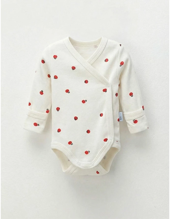 Body cu mânecă lungă, ideal pentru confortul celor mici. Se închide cu capse parte peste parte și are mâneci cu mănușă, oferind un aspect drăguț și practic. Imprimeul vesel cu gargarite adaugă un strop de culoare și jucăușenie. Confecționat din 100% bumbac, acest body asigură o senzație plăcută la purtare, fiind perfect pentru fiecare zi.