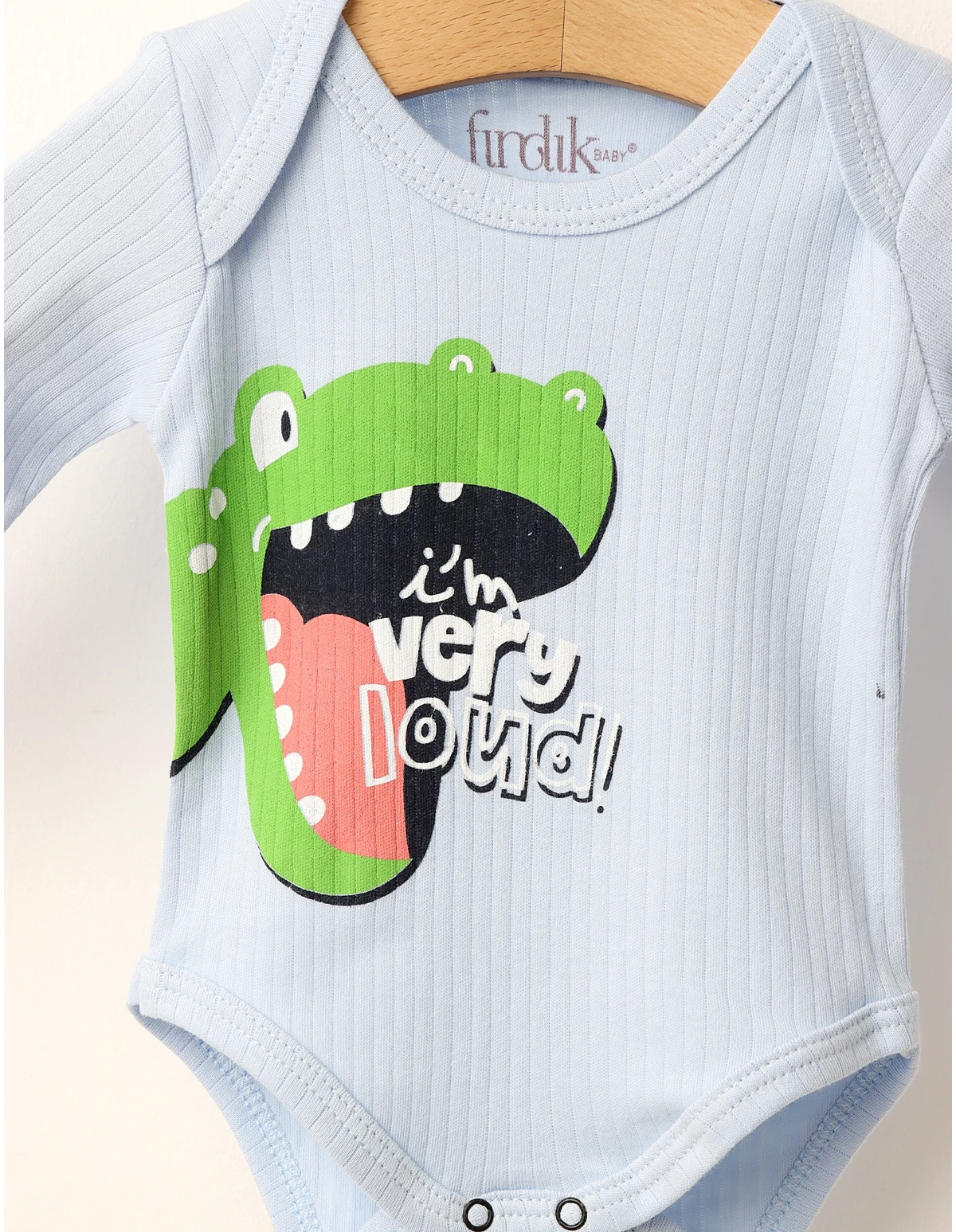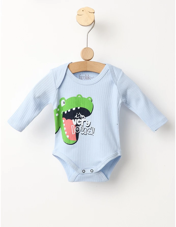 Body-ul pentru bebeluși, imprimat cu simpaticul „Dino”, este perfect pentru micuțul tău. Acest body oferă confort maxim și un design adorabil, fiind ideal pentru purtarea zilnică. Deschiderea practică în capse facilitează o îmbrăcare și schimbare rapidă, iar materialul din 100% bumbac este moale și delicat cu pielea sensibilă a bebelușului. Haine bebe, haine bebelusi, haine nou nascut, haine copii.