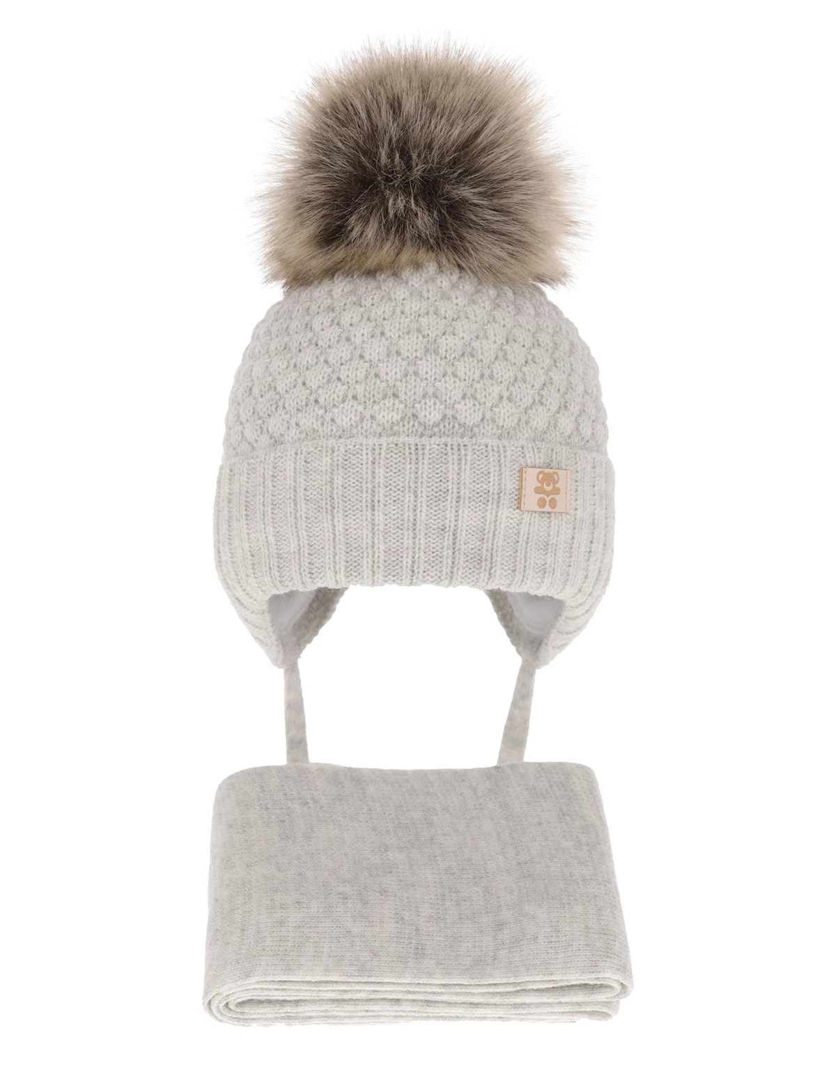 Set de iarnă Norberto pentru băieți – confort și stil în fiecare zi rece Realizat din 100% acrilic și căptușit cu bumbac (80%) și poliester (20%), setul Norberto oferă o protecție termică excelentă și confort sporit. Căciula cu pompon din blană ecologică și fularul asortat sunt perfecte pentru temperaturi de la -6°C la +3°C, fiind ideale pentru activitățile zilnice în aer liber. Materialul este ușor, rezistent la murdărie și se usucă rapid, iar elasticitatea asigură o potrivire perfectă, chiar și pe măsură ce copilul crește. Cu un design decorativ, patch aplicat și certificat OEKO-TEX®, acest set îmbină funcționalitatea cu un stil modern.