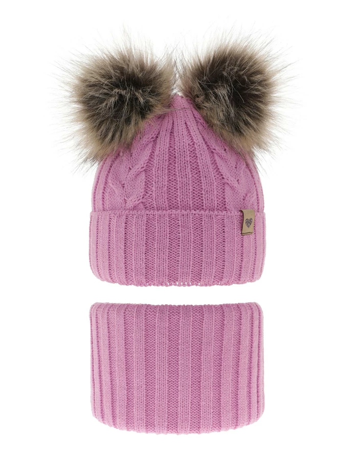 Setul de iarnă pentru fetițe de la marca AGBO, într-o elegantă culoare neagră, este realizat din 100% acrilic, cu o căptușeală din fleece (100% poliester) ce oferă o protecție excelentă împotriva vântului. Căciula este accesorizată cu două pompoane din blană ecologică, aducând un plus de farmec, iar patch-ul modern completează designul deosebit. Cu un tricot cu nervuri și împletituri tricotate, setul conține o căciulă și un fular circular, ideal pentru sezonul rece. Adaptat temperaturilor de la -6°C la 3°C, acest set certificat OEKO-TEX® Standard 100 asigură confort și siguranță pentru pielea sensibilă.