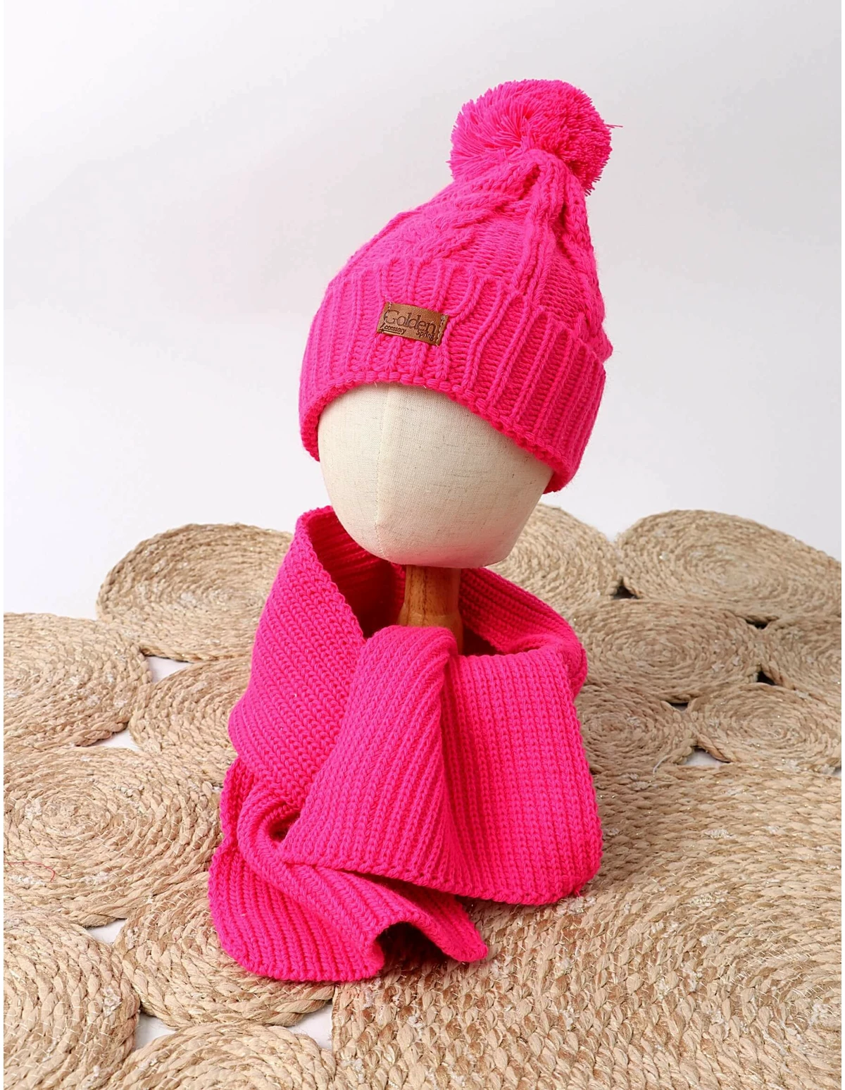 Set caciula cu fular GOLDEN ciclam