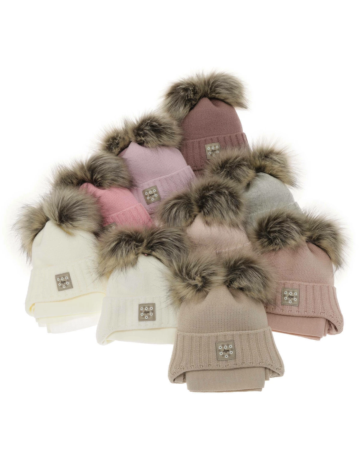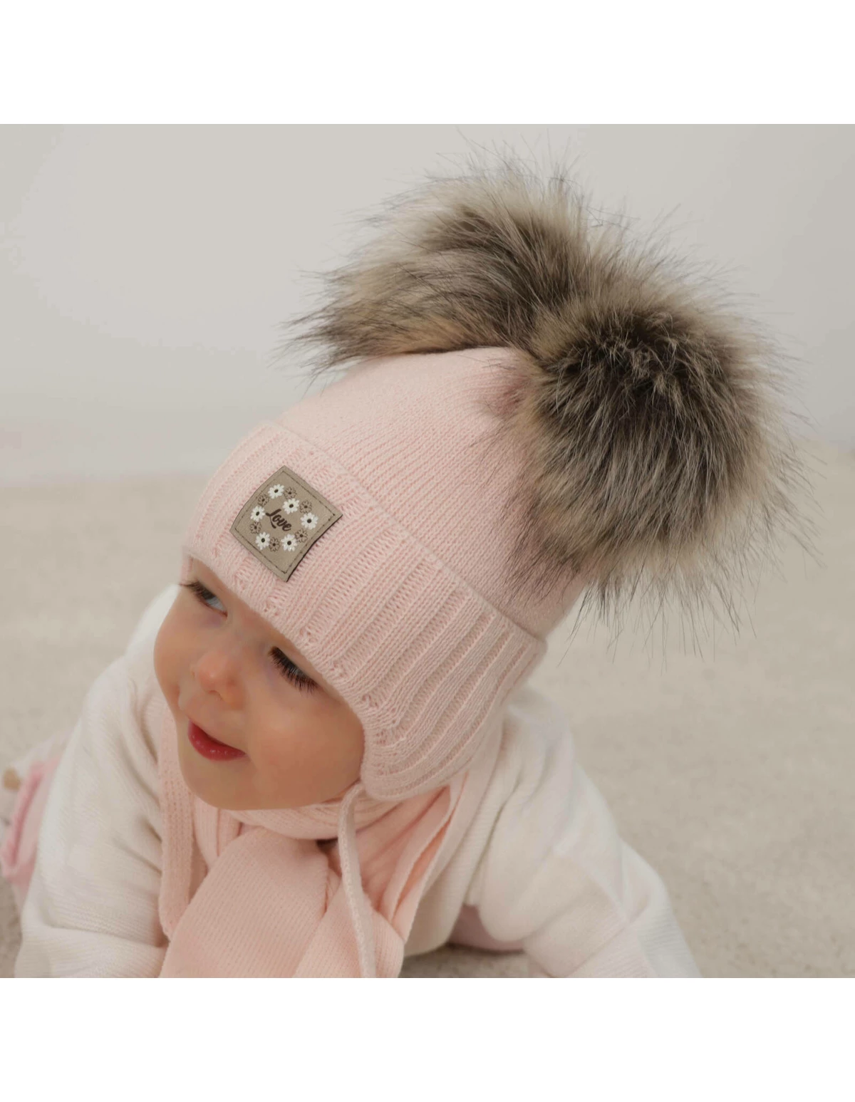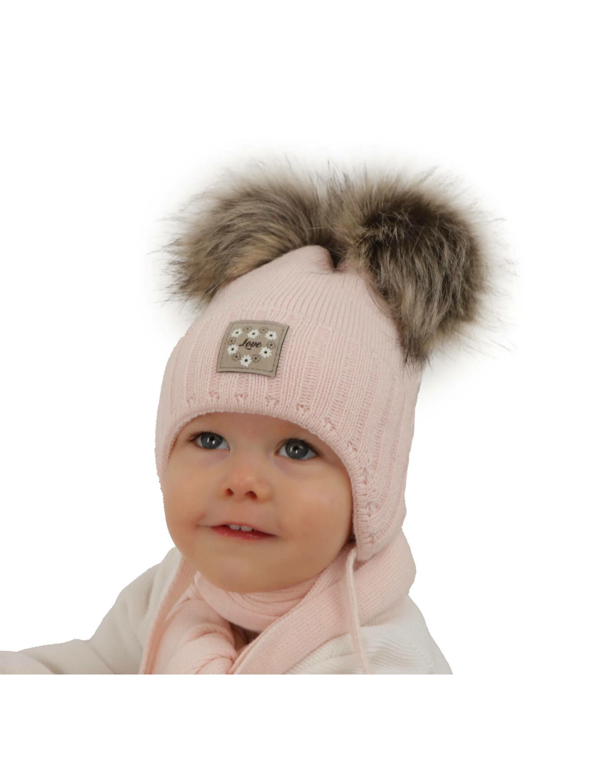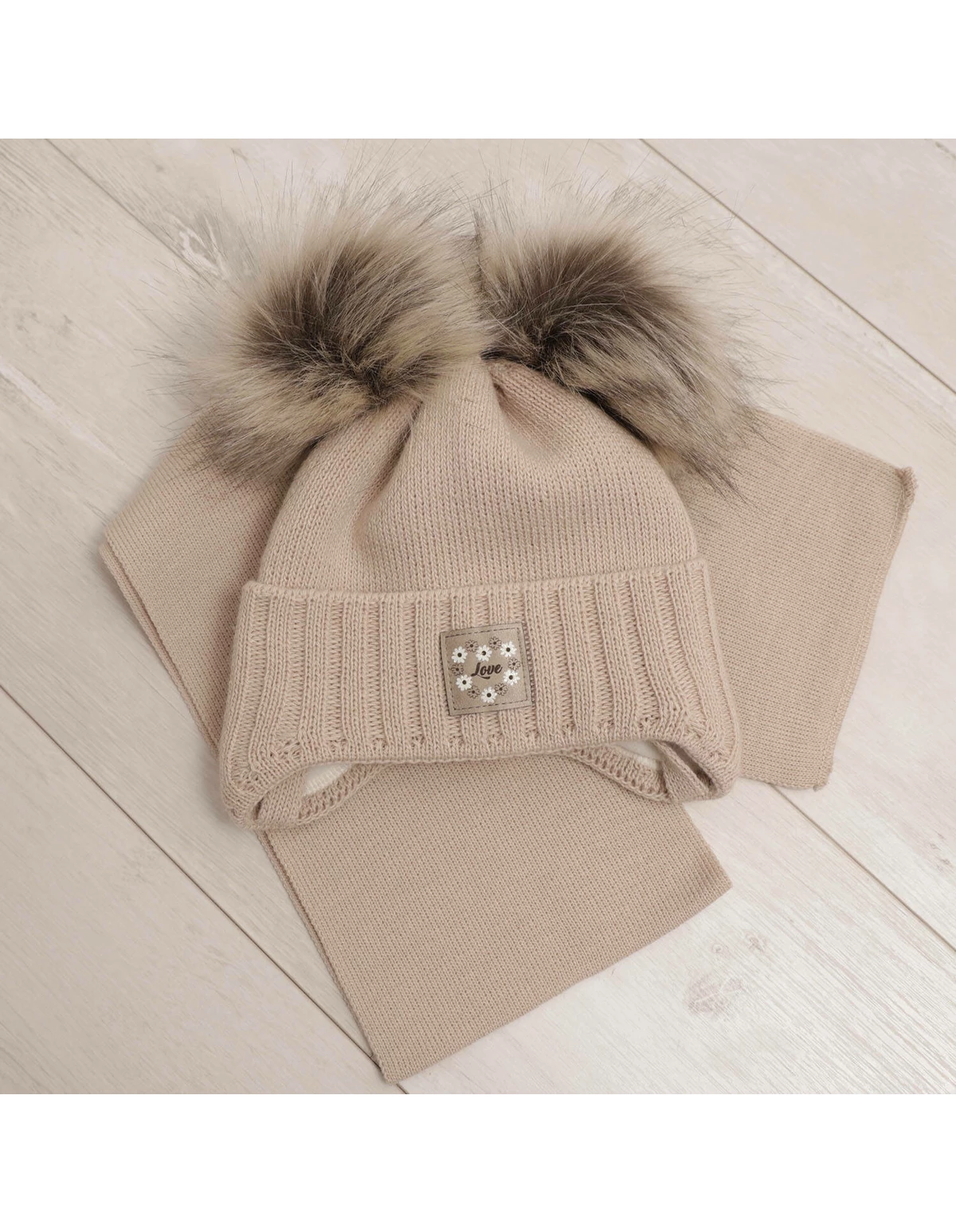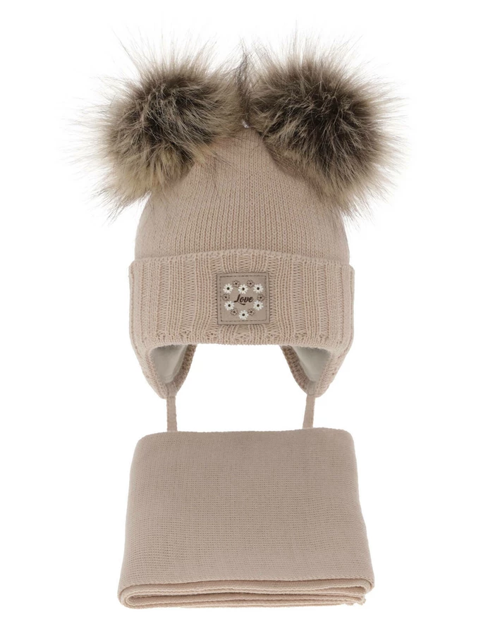 Setul de iarnă pentru fetițe de la marca AGBO, fabricat din 100% acrilic, include o căciulă cu două pompoane din blană ecologică și o eșarfă. Căciula are un design neted cu tricotaj cu nervuri, oferind un aspect modern și plăcut. Accesorizată cu un patch decorativ, căciula este căptușită cu fleece (100% poliester), oferind o protecție excelentă împotriva vântului. Potrivit pentru temperaturi între -6°C și 3°C, acest set certificat OEKO-TEX® Standard 100 asigură confort și siguranță pentru pielea sensibilă a copilului în sezonul rece.