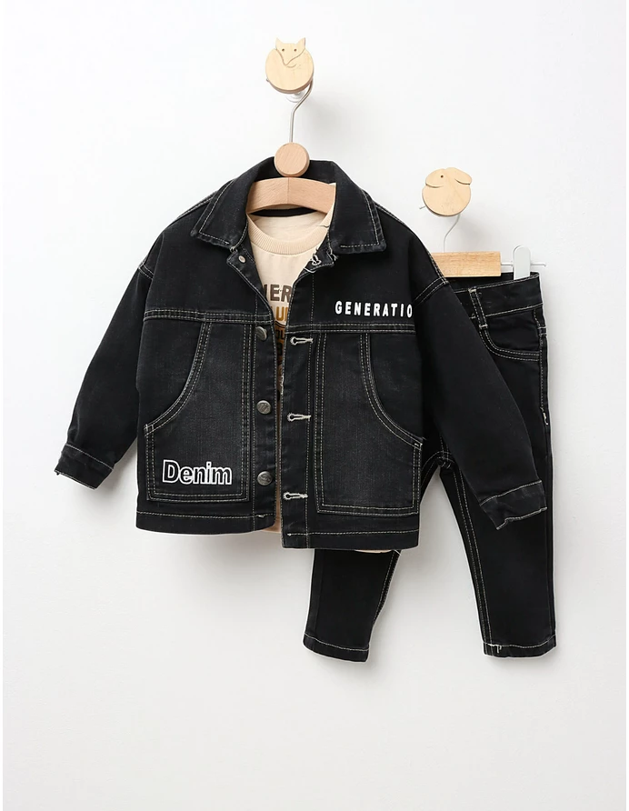 Compleu de blug pentru copii, ideal pentru un look casual și stylish. Acest set adorabil este format dintr-o geacă de blug cu deschidere în nasturi, o bluză de bumbac cu mânecă lungă pe interior pentru un plus de confort, și pantalonași de blug asortați. Fabricat din 100% bumbac, acest compleu asigură confort și respirabilitate, fiind perfect pentru activitățile de zi cu zi. Alege acest set versatil pentru a oferi copilului tău un stil modern și practic, ideal pentru orice ocazie.