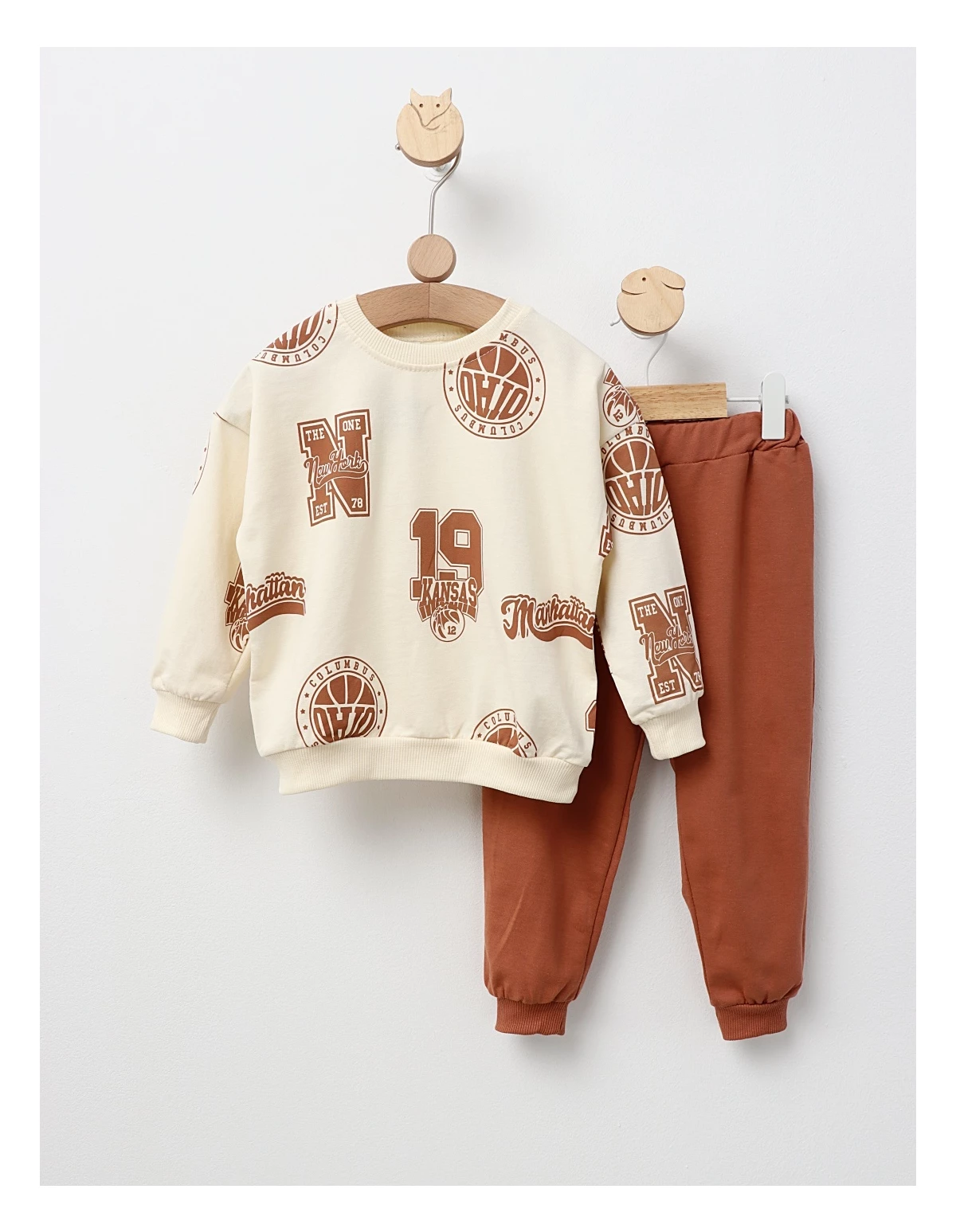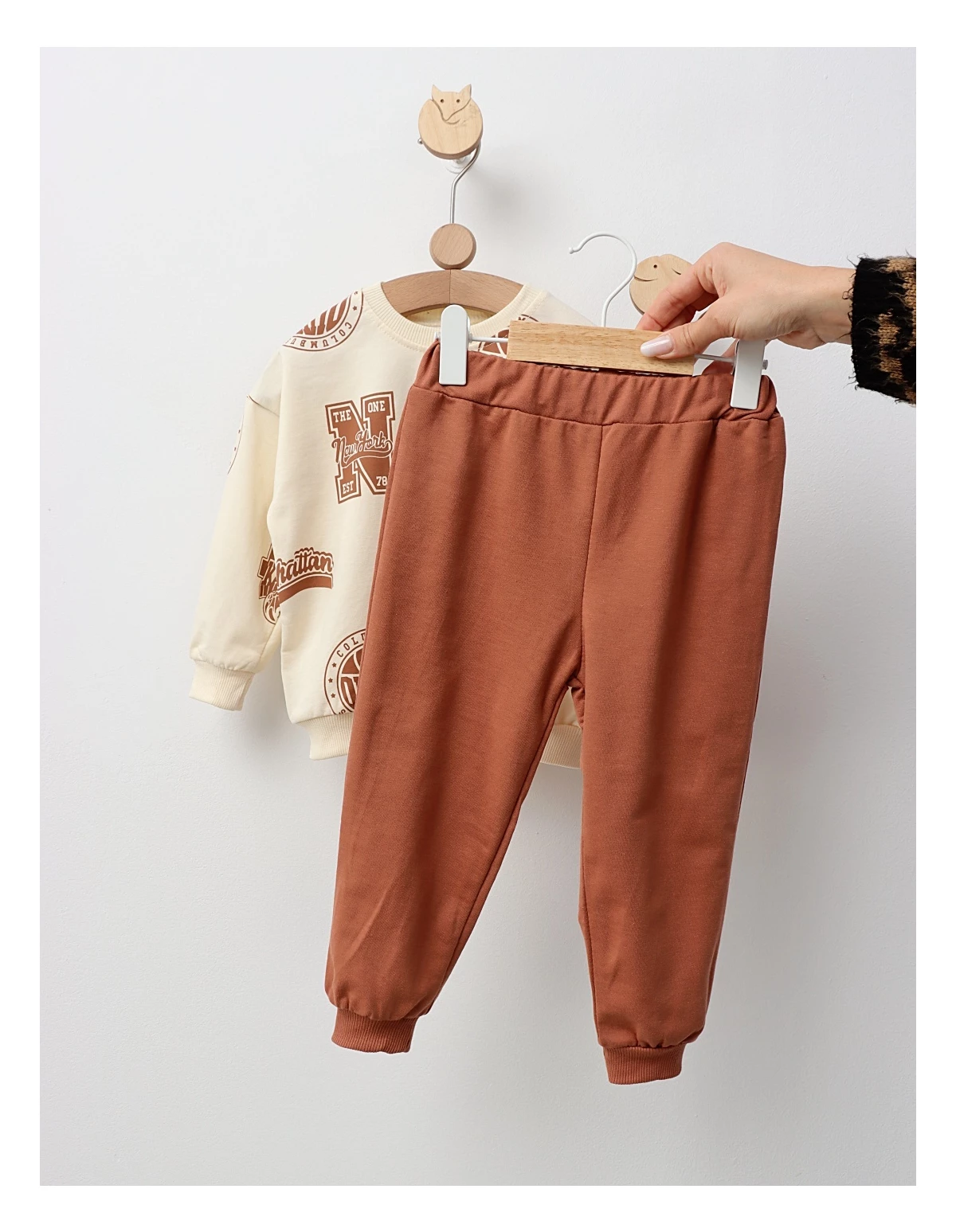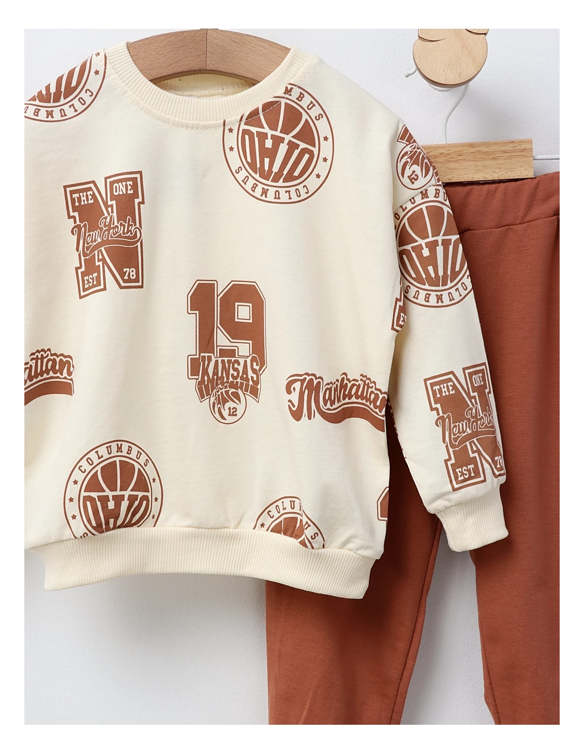 Îmbrăcați-vă băiețelul în stil și confort cu acest compleu adorabil, perfect pentru zilele active! Setul include o bluză călduroasă cu imprimeuri „Sporturi Universitare”, care inspiră aventură și mișcare. Pantalonașii sunt dotați cu elastic în talie, asigurând o potrivire lejeră și confortabilă. Fabricat din 100% bumbac de calitate, acest material asigură respirabilitate și o senzație plăcută pe piele, fiind ideal pentru joacă, plimbări sau momente de relaxare acasă. Alegeți acest outfit stylish pentru a adăuga un strop de energie și confort în garderoba băiețelului vostru!