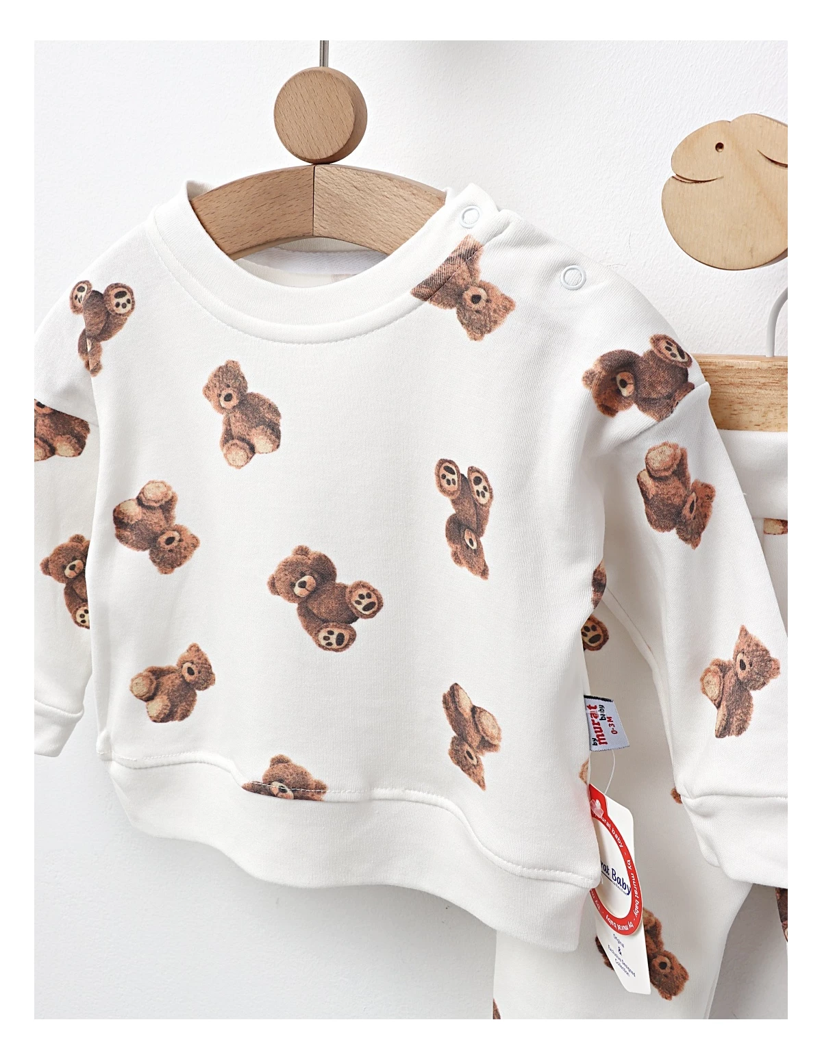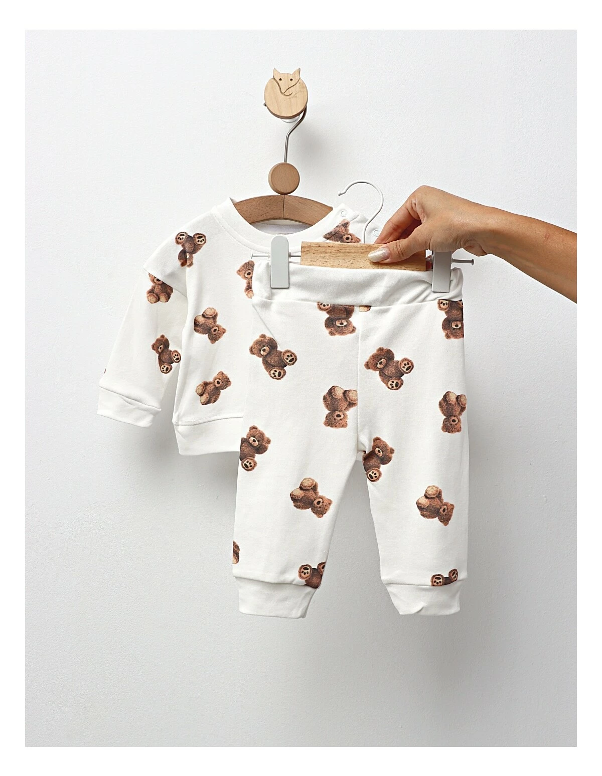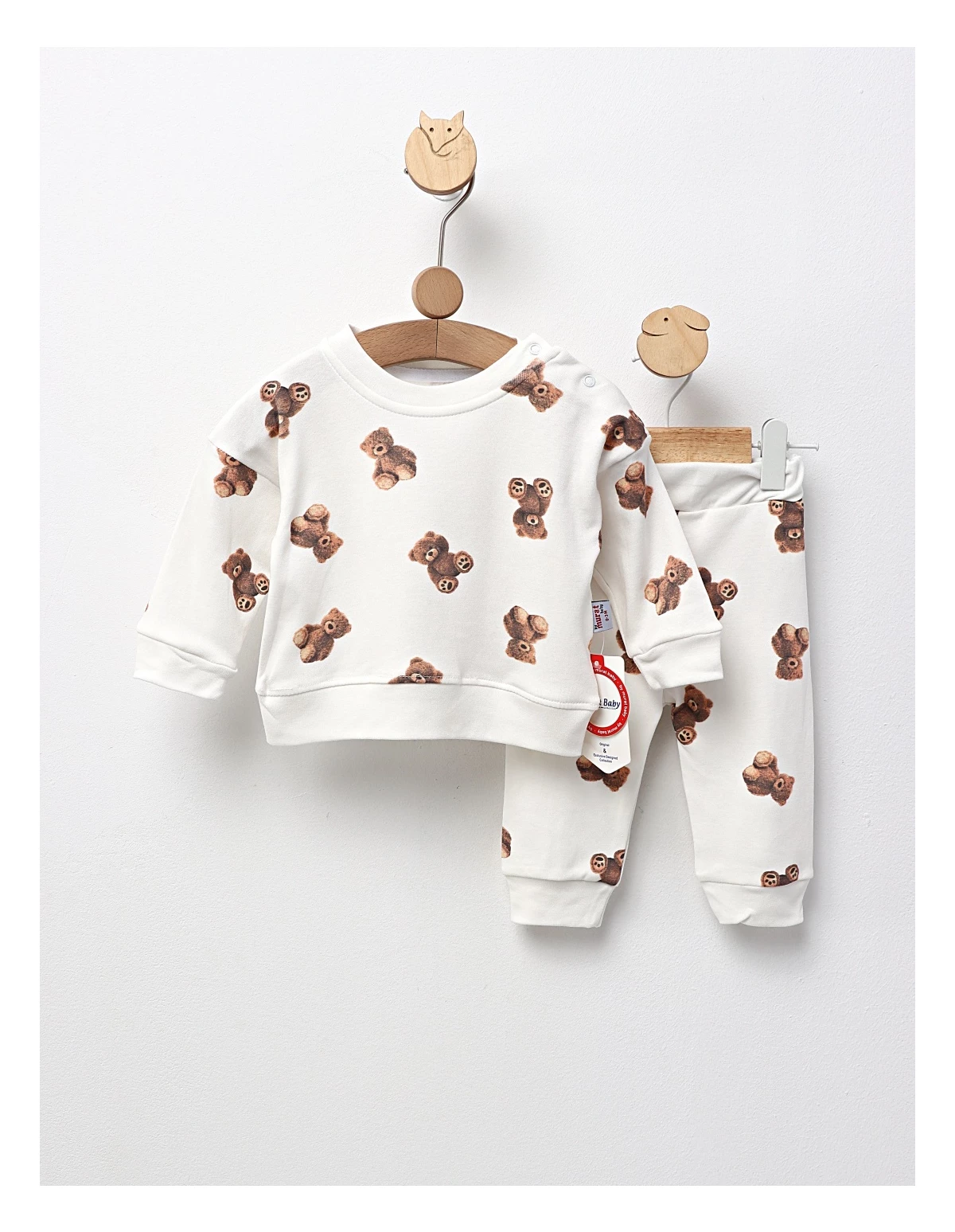 Costum pentru copii cu design premium, format dintr-o bluza cu deschidere în capse pe umăr și pantaloni cu elastic în talie. Confecționat din 100% bumbac, acest set oferă confort, lejeritate și un stil modern, perfect pentru zilele relaxante sau activități în aer liber.
