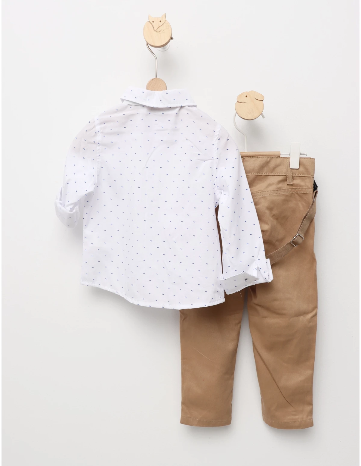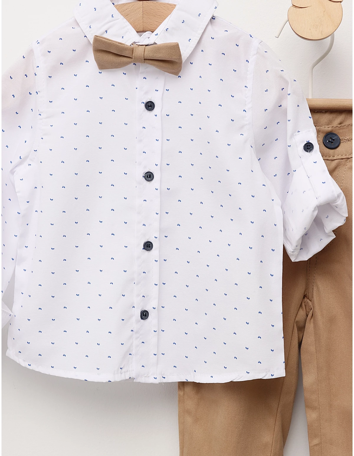 Transformă-l pe micuțul tău în centrul atenției cu acest costumaș elegant, ideal pentru evenimente speciale. Setul cuprinde o cămășuță albă clasică, cu deschidere la nasturi, confecționată dintr-un amestec de 60% bumbac și 40% poliester, oferind un echilibru între confort și durabilitate. Pantalonașii eleganți, realizați din 100% bumbac, prezintă o deschidere cu nasture și fermoar pentru o potrivire perfectă și confortabilă. Completând ținuta, bretelele ajustabile și papionul adaugă un plus de rafinament și stil, transformând orice ocazie într-un moment special. Acest set sofisticat nu este doar o alegere practică, ci și una care va face fiecare eveniment memorabil pentru tine și micuțul tău. Perfect pentru nunți, botezuri sau sărbători, acest costumaș va aduce un plus de eleganță oricărei ocazii!