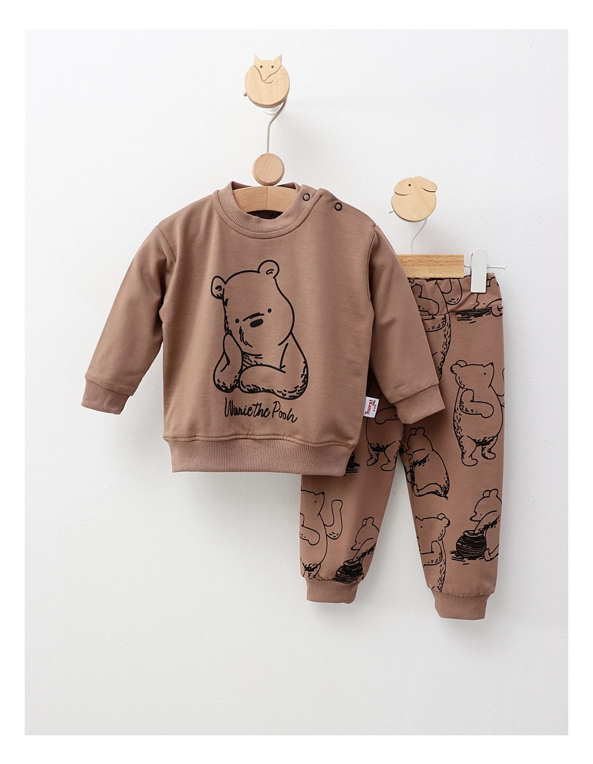 Costumul pentru băieței este o alegere adorabilă și confortabilă, perfectă pentru micii fani ai aventurilor lui Winnie the Pooh. Acesta include o bluză cu deschidere în capse pe umăr, facilitând îmbrăcarea rapidă și ușoară. Bluzita este decorată cu un imprimeu jucăuș cu Winnie the Pooh, aducând un zâmbet pe fața celor mici. Pantalonașii asortați completează setul, oferind un look coordonat și stilat pentru fiecare zi de joacă. Fabricat din 100% bumbac, acest costumas este blând cu pielea delicată a bebelușilor, asigurând o senzație plăcută și respirabilitate optimă. Ideal pentru joacă, excursii sau momente de relaxare, acest set devine rapid un favorit în garderoba băiețelului tău.