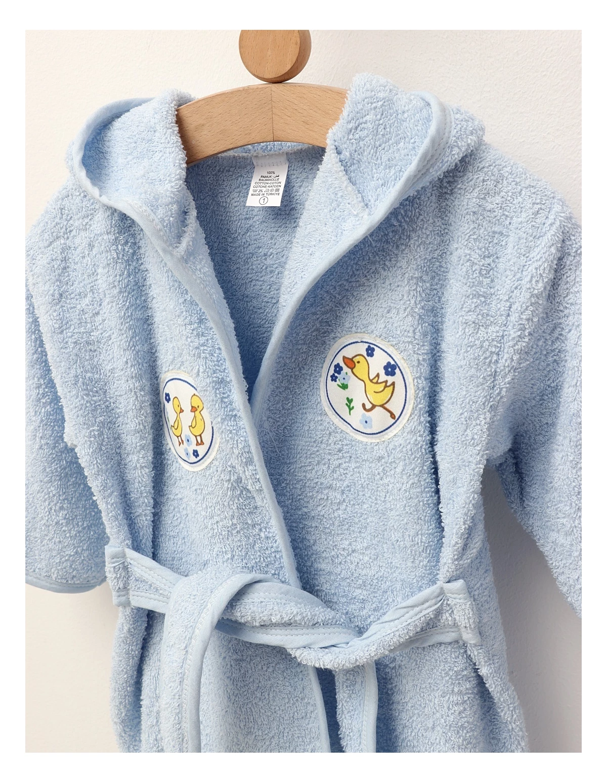 Halat pentru copii, cu snur în talie, glugă și imprimeu vesel cu rațe, super pufos și confortabil. Confecționat din 100% bumbac, oferă căldură, siguranță și un aspect adorabil, perfect pentru zilele răcoroase, după baie sau momente de relaxare. Îmbrăcăminte de calitate care asigură confort și stil micuțului tău!
