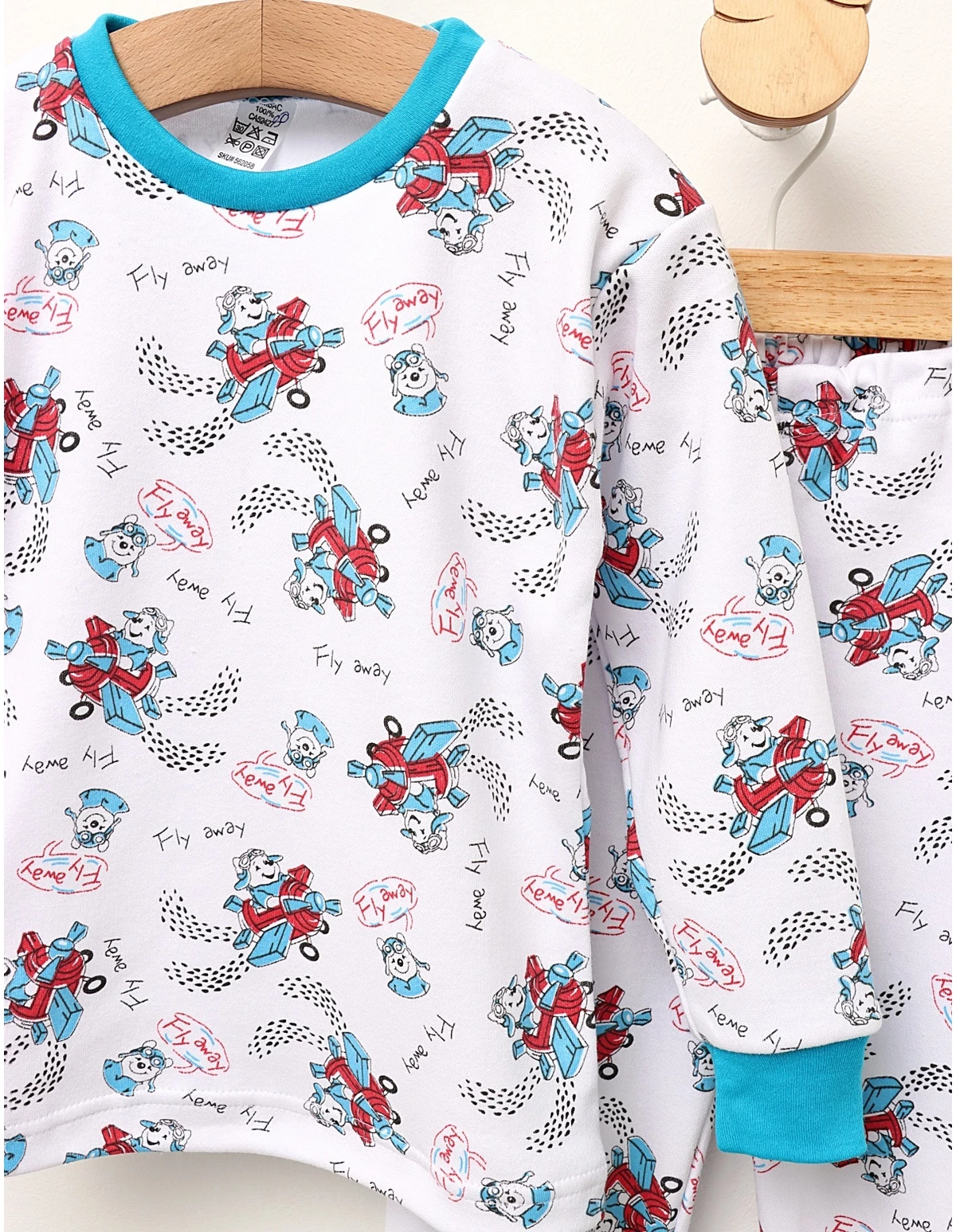 Oferă copilului tău nopți pline de vise frumoase cu această pijama confortabilă și veselă. Setul include o bluză cu mânecă lungă și pantalonași cu elastic în talie, asigurând o potrivire perfectă și libertate de mișcare pe tot parcursul nopții. Decorată cu diverse figurine și animăluțe adorabile, această pijama adaugă un strop de veselie rutinei de culcare. Fabricată din 100% bumbac, pijamaua oferă o textură moale și respirabilă, fiind perfectă pentru pielea sensibilă a micuțului tău. Ideală pentru un somn liniștit sau pentru momentele de relaxare acasă, această pijama devine rapid un element esențial în garderoba de noapte a copilului tău!