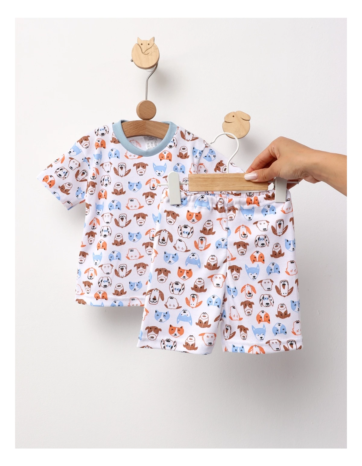 Această pijamă pentru copii este perfectă pentru nopțile de vară sau pentru relaxare în timpul zilei. Setul este format dintr-o bluziță cu mânecă scurtă și pantalonași scurți, ambele cu elastic în talie pentru confort maxim. Fabricată din 100% bumbac, pijama este moale, respirabilă și confortabilă, asigurându-le copiilor un somn odihnitor și plăcut. Imprimeurile colorate adaugă o notă veselă și distractivă, făcând ora de culcare mai atractivă pentru cei mici. Ideală pentru a ține copiii răcoroși și confortabili pe tot parcursul nopții, această pijamă combină funcționalitatea cu un design atractiv.