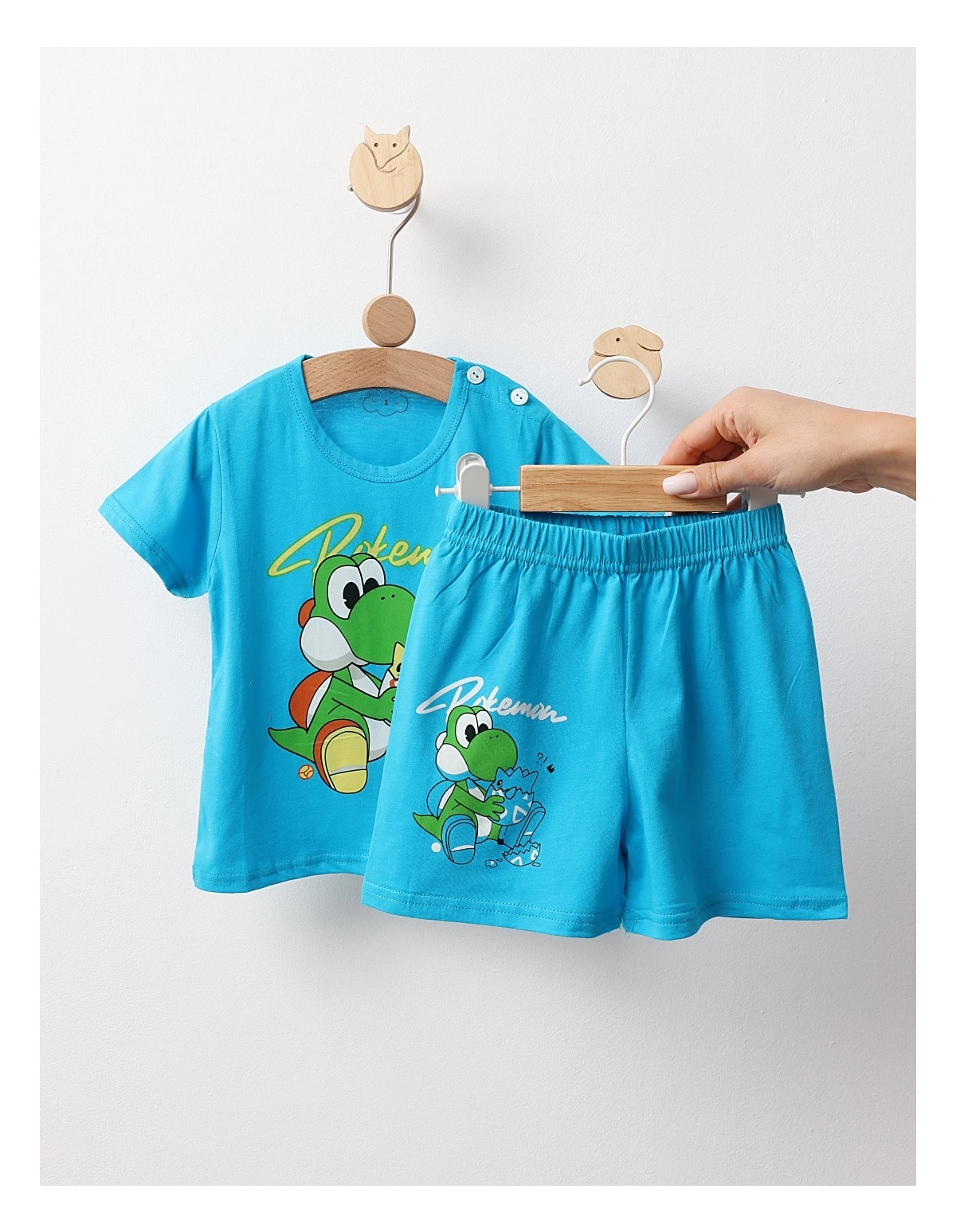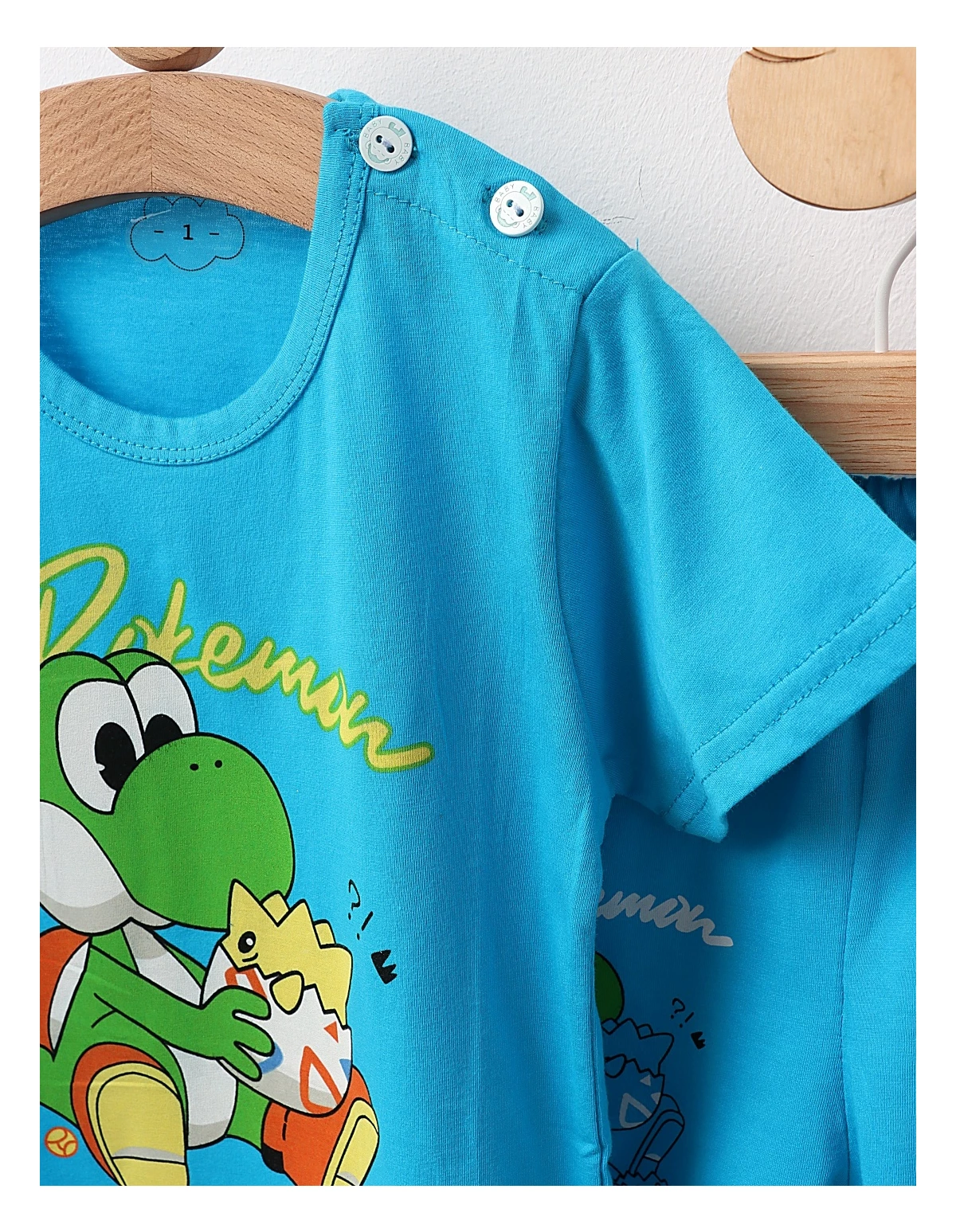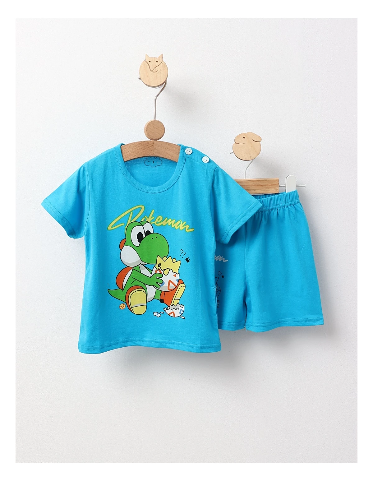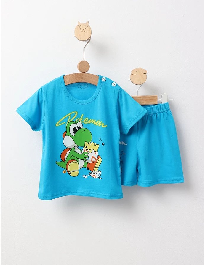 Pijama pentru băieței, compusă dintr-un tricou cu deschidere în nasturi pe umăr, decorat cu un imprimeu captivant cu personaje din Pokemon, și pantaloni cu elastic în talie pentru confort sporit. Fabricată din 100% bumbac, această pijama asigură o senzație blândă și plăcută pe pielea delicată a micuților, fiind perfectă pentru somn și joacă. Ideală pentru micii fani ai Pokemon, această pijama va aduce bucurie și distracție fiecărei nopți!