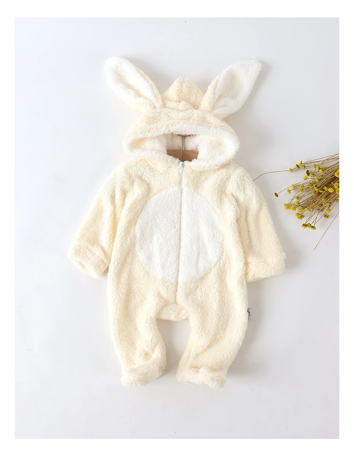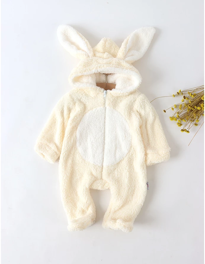 O salopetă adorabilă și călduroasă, perfectă pentru sezonul rece! Realizată din material moale și pufos de cocolino (100% poliester), oferă confort și protecție termică bebelușului tău. Modelul este prevăzut cu fermoar frontal pentru îmbrăcare ușoară, glugă cu urechiușe de iepuraș care adaugă un plus de farmec și botosei încorporați pentru a menține piciorușele calde. Ideală pentru plimbări sau momentele de relaxare, această salopetă combină perfect confortul cu adorabilul stil al celor mici. Atentie! Acest model a fost reetichetat cu masurile corespunzatoare tabelului de marimi.