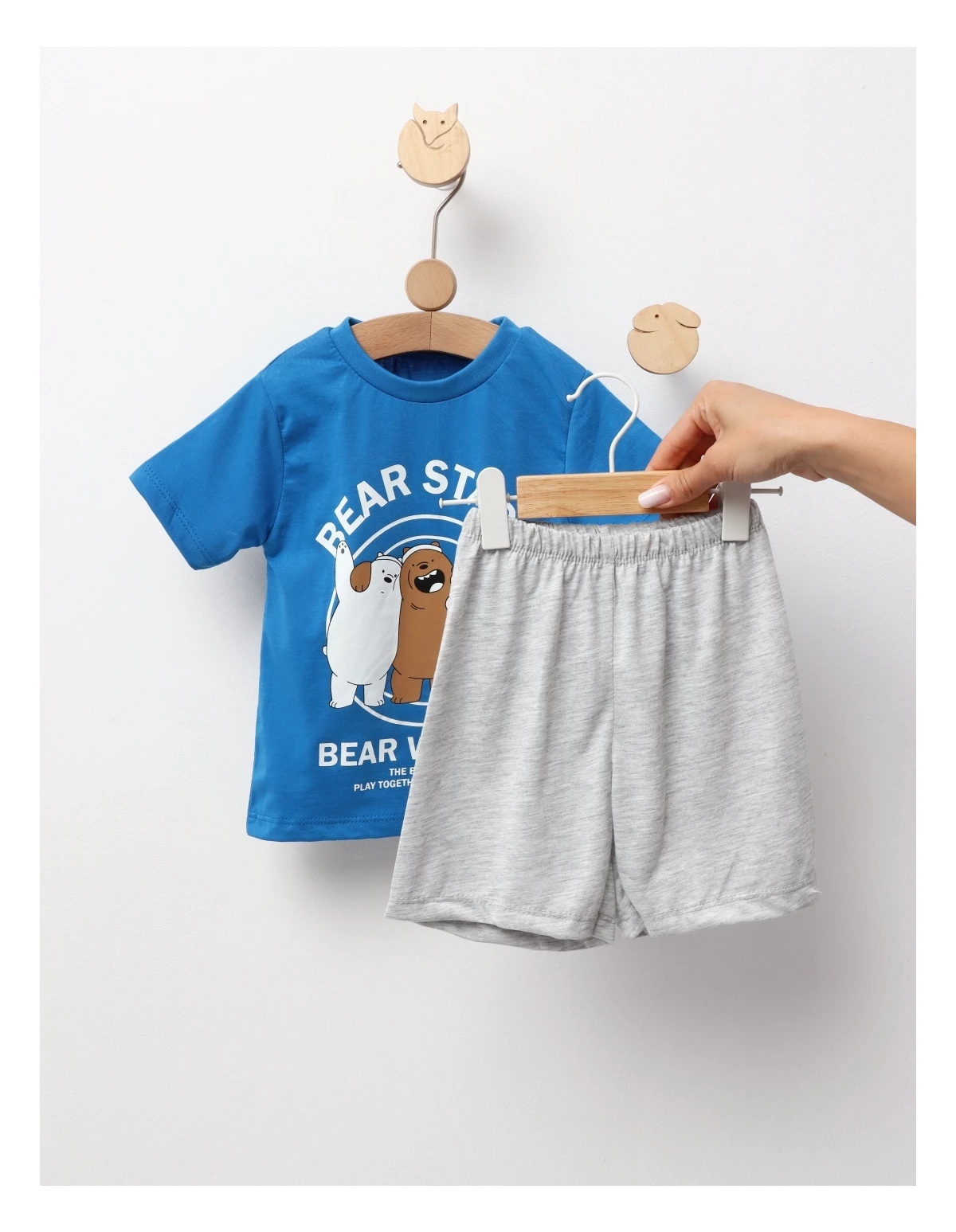 Setul în două piese pentru băieți include un tricou cu mânecă scurtă și pantaloni scurți cu elastic în talie. Fabricat dintr-un material confortabil ce conține 90% bumbac, 5% elastan și 5% poliester, acest set oferă o potrivire perfectă și libertate de mișcare, fiind ideal pentru zilele calde, plimbări și activități în aer liber.