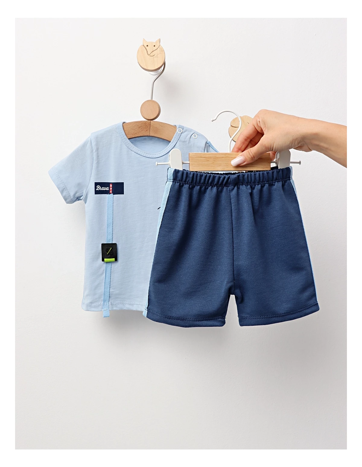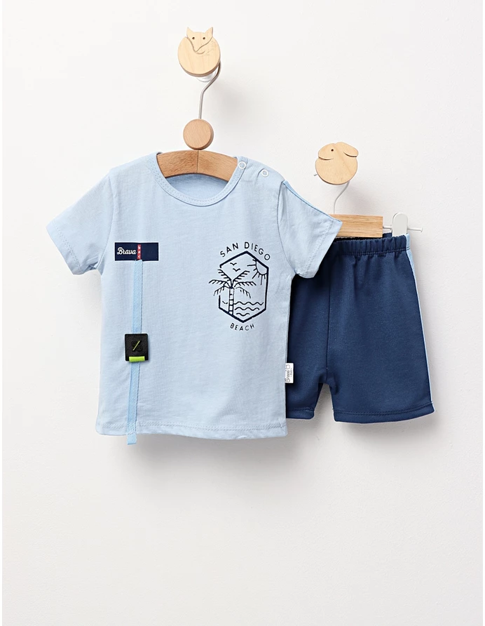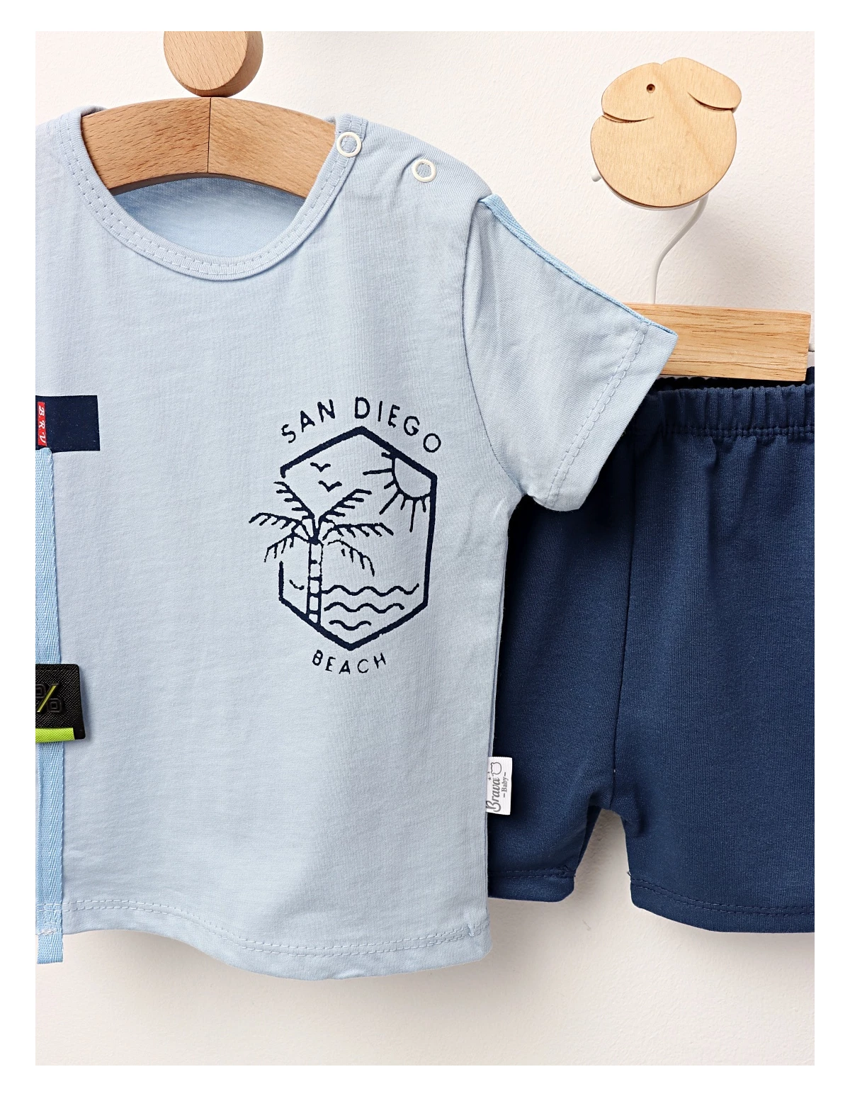 Set de vară pentru băieți, format dintr-un tricou cu imprimeu „Plasa din San Diego” și pantaloni scurți cu elastic în talie. Confecționat din 100% bumbac, acest set oferă confort, lejeritate și un stil casual perfect pentru zilele toride, plimbări în aer liber sau activități de relaxare în sezonul cald.