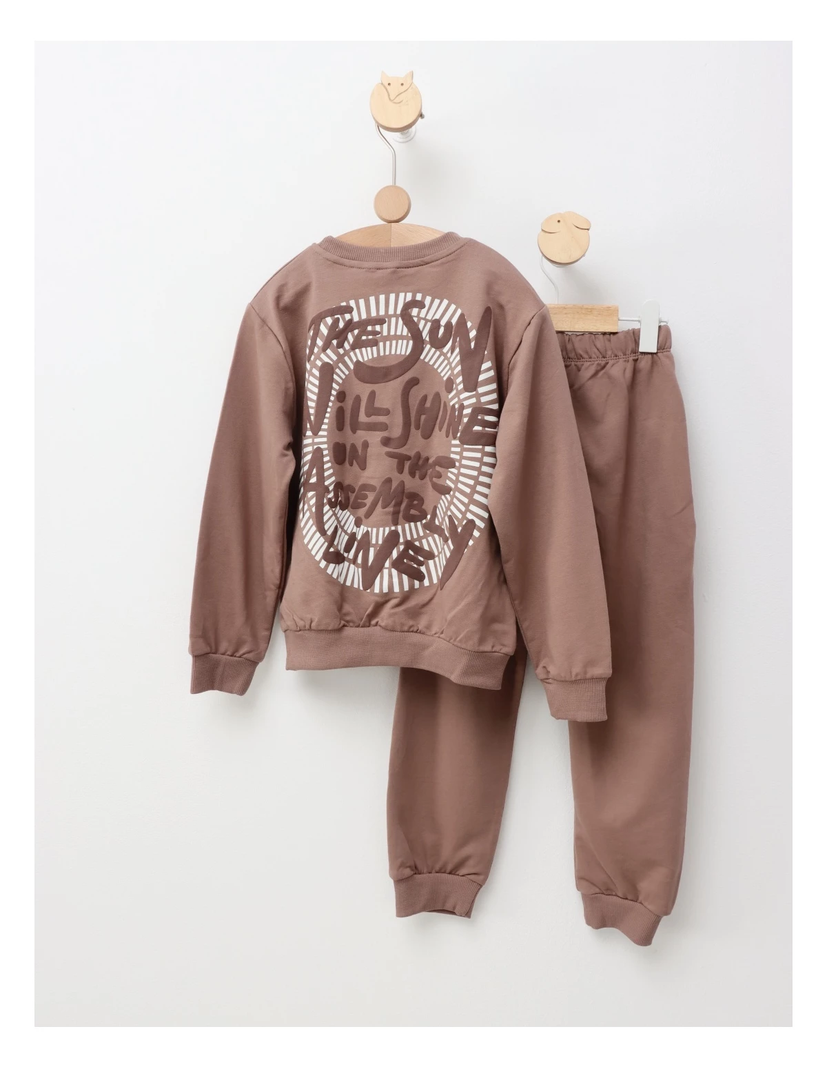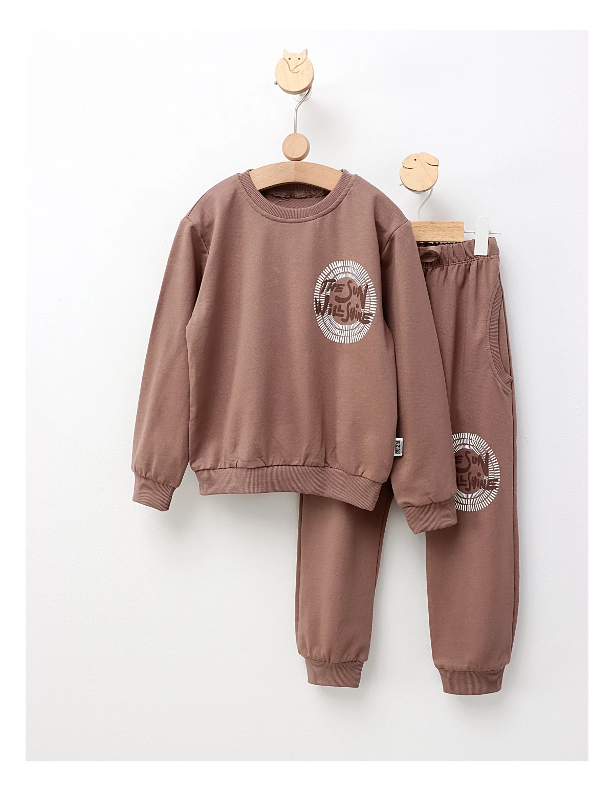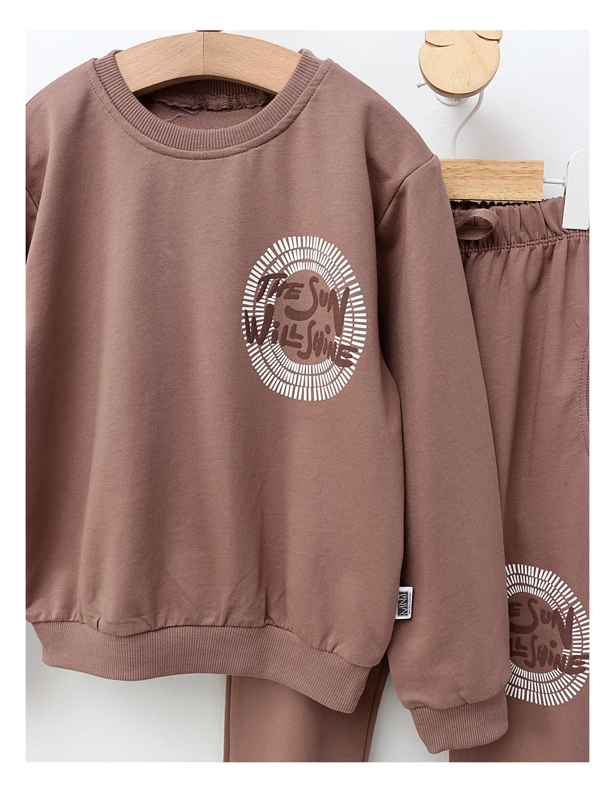 Îmbracă-ți copilul în acest trening drăgălaș, perfect pentru orice zi plină de aventuri! Setul constă într-o bluză confortabilă cu imprimeul "The sun will shine", care transmite o atitudine pozitivă, și pantalonași cu elastic în talie, care asigură libertate de mișcare. Realizat din 100% bumbac, acest trening este blând cu pielea delicată a copiilor și ideal pentru activitățile de zi cu zi. Fie că se joacă acasă sau ieșind în parc, micuțul tău se va simți minunat și va arăta fabulos! Alege-l pentru a adăuga un strop de confort și stil în garderoba copilului tău!
