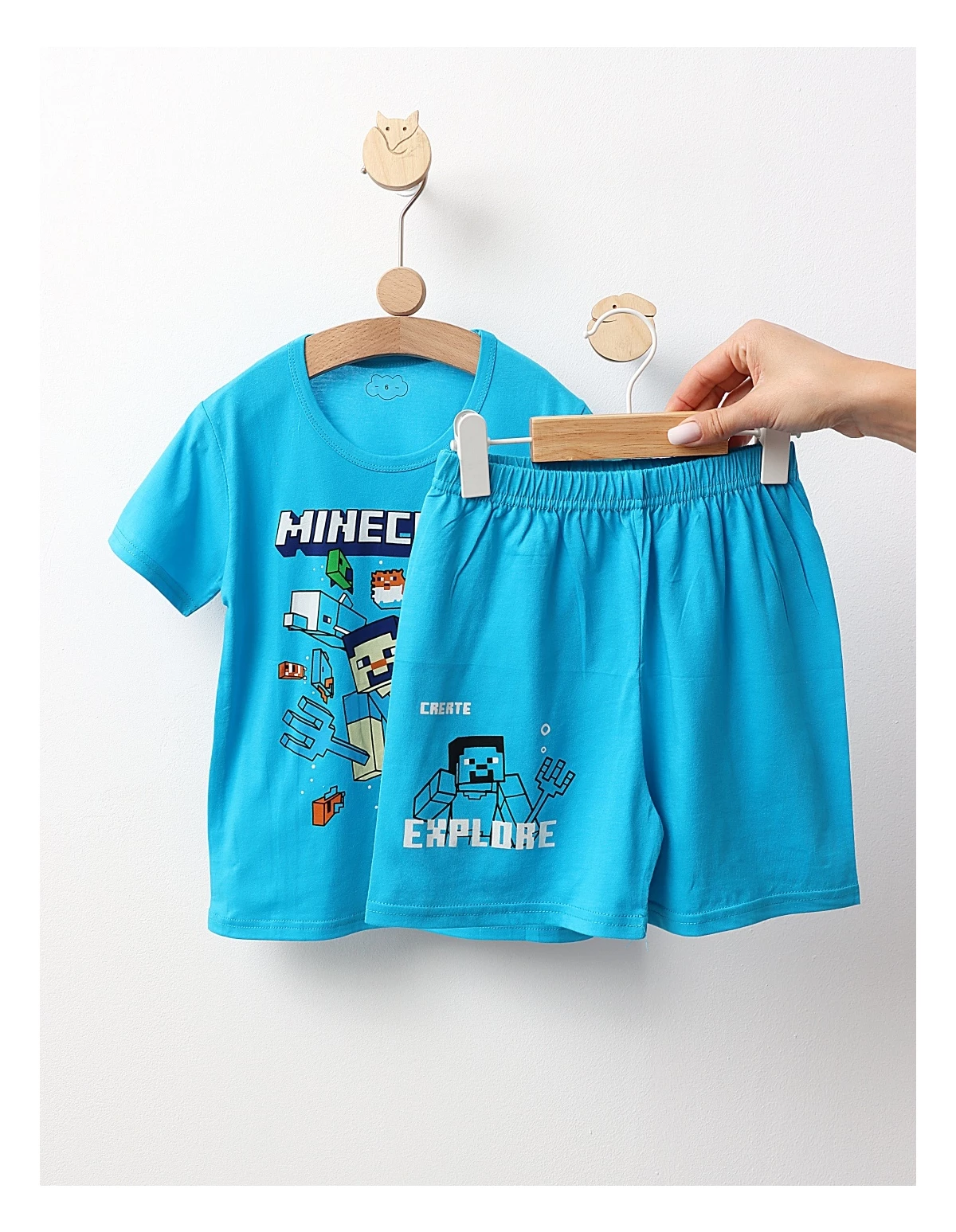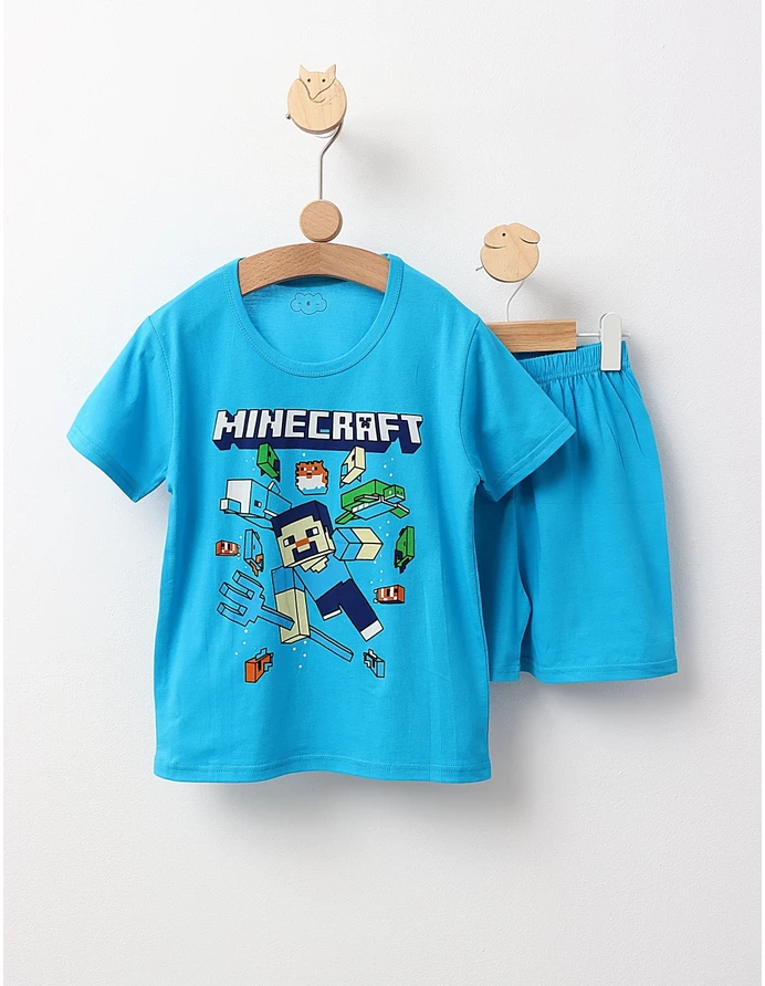 Pijama MS, Minecraft, cu turcoaz