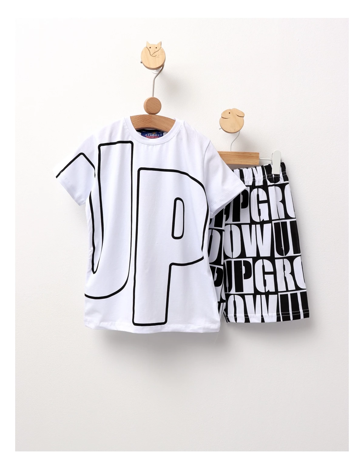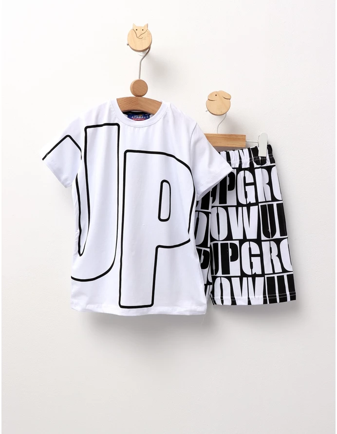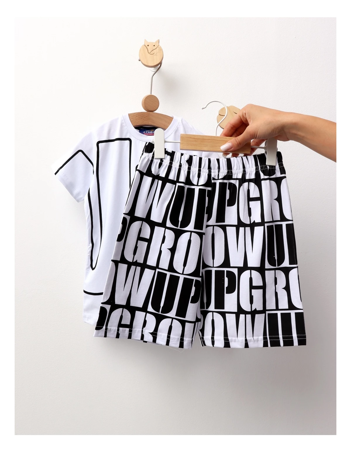 Compleul de vară pentru băieței include un tricou și pantaloni scurți cu elastic în talie, ambele confecționate din 100% bumbac pentru confort maxim. Decorat cu imprimeu cu litere și mesajul 'Grow Up', acest set aduce un stil casual și vesel, perfect pentru zilele calde, plimbări în aer liber sau jocuri în aer liber. O alegere ideală pentru garderoba micuțului tău!