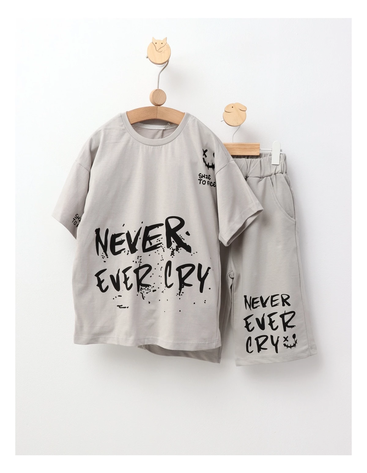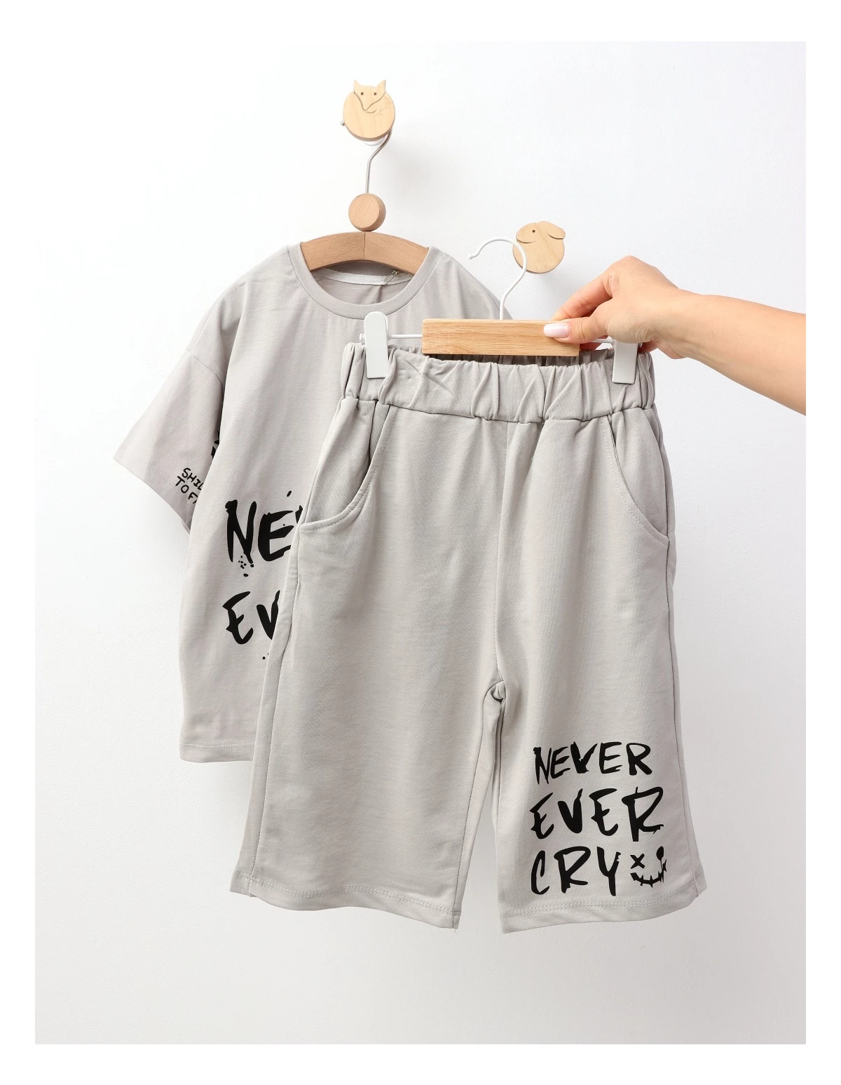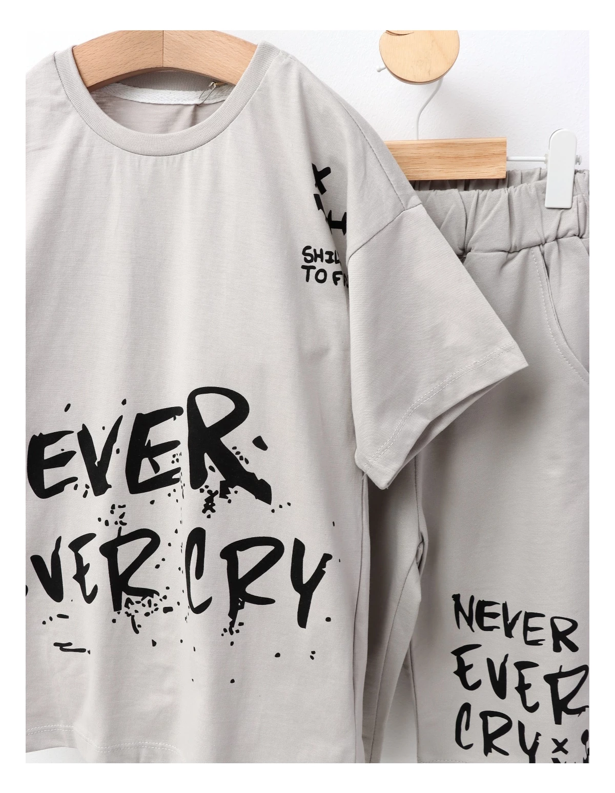 Setul în două piese pentru băieți între 9-12 ani include un tricou cu mânecă scurtă și pantaloni scurți cu elastic în talie și buzunare, realizate dintr-un material confortabil de 90% bumbac, 5% elastan și 5% poliester. Designul are un stil urban modern, perfect pentru adolescenți care apreciază un look casual și trendy. Ideal pentru zilele calde și activități relaxante în aer liber!
