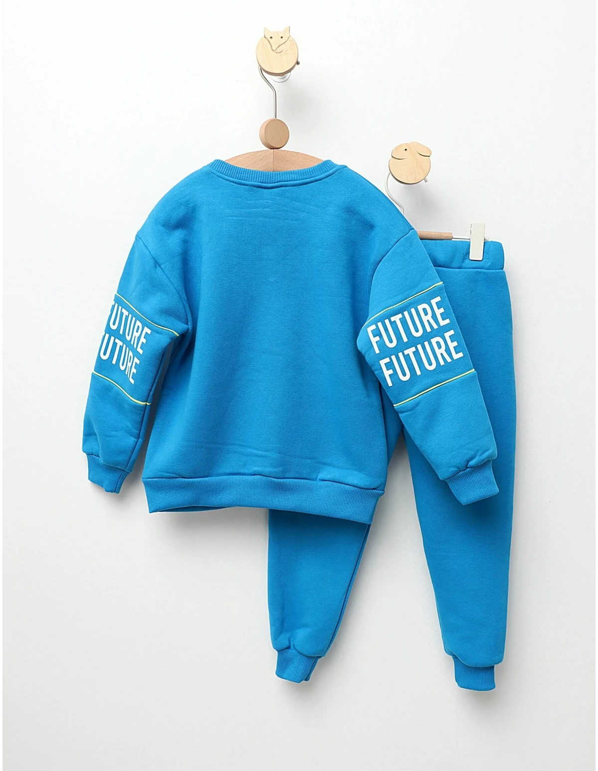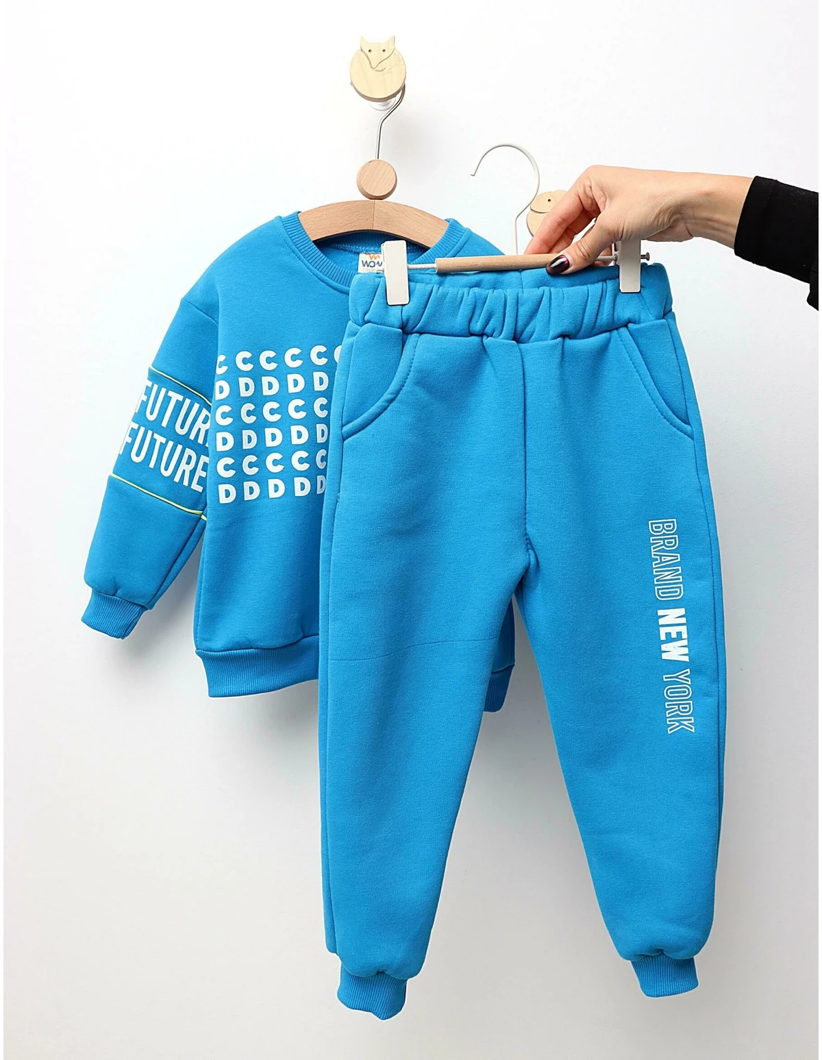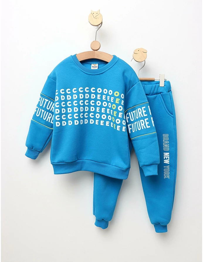 Îmbrăcați-vă băiețelul cu acest trening călduros și confortabil, perfect pentru fiecare zi! Cu un interior vatuits, acest set include o bluză moale și pantaloni cu elastic în talie, care asigură o îmbrăcare lejeră și confort maxim. Pantalonașii sunt prevăzuți cu buzunare practice, perfecte pentru micile comori ale copilului. Fabricat dintr-un material de calitate, compus din 95% bumbac și 5% licra, acest trening oferă flexibilitate și respirabilitate, ideal pentru activitățile de zi cu zi, plimbări în aer liber sau momente de relaxare acasă. Alegeți acest outfit trendy pentru a asigura confort și stil băiețelului vostru!