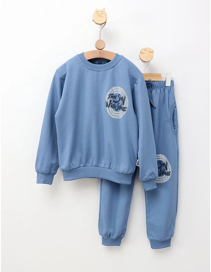 Îmbracă-ți copilul în acest trening drăgălaș, perfect pentru orice zi plină de aventuri! Setul constă într-o bluză confortabilă cu imprimeul 'The sun will shine', care transmite o atitudine pozitivă, și pantalonași cu elastic în talie, care asigură libertate de mișcare. Realizat din 100% bumbac, acest trening este blând cu pielea delicată a copiilor și ideal pentru activitățile de zi cu zi. Fie că se joacă acasă sau ieșind în parc, micuțul tău se va simți minunat și va arăta fabulos! Alege-l pentru a adăuga un strop de confort și stil în garderoba copilului tău!