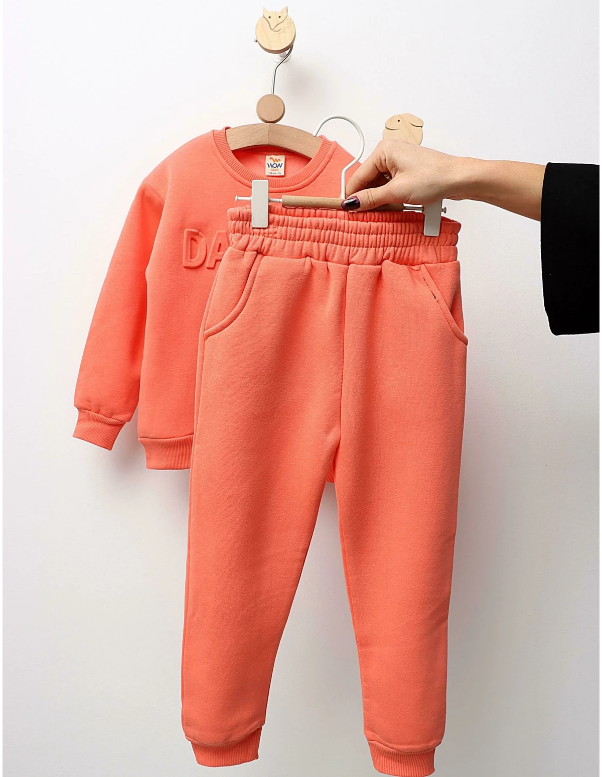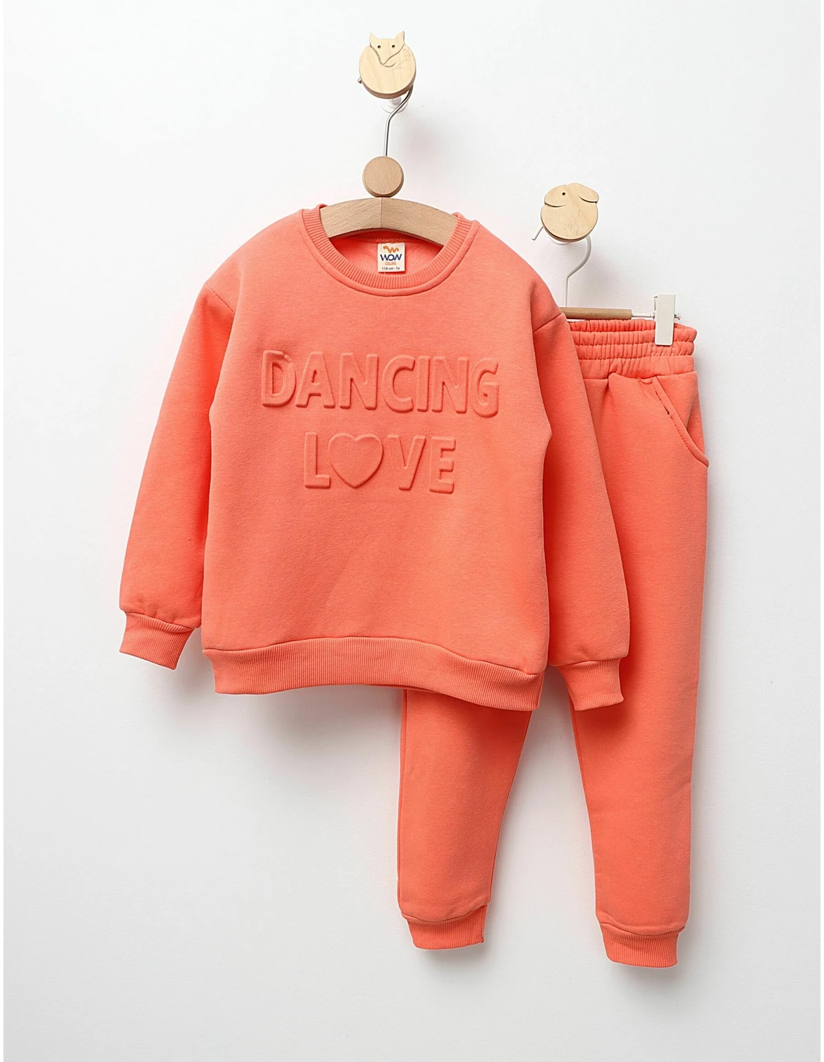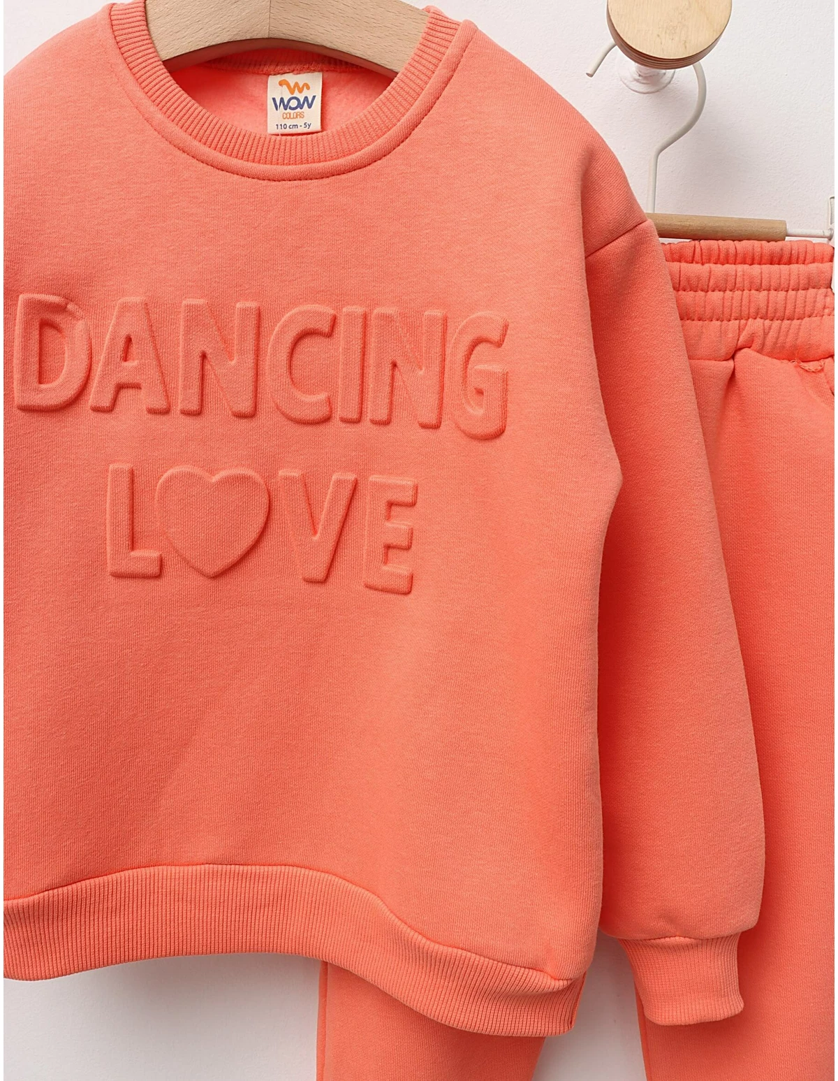 Îmbracă-ți fetița cu acest compleu adorabil, perfect pentru zilele reci! Realizat din material vatuit pe interior, acest set este pufos, călduros și extrem de confortabil. Compleul include o bluză cu un imprimeu 3D jucăuș „Dancing Love”, care adaugă un sentiment de veselie, și pantalonași cu elastic în talie și buzunare pentru o potrivire practică și lejeră. Fabricat din 95% bumbac și 5% poliester, acest material asigură o senzație plăcută pe piele și o libertate de mișcare excelentă. Ideal pentru joacă, plimbări sau momente de relaxare, acest compleu va deveni rapid preferatul micuței tale!