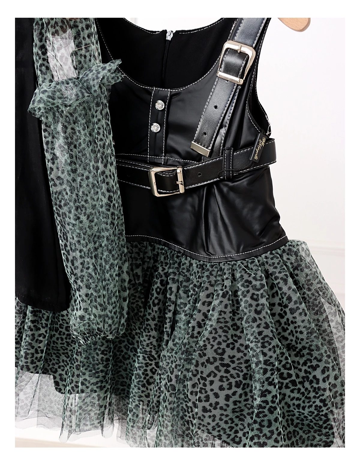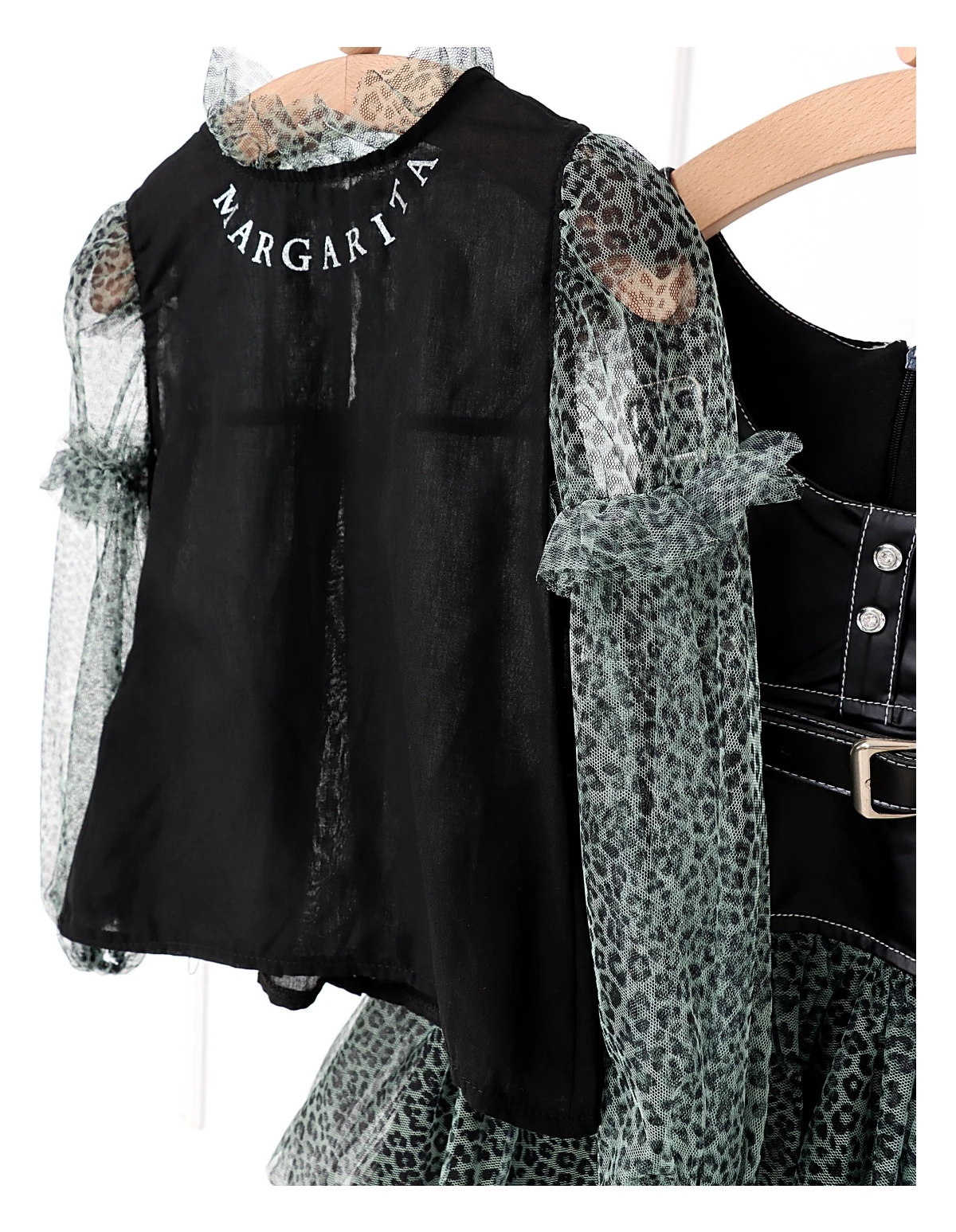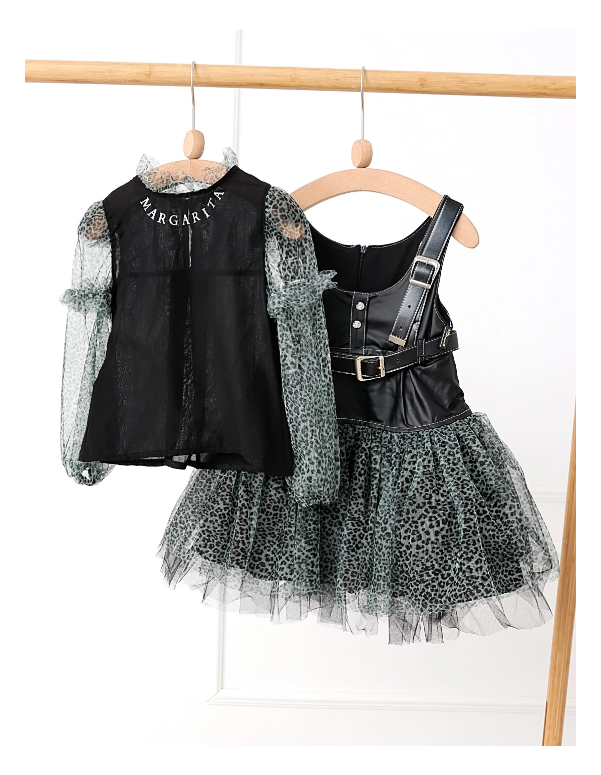 Îmbracă-ți fetița cu acest set elegant și drăgălaș, perfect pentru ocazii speciale! Setul este format dintr-o rochiță cu bretele, având un design stil curea în talie care evidențiază frumusețea ținutei. Rochița este decorată cu volanase din dantelă și are o deschidere în fermoar, completată de o jupă pe dedesubt pentru un plus de volum și confort. Bluzita cu mâneci transparente din volanase cu dantelă și nasture asigură o îmbrăcare ușoară. Fabricat din 100% bumbac, acest set oferă confort, respirabilitate și un look chic, ideal pentru zilele călduroase!
