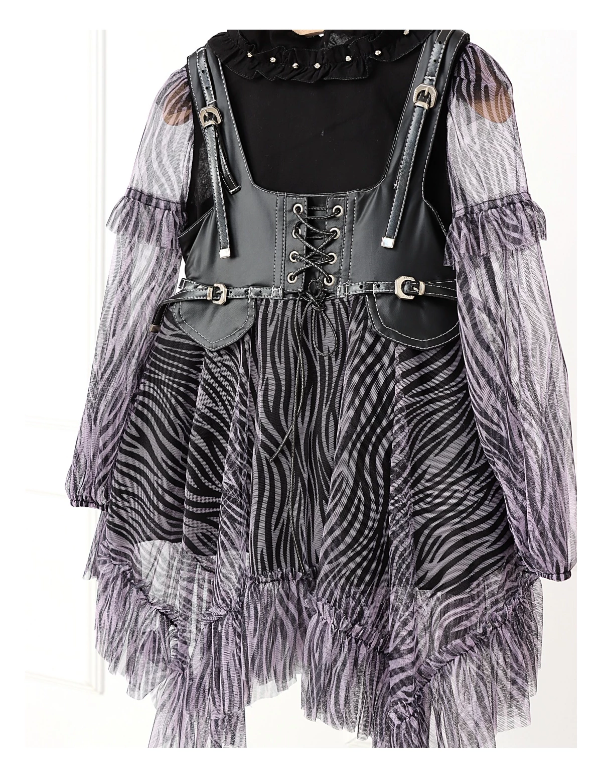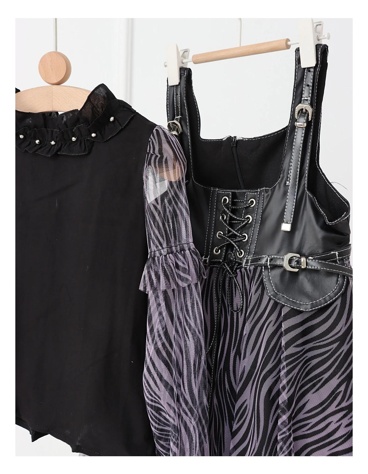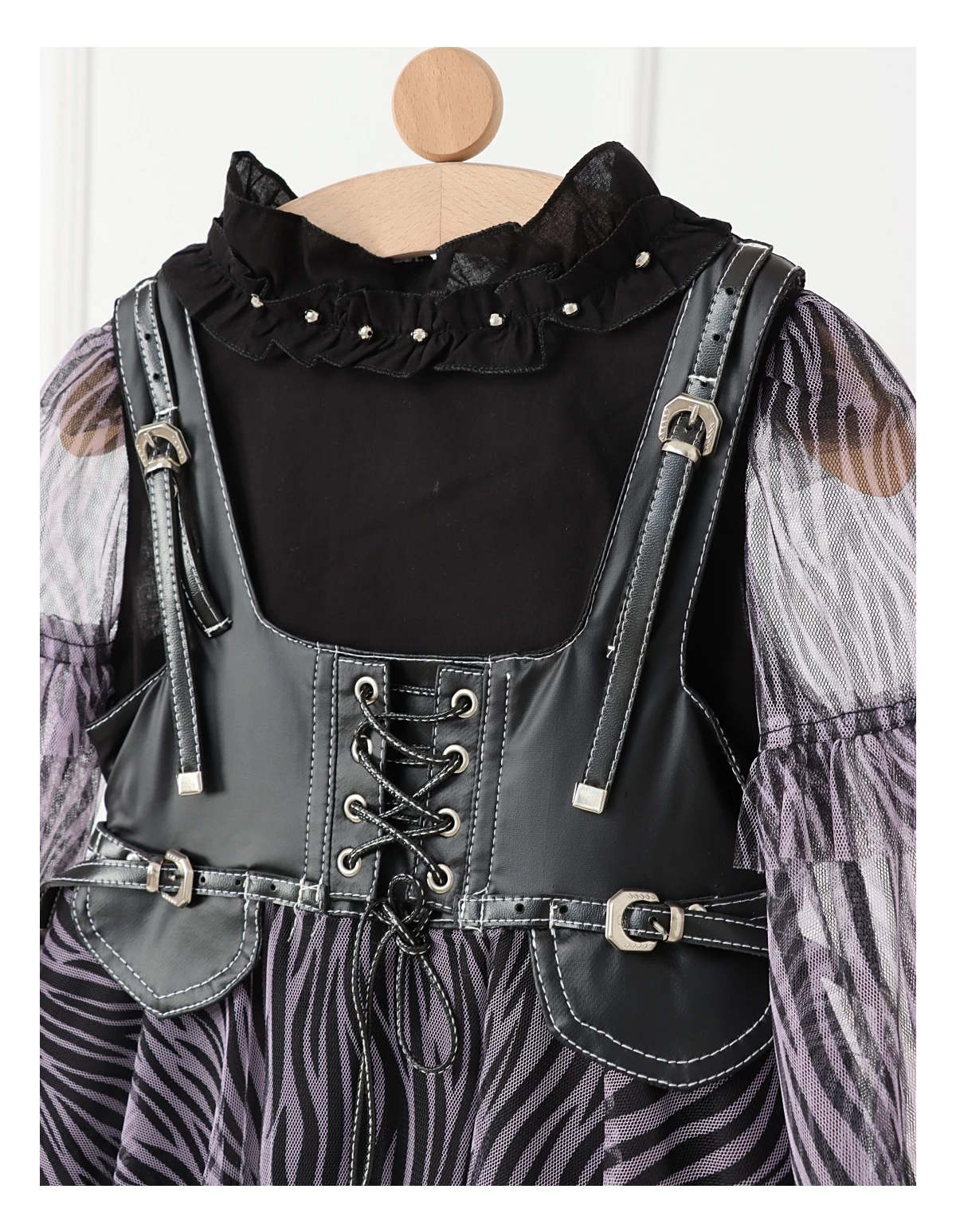 Îmbracă-ți fetița cu acest set elegant și jucăuș, perfect pentru orice ocazie specială! Setul include o rochiță cu bretele stil curea, dotată cu un șnur stil siret și volanase din dantelă, care adaugă un farmec aparte. Rochița are deschidere în fermoar și o jupă pe dedesubt pentru un plus de confort și volum. Bluzita cu mâneci transparente din volanase cu dantelă completează perfect acest outfit, având un nasture pentru o îmbrăcare ușoară. Fabricat din 100% bumbac, acest set asigură confort și respirabilitate, fiind ideal pentru zilele călduroase și petreceri!