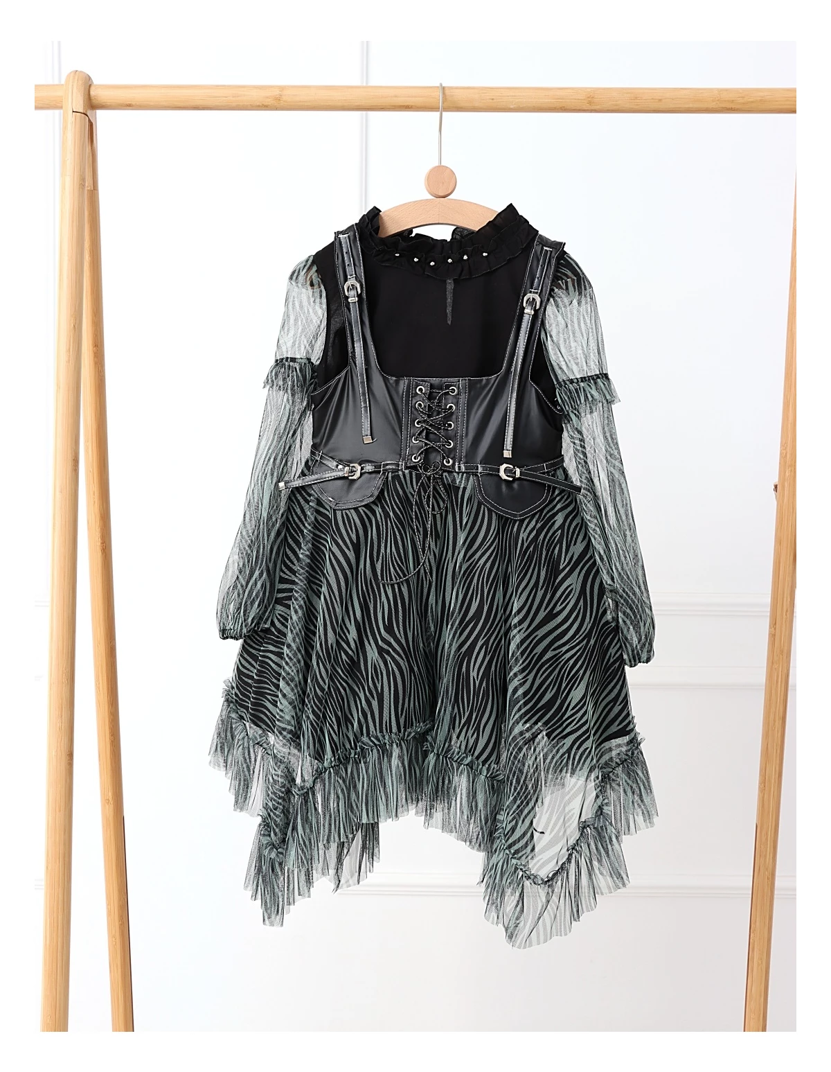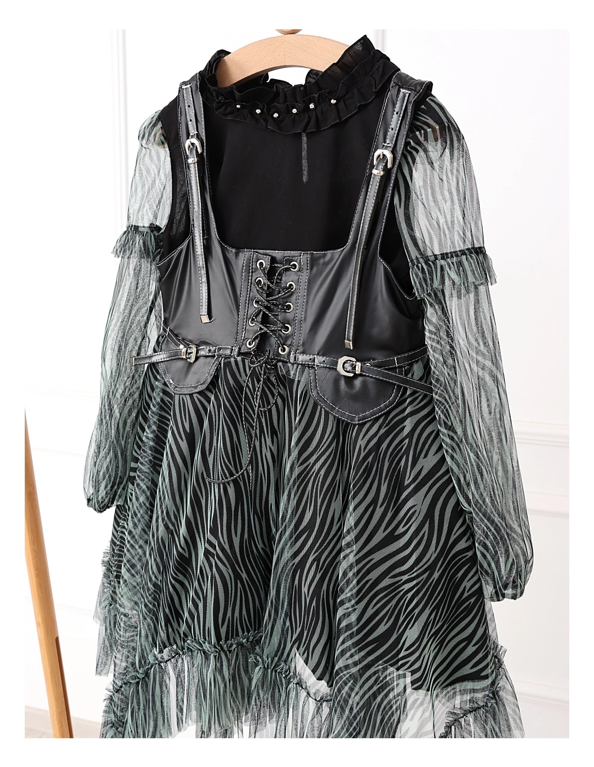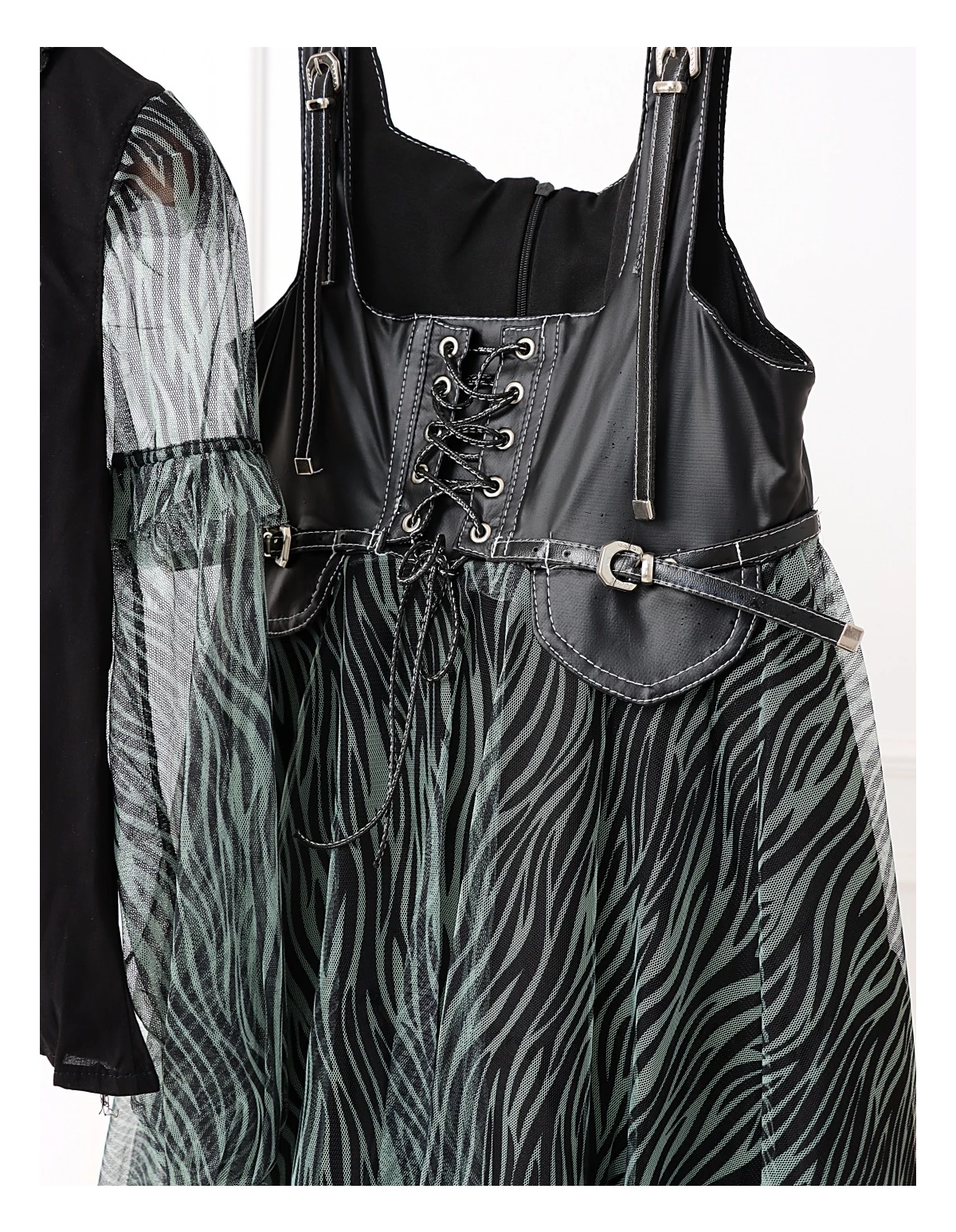 Îmbracă-ți fetița cu acest set elegant și jucăuș, perfect pentru orice ocazie specială! Setul include o rochiță cu bretele stil curea, dotată cu un șnur stil siret și volanase din dantelă, care adaugă un farmec aparte. Rochița are deschidere în fermoar și o jupă pe dedesubt pentru un plus de confort și volum. Bluzita cu mâneci transparente din volanase cu dantelă completează perfect acest outfit, având un nasture pentru o îmbrăcare ușoară. Fabricat din 100% bumbac, acest set asigură confort și respirabilitate, fiind ideal pentru zilele călduroase și petreceri!