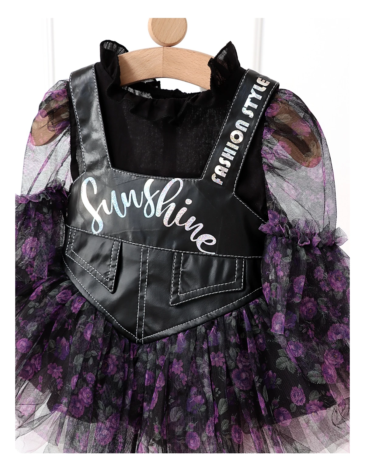 Îmbracă-ți fetița în eleganță și stil cu acest set adorabil, format dintr-o rochiță chic și o bluză drăguță! Rochița are bretele, un imprimeu sclipitor cu mesajul „Sunshine”, volanase din dantelă și deschidere în fermoar, fiind perfectă pentru zilele însorite. Sub rochiță, jupa adaugă un plus de volum și confort. Bluzita cu mâneci transparente din volanase cu dantelă este un accesoriu perfect pentru a completa ținuta, având nasture pentru o îmbrăcare ușoară. Fabricat din 100% bumbac, acest set asigură confort și respirabilitate, fiind ideal pentru evenimente speciale sau zile de joacă!