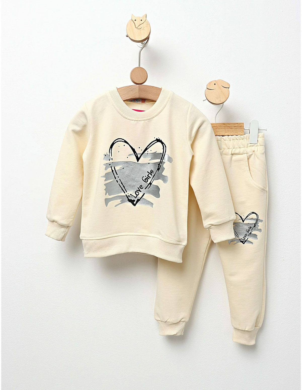 Compleu pentru fetițe, perfect pentru orice ocazie, combinând confortul cu un mesaj plin de iubire. Acest set adorabil este format dintr-o bluză cu imprimeu cu inimioare și mesajul 'girl love', alături de pantalonase cu elastic în talie, dotate cu buzunare pentru a adăuga un strop de practiciență. Fabricat din 100% bumbac, acest compleu asigură o purtare plăcută, fiind ideal pentru activitățile de zi cu zi. Alege acest set pentru a adăuga un aer jucăuș și romantic garderobei fetiței tale! Atentie! Costumasul a fost reetichetat cu marimea potrivita varstei.