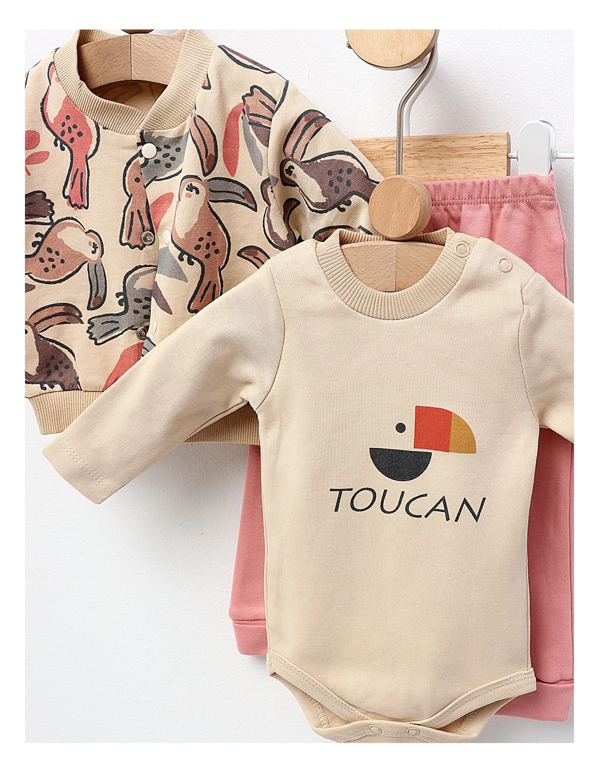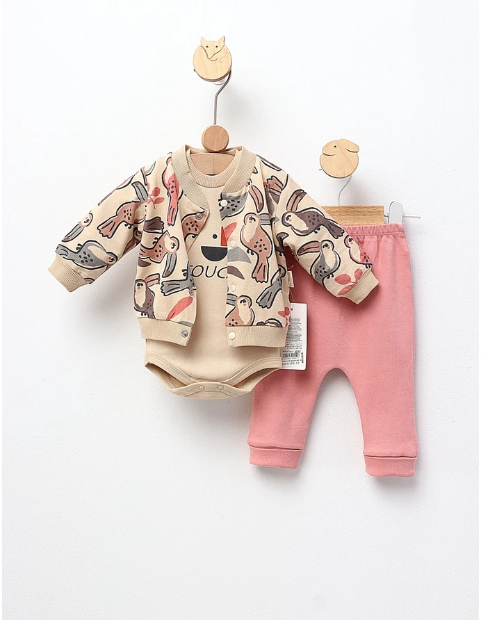 Costumas 3 piese, Parrots, crem-roz