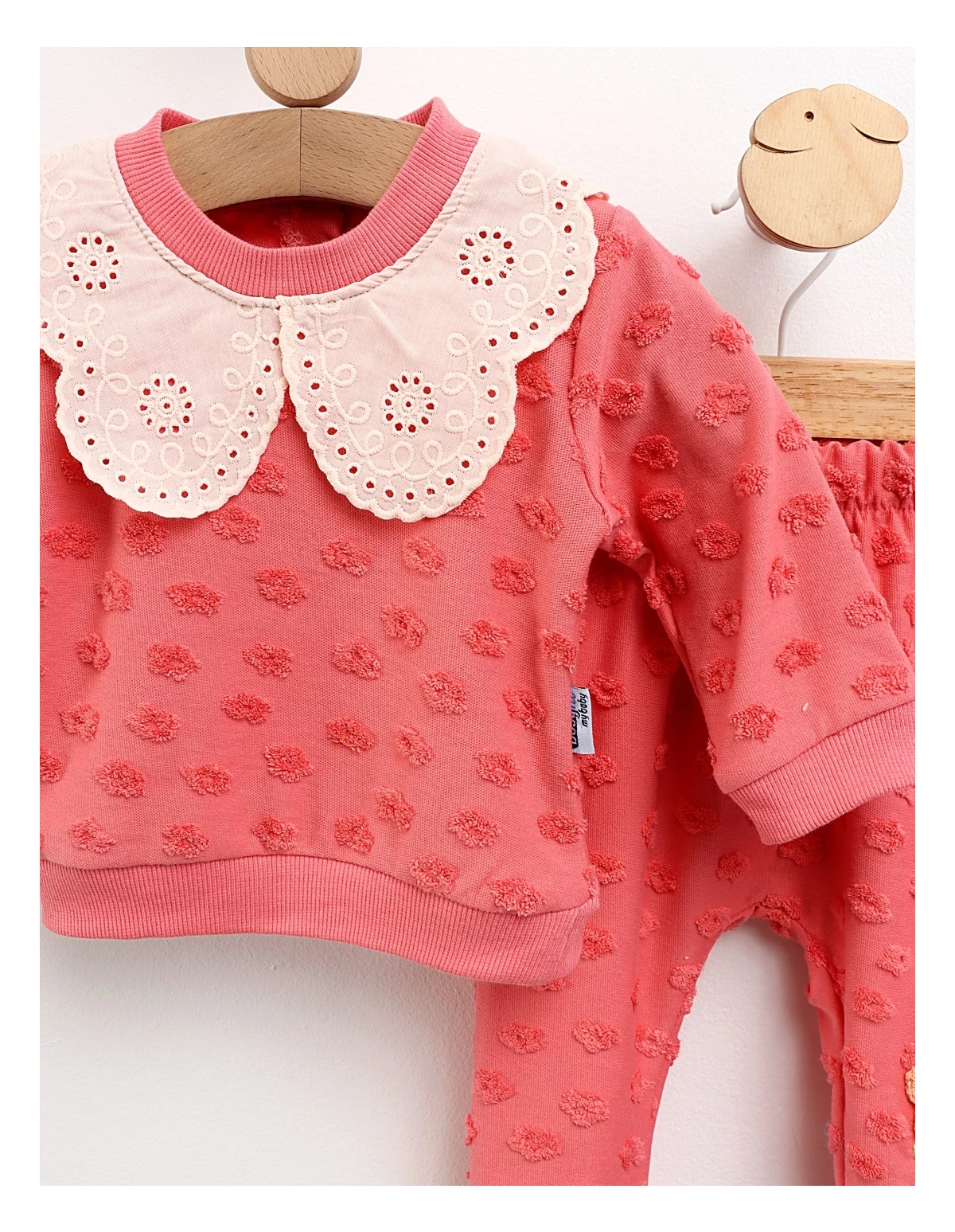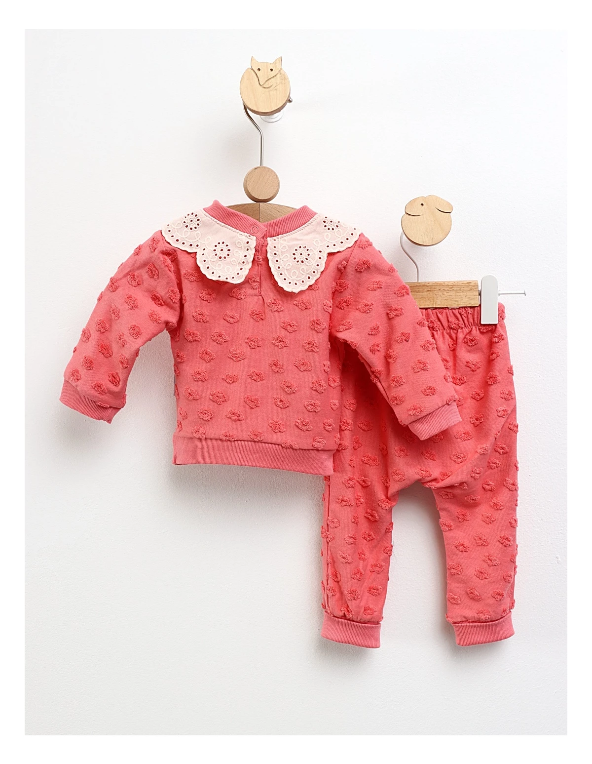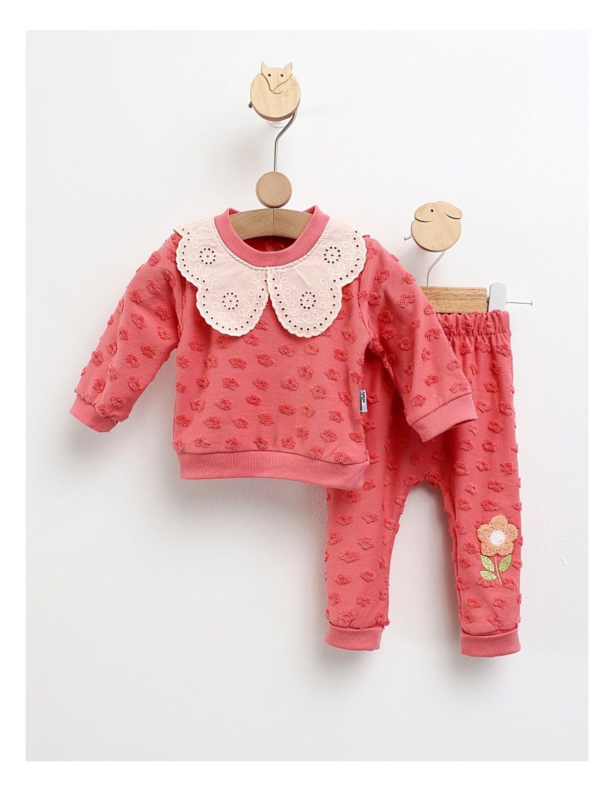 Compleu pentru fetițe, perfect pentru zilele de primăvară și vară, care oferă confort și un look drăgălaș! Acest set adorabil include o bluză cu guler așezat, decorată cu un imprimeu cu floricele, și o deschidere în capse în partea din spate, asigurând o îmbrăcare ușoară. Pantalonașii cu elastic în talie oferă o potrivire lejeră și flexibilă, ideală pentru joacă. Fabricat din 100% bumbac, acest compleu este blând cu pielea delicată a fetițelor și perfect pentru activitățile de zi cu zi.