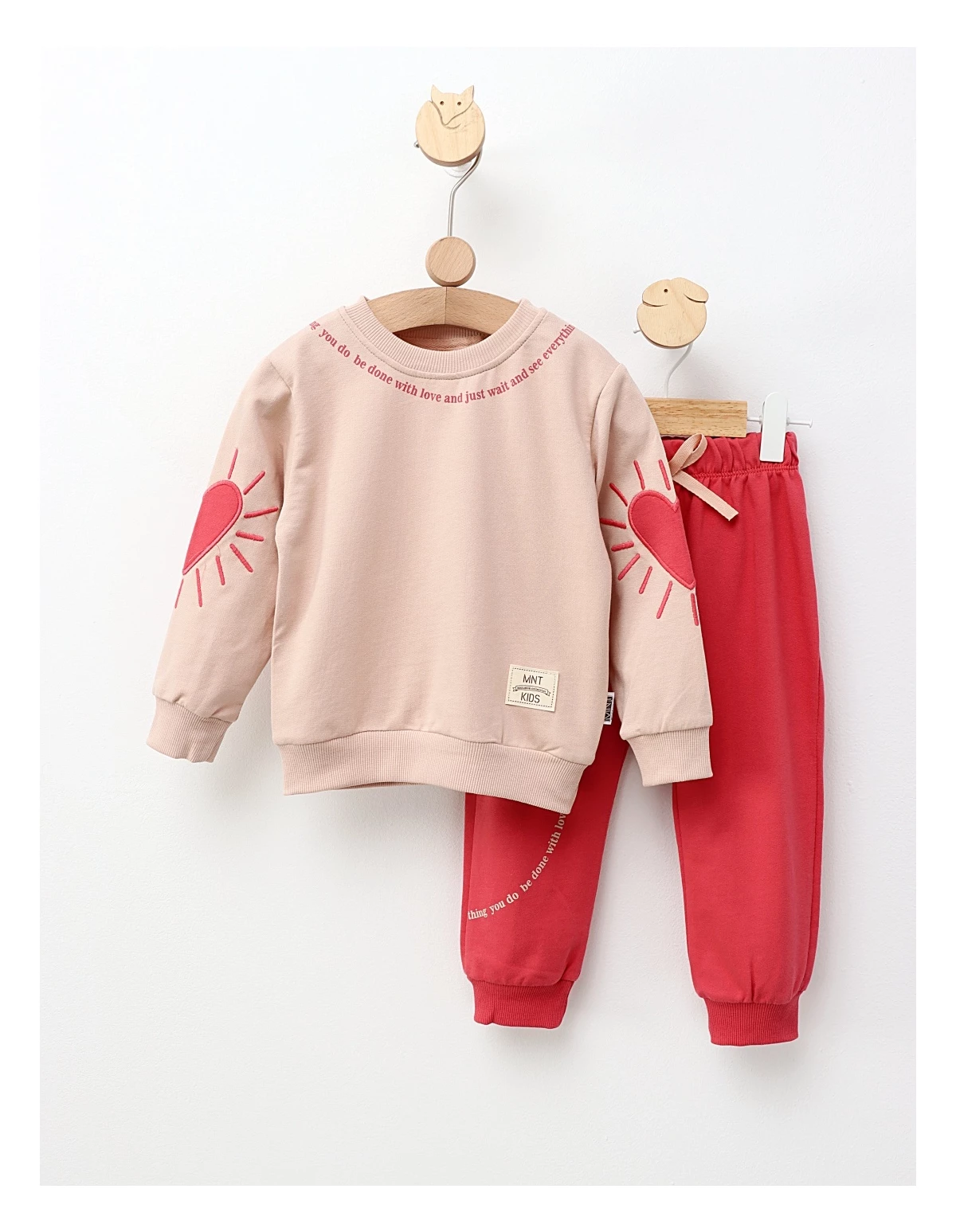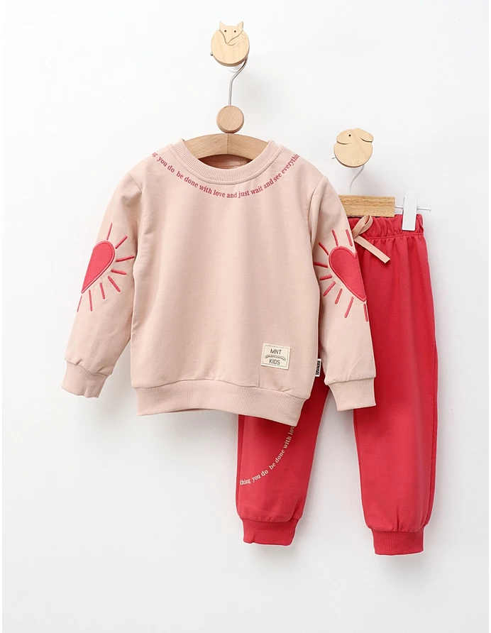 ompleu pentru fetițe, perfect pentru zilele de joacă și relaxare! Acest set adorabil este format dintr-o bluză confortabilă și pantalonași cu elastic în talie, care asigură o potrivire lejeră și ușoară. Fabricat din 100% bumbac, acest compleu oferă respirabilitate și blândețe, fiind ideal pentru pielea delicată a fetiței tale. Alege acest set versatil pentru a adăuga confort și stil garderobei micuței tale!