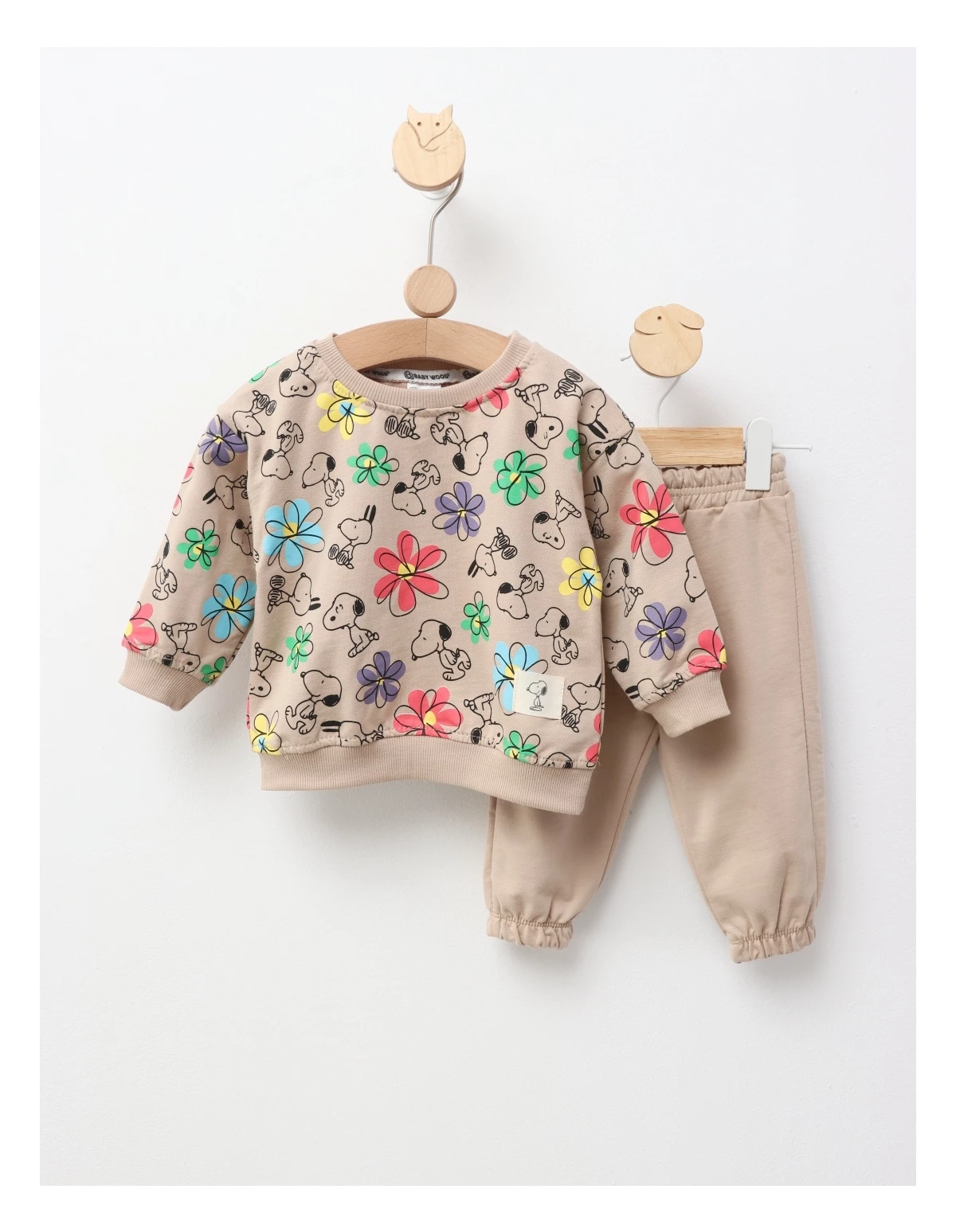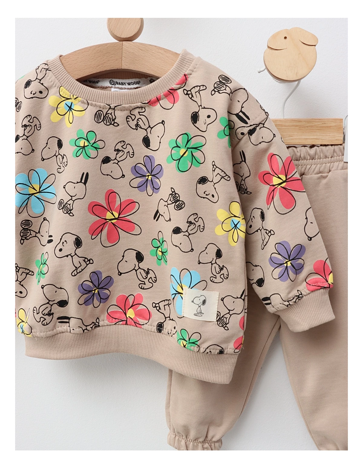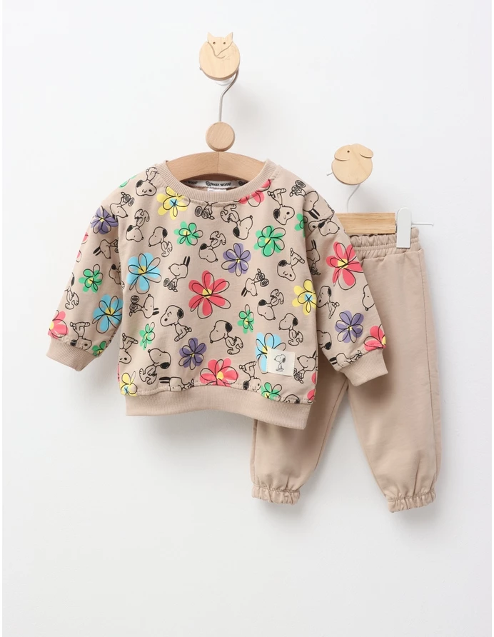Costumul pentru copii este format dintr-o bluză cu imprimeuri jucăușe cu Snoopy și pantaloni cu elastic în talie. Fabricat din 100% bumbac, acest set oferă confort și lejeritate, fiind perfect pentru joacă și activități zilnice.