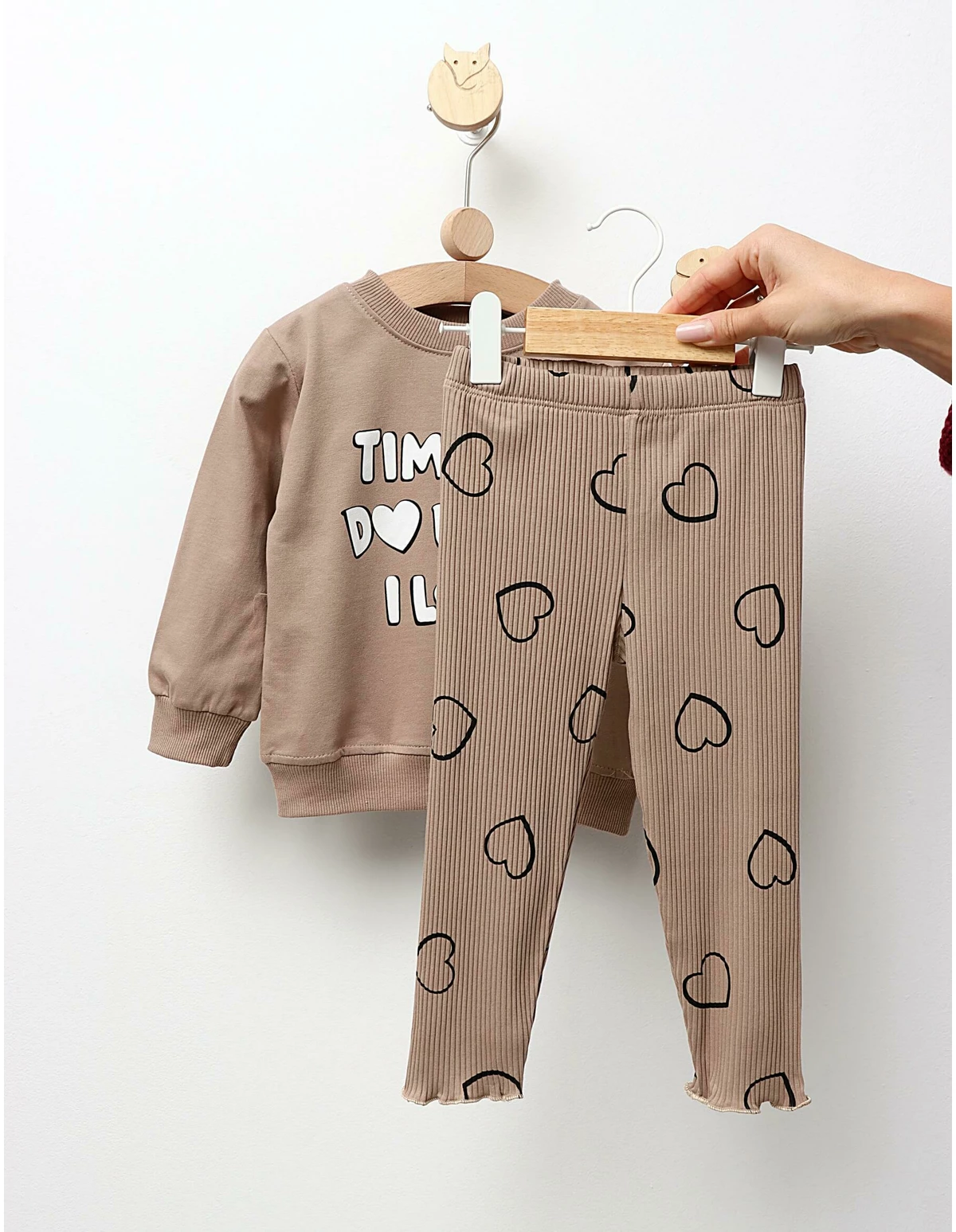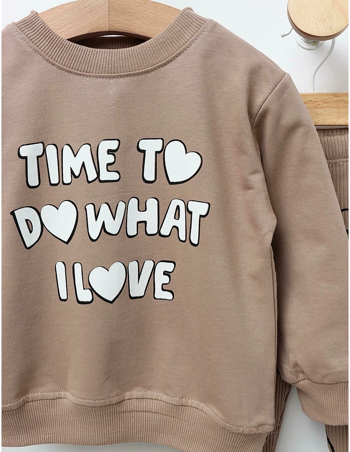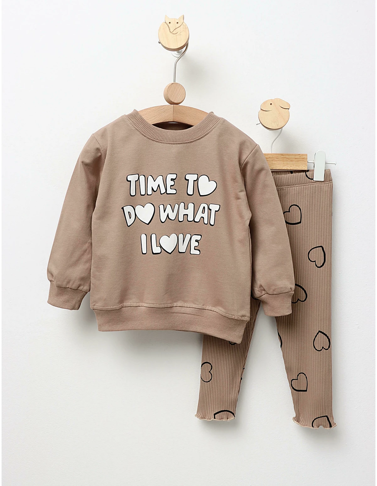 Compleu pentru fetițe, ideal pentru confortul zilnic, ce combină stilul cu un mesaj inspirațional. Acest set include o bluză cu imprimeu 'Time to do what I love' și pantalonași elastici stil colant, care oferă libertate de mișcare. Fabricat dintr-un amestec de 95% bumbac și 5% elastan, acest compleu asigură o purtare plăcută și lejeră, fiind perfect pentru activitățile de zi cu zi. Alege acest set pentru a adăuga un strop de inspirație și confort în garderoba fetiței tale!