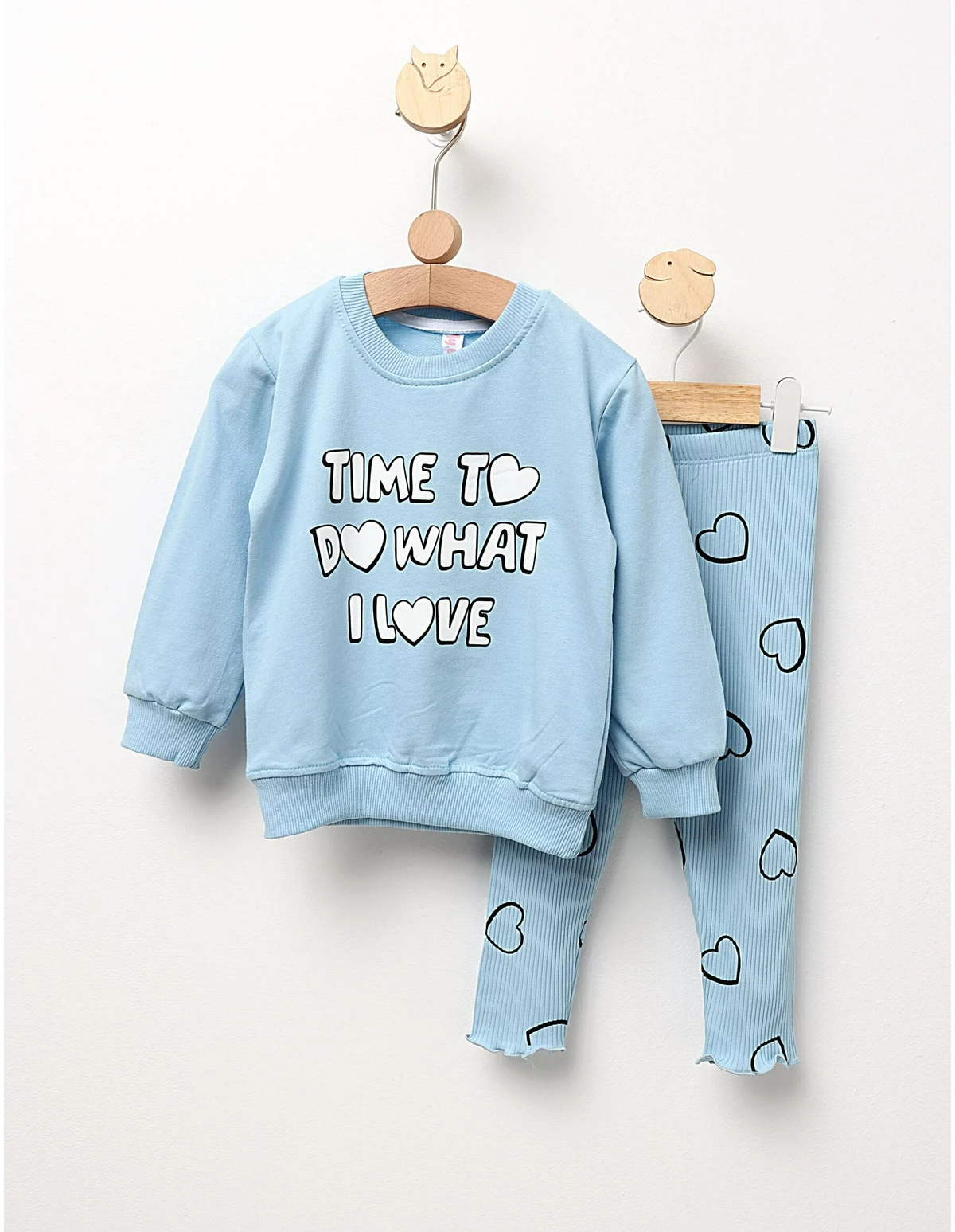 Compleu pentru fetițe, ideal pentru confortul zilnic, ce combină stilul cu un mesaj inspirațional. Acest set include o bluză cu imprimeu "Time to do what I love" și pantalonași elastici stil colant, care oferă libertate de mișcare. Fabricat dintr-un amestec de 95% bumbac și 5% elastan, acest compleu asigură o purtare plăcută și lejeră, fiind perfect pentru activitățile de zi cu zi. Alege acest set pentru a adăuga un strop de inspirație și confort în garderoba fetiței tale!