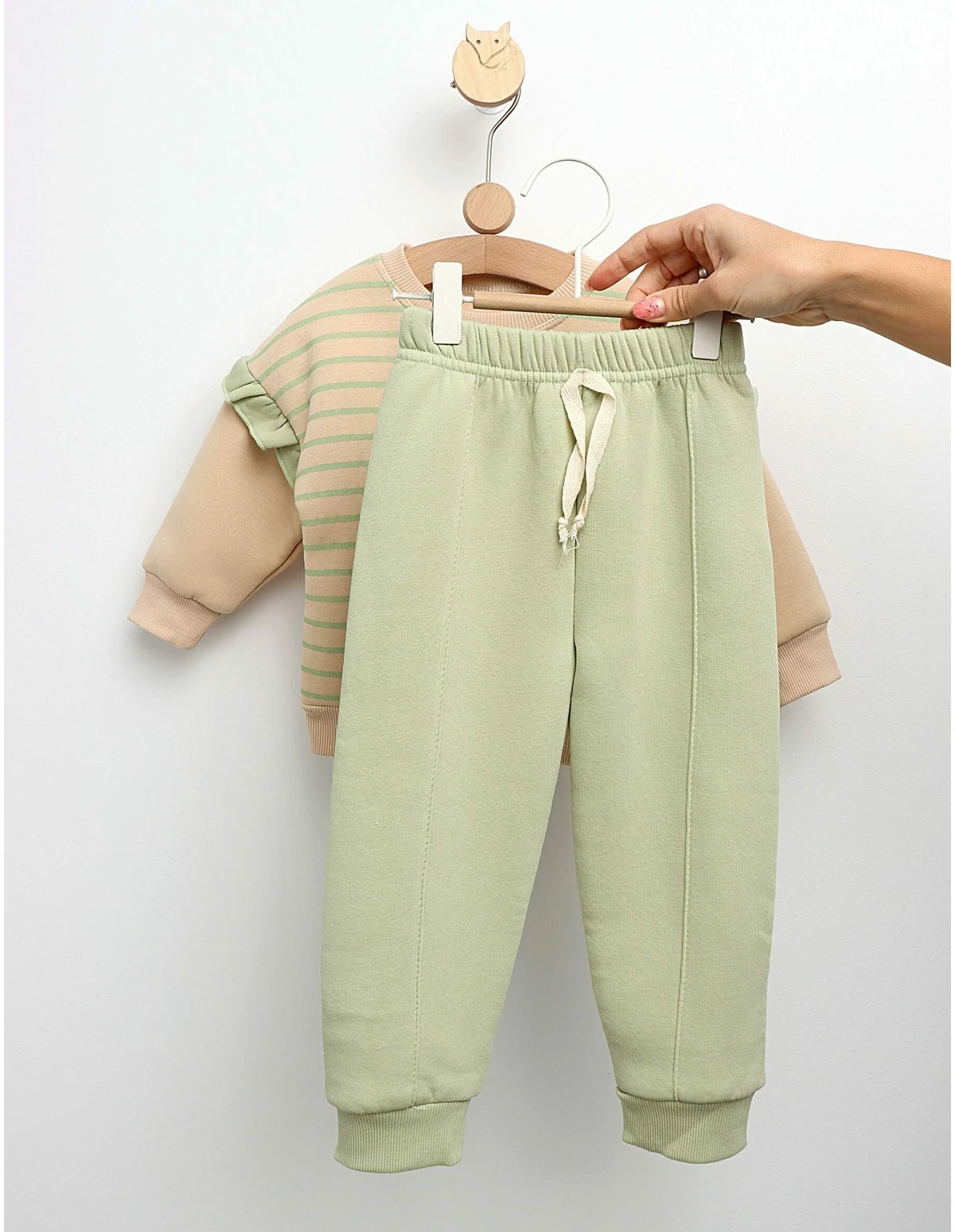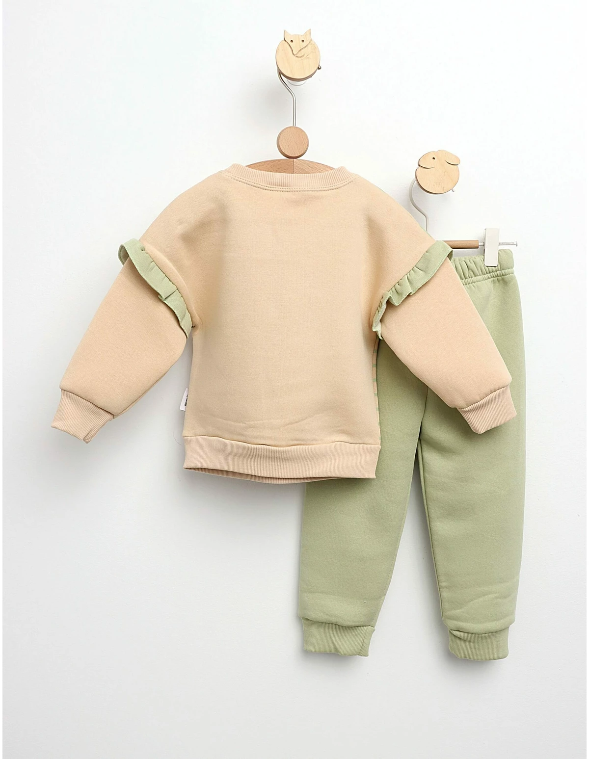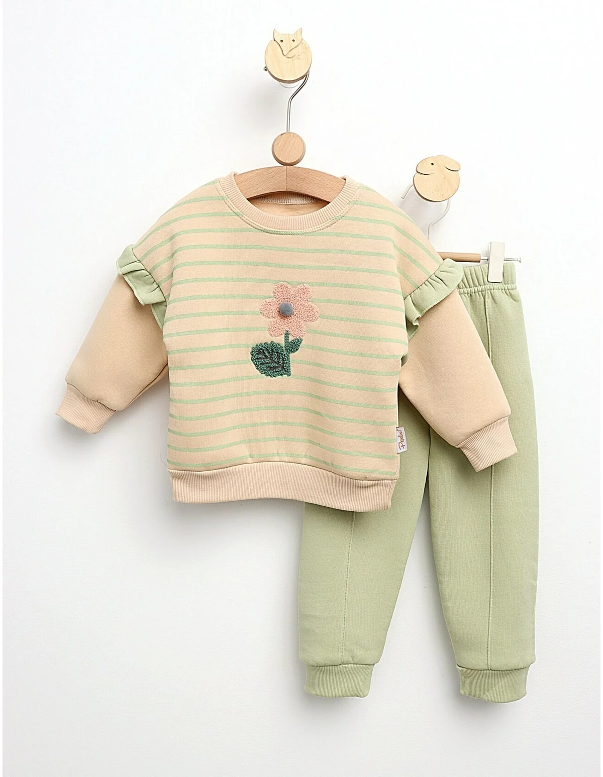 Costumaș pentru fetițe, ideal pentru sezonul rece! Acest set adorabil este format dintr-o bluză căptușită pe interior, cu un imprimeu jucăuș de 'floricică', și pantalonși confortabili cu elastic în talie. Realizat dintr-un material gros și de calitate, compus din 80% bumbac și 20% poliester, acest costumaș asigură căldură și confort excelent pentru micuța ta, fiind perfect pentru joacă sau ocazii speciale.