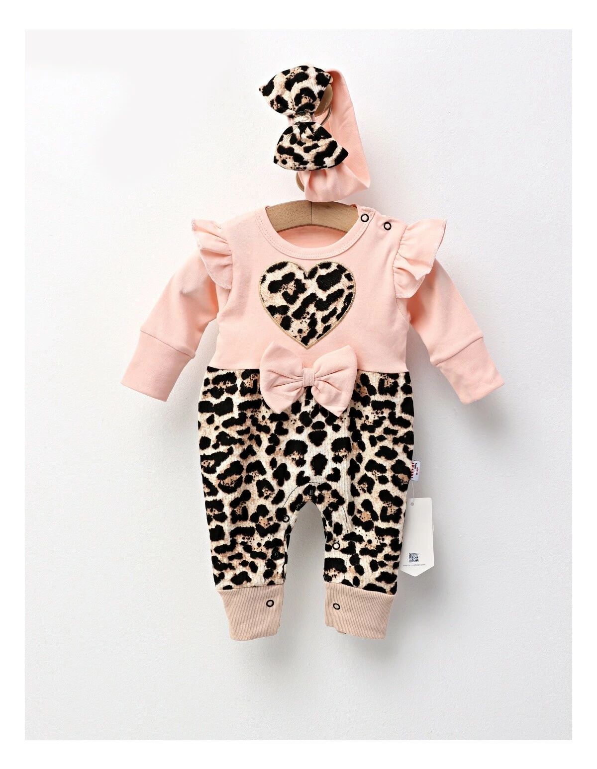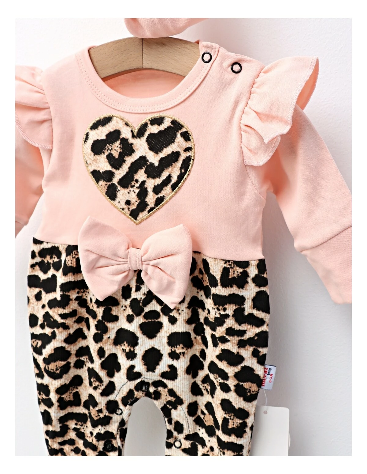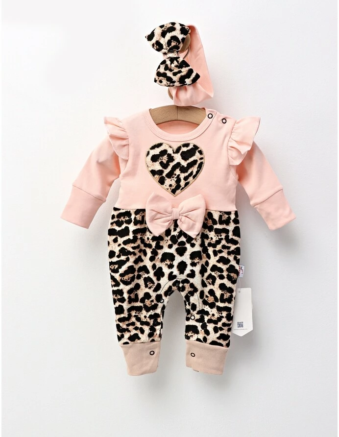 Această salopetă pentru fetițe, creată cu grijă pentru cele mai mici prințese cu vârste între 0 și 12 luni, este o expresie a confortului și stilului inconfundabil. Confecționată integral din bumbac 100%, aceasta promite o atingere moale și delicată pe pielea sensibilă a bebelușului, însoțindu-l în primele sale aventuri. Designul cu mânecă lungă oferă căldură și protecție, în timp ce sistemul ingenios de deschidere cu capse atât pe umăr, cât și între picioare, facilitează schimbările rapide și fără efort. Imprimeul animal print adaugă o notă de îndrăzneală și originalitate ținutei, în timp ce fundița delicată atașată pe partea din față și bentita asortată cu o fundiță mare încununează cu grație acest ansamblu, transformând fiecare moment într-unul special și memorabil. Este o alegere perfectă pentru zilele pline de joacă sau pentru ședințele foto, adăugând o doză de farmec și personalitate micuței tale.